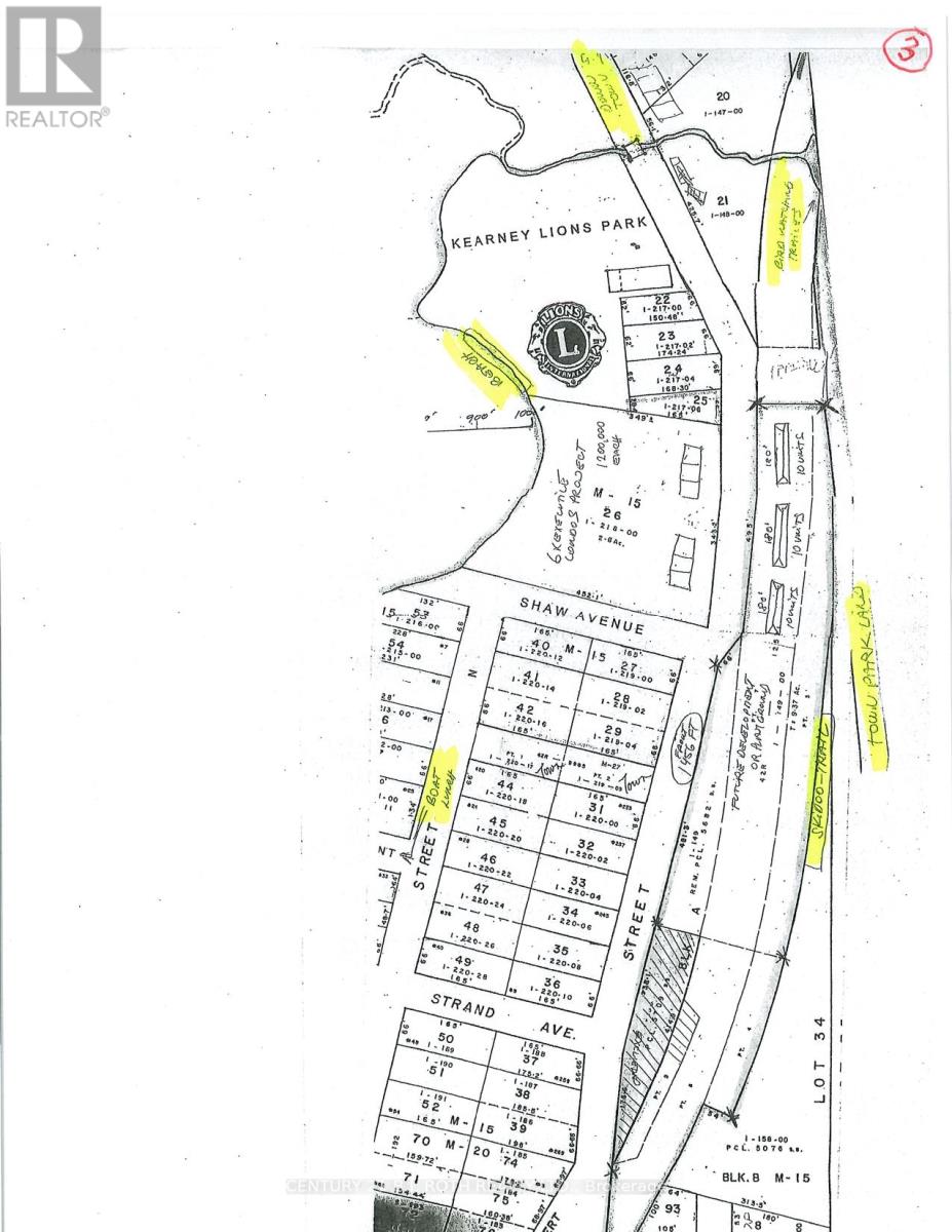 Great Opportunity for Builders, Developers, & Investors! Located just 15 minutes north of Huntsville, here's your chance to acquire development site on Kearney's Main Street, totaling approximately 4.96 acres. Seller has obtained an approved Development Concept! Don't miss this amazing opportunity to build 40 Townhouse Units with the possibility of either Freehold or Condominium. This property is nestled among lush trees provides easy access to Perry Lake (within walking distance). This ideal location is close to some of the best ATV and OFSC trails, local restaurants and pubs, the LCBO, a general store, and more. Within a few moments to bird-watching trails, a public boat launch and beach just minutes away in either direction. Also enjoy access to three points of Algonquin Park. This is a fantastic investment opportunity and one of the last available residential-zoned lots in Kearney's downtown core. Attached you'll find the development concept showing the potential for 40 units, with a prime location directly across from Perry Lake. Vendor will consider V.T.B. with O.A.C. Vendor may consider assisting with building units. In addition, all municipal, application fees, process fees, approvals and development charges are the responsibility of the Buyer. Please note Main Street was previously known as Emily Street, and Regent Street was previously known as Shaw Street. (id:56991)