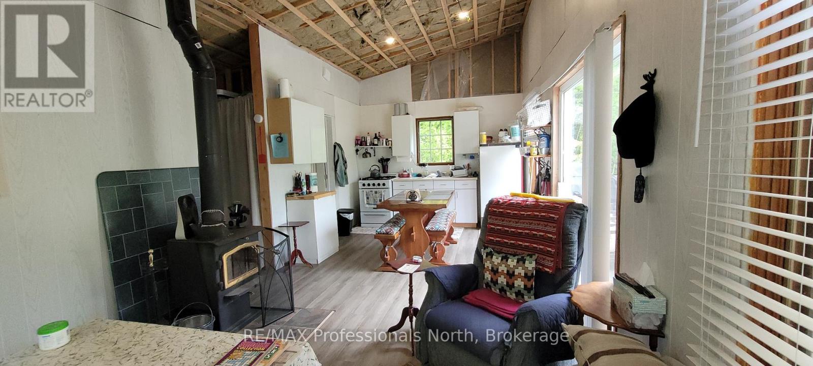 Private, waterfront getaway in unorganized township on Maeck Lake in the heart of the Almaguin Highlands. Enjoy this 16 acre waterfront property on Maeck Lake with easy access from the main road and 2 secluded cabins built in 2019. The main cabin has 2 bedrooms, a living area which includes an eat-in kitchen and living room with woodstove and sliding doors leading to a 10' x 28' deck w/gazebo. Outdoor 120 gal cistern supplies water to the cabin, hot water available, all leading to a grey water drain. The cabin is fully insulated with 2" x 6" construction and R24 insulated floor, double pane vinyl clad windows, low maintenance Lifetime Smartside tongue and groove panels, propane fridge and stove, small solar system with RV batteries, led lighting, including jacks for cell phones and other devices. The 2nd cabin is a modified trailer with screened-in deck and open space to make your own. Ideal for Airbnb rental or build your own home/cottage with a number of potential building sites. Build to Ontario Code with no building permits required, other than septic & hydro. Hydro available at the property line. Private laneway leads to waterfront with turnaround, boat launch, and newer dock. Maeck Lake Association has a 9.9 HP motor restriction, and no public access to the lake. Property is adjacent to acres of crown land.. Great opportunity... much to appreciate here! (id:56991)