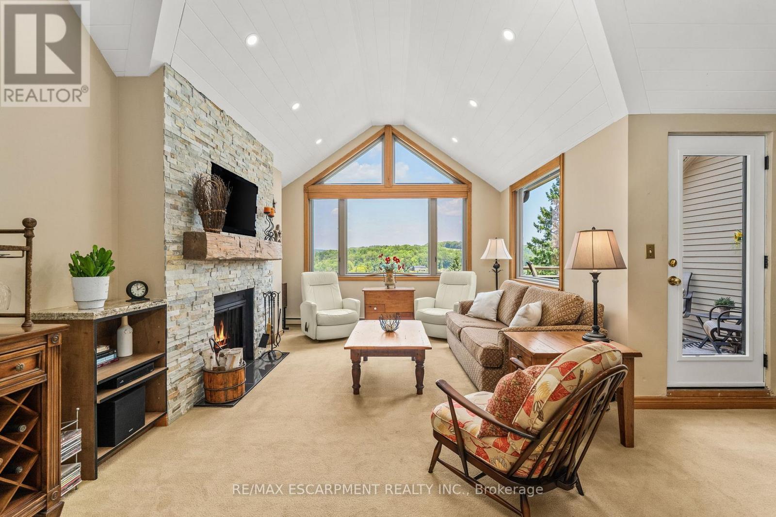 Welcome to 131 Grandview Hilltop Drive, Unit 1 - a rare, fully furnished end-unit bungaloft offering 1,430 sq ft of thoughtfully designed living space. This bright 2-bed, 2-bath condo with loft blends comfort, versatility, and investment potential. Wrapped in panoramic windows, the home is filled with natural light and offers maintenance-free living in a highly desirable setting. One of the few units in the area approved for Airbnb and Vrbo, this property presents exceptional rental opportunities. With two separate entrances, it can function as two independent suites. Live in the main unit while renting the self-contained one-bedroom, one-bath suite for added income, or enjoy the entire space for family and guests. The open-concept main living area features a cozy wood-burning fireplace and flows seamlessly into the dining area and well-appointed kitchen. Upstairs, a rarely offered loft provides generous space for guests or family, complete with a 3-piece bath. Step outside to your large private patio and take in serene, picture-perfect views while enjoying morning coffee or sunset dinners. Ideally located near Grandview Golf Club, Deerhurst Highlands Golf Course & Resort, Hidden Valley Ski Resort, Limberlost Forest and Wildlife Reserve, Arrowhead Provincial Park, and the shops and restaurants of downtown Huntsville. With exterior maintenance fully managed, this property offers true lock-and-leave convenience. Whether you're seeking a peaceful year-round retreat, a smart investment, or both, this exceptional condo truly checks every box. (id:56991)