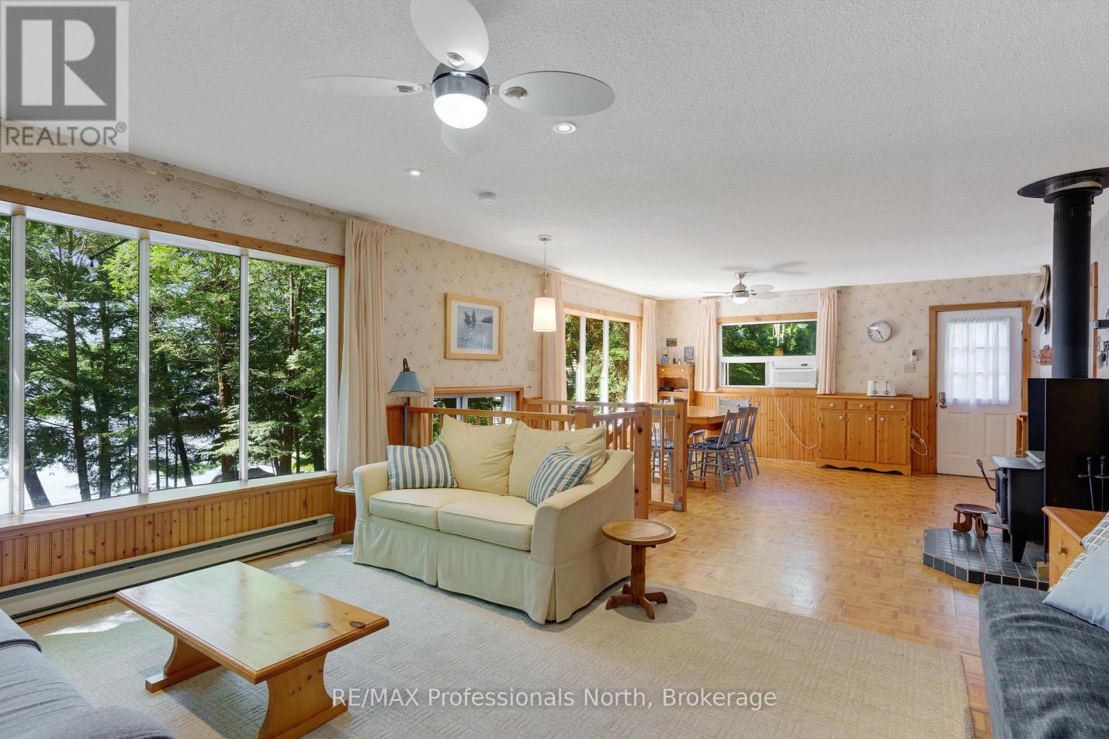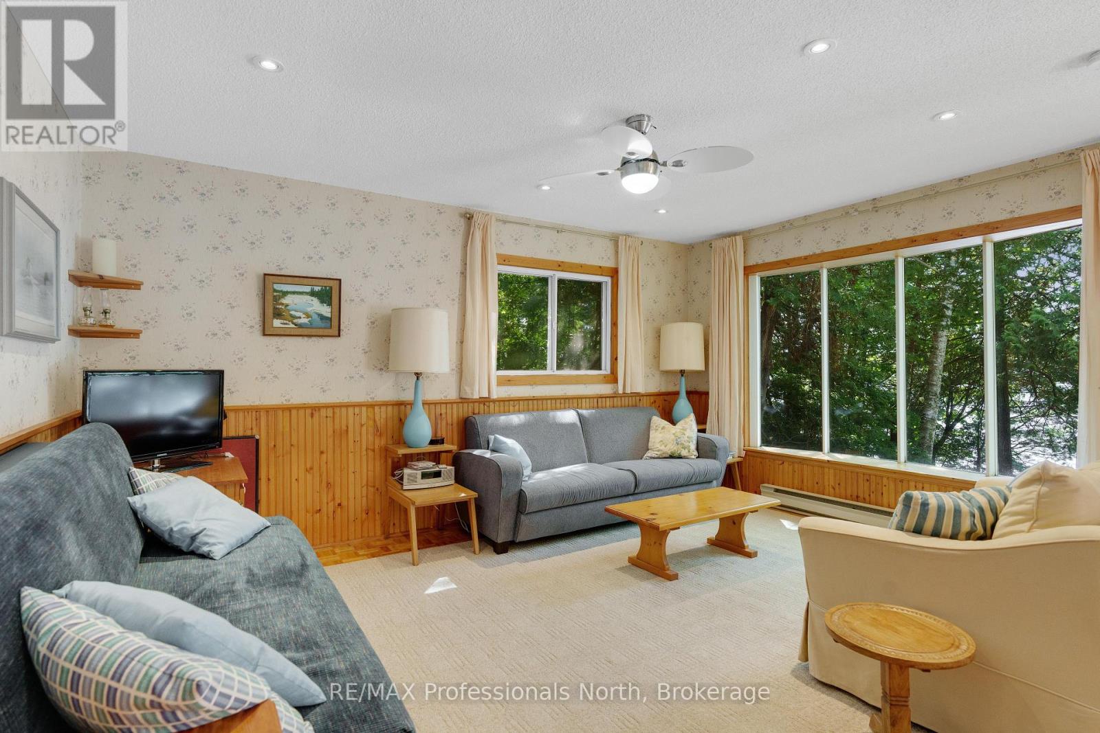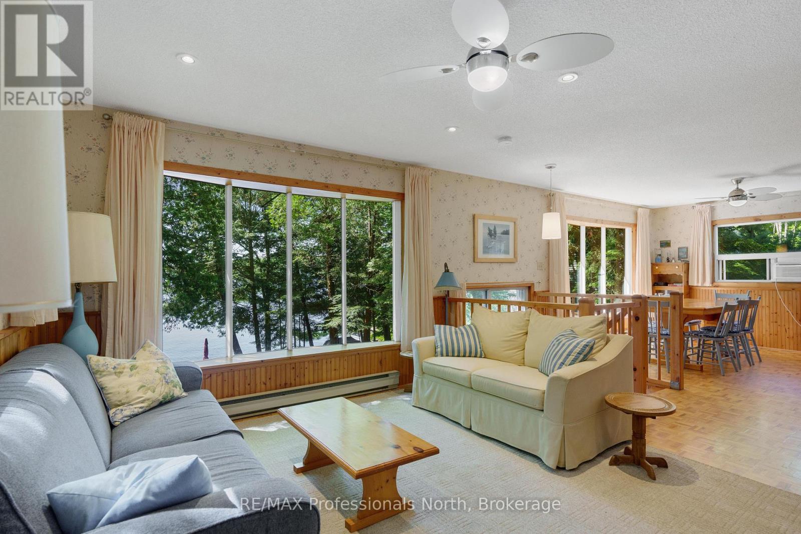 Nestled on the shores of Muskoka's Lake of Bays, this beloved four-season cottage has been cherished by the same family for decades a true legacy of laughter, connection, and quiet moments by the water. Surrounded by mature trees and set on a gently sloping, level lot, it offers stunning, uninterrupted views across the lake to the iconic Bigwin Island. Designed for year-round comfort, the cottage welcomes you with an open-concept kitchen, dining, and living area filled with natural light and rustic charm. Four cozy bedrooms and two full bathrooms provide plenty of space for family and guests, while a full basement offers added room for recreation and storage. Outside, the experience is just as inviting. A hard-packed sand shoreline makes for easy swimming and water play, while the sunny southern exposure lets you soak in the warmth from morning to evening whether you're on the dock, deck, or gathered around a lakeside fire. Located minutes from charming villages, marinas, and restaurants accessible by boat or road this property is the perfect mix of peaceful escape and everyday convenience. Each season brings something special: summer swims, autumn colors, winter snowfalls, and springtime renewal. This is more than just a cottage; its a place where generations have made lifelong memories. A rare opportunity to continue a legacy on one of Muskoka's most sought-after lakes, ready to welcome a new chapter in its story. (id:56991)