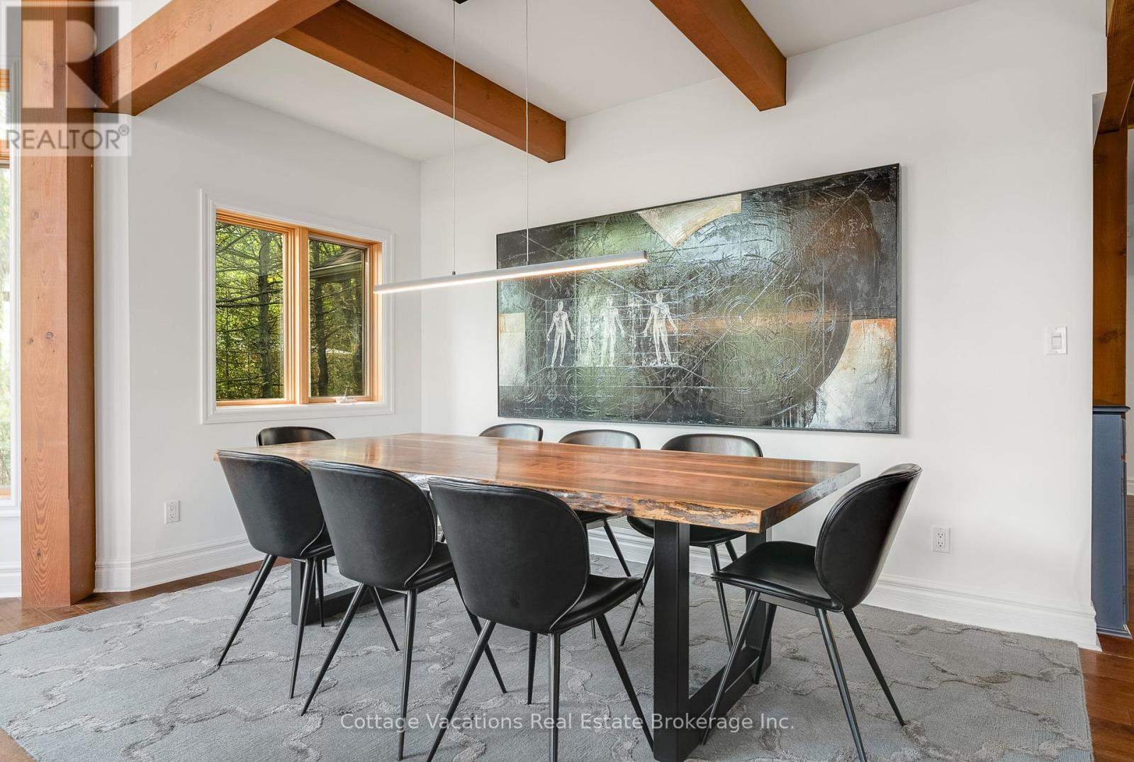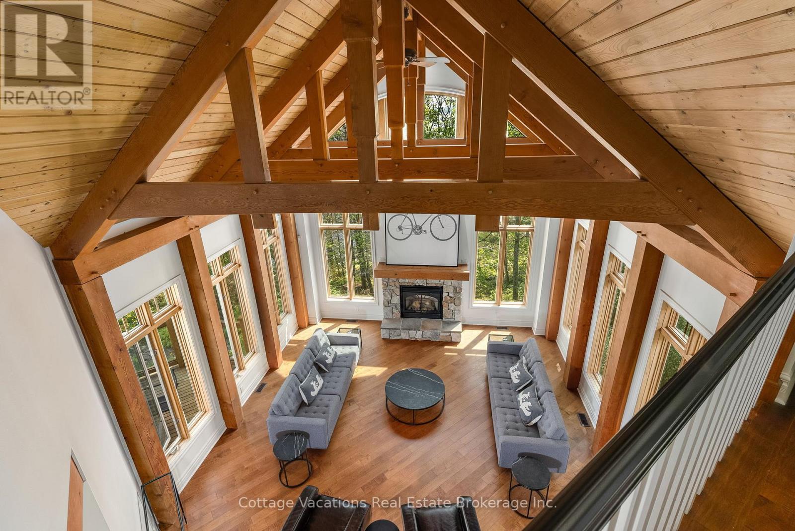 Welcome to Muskoka Blue, the perfect modern getaway to relax and recharge. Located less than 2 hours from the GTA, this stunning cottage feels worlds away. Experience and enjoy the awe-inspiring connections to nature you can only find on the beautiful south shore of the prestigious Lake Muskoka. With over 2,700 sqft. of living space this 5 bedroom, 3 bathroom retreat is the ultimate vacation getaway boasting 21 ft. vaulted ceilings, a cozy stone fireplace, a screened-in Muskoka room and expansive decks capturing the breathtaking long views of Lake Muskoka. The gorgeous chefs kitchen features a large centre island ideal for entertaining, stainless steel appliances, and Quartz countertops. The private cantilevered dock offers easy access for boating, swimming and exploring the Big Three lakes - Muskoka, Rosseau and Joseph. The large outdoor entertainment space is deal for bringing family and friends together with a large granite fire pit area, outdoor dining, and privacy from neighbours. The property comes fully equipped with everything you need to relax and enjoy. Weekly cleaning is included with the stay. $38,000/month for July, August; $14,000/month for March, April, May; $23,000/month for June. Reach out to learn more. (id:56991)