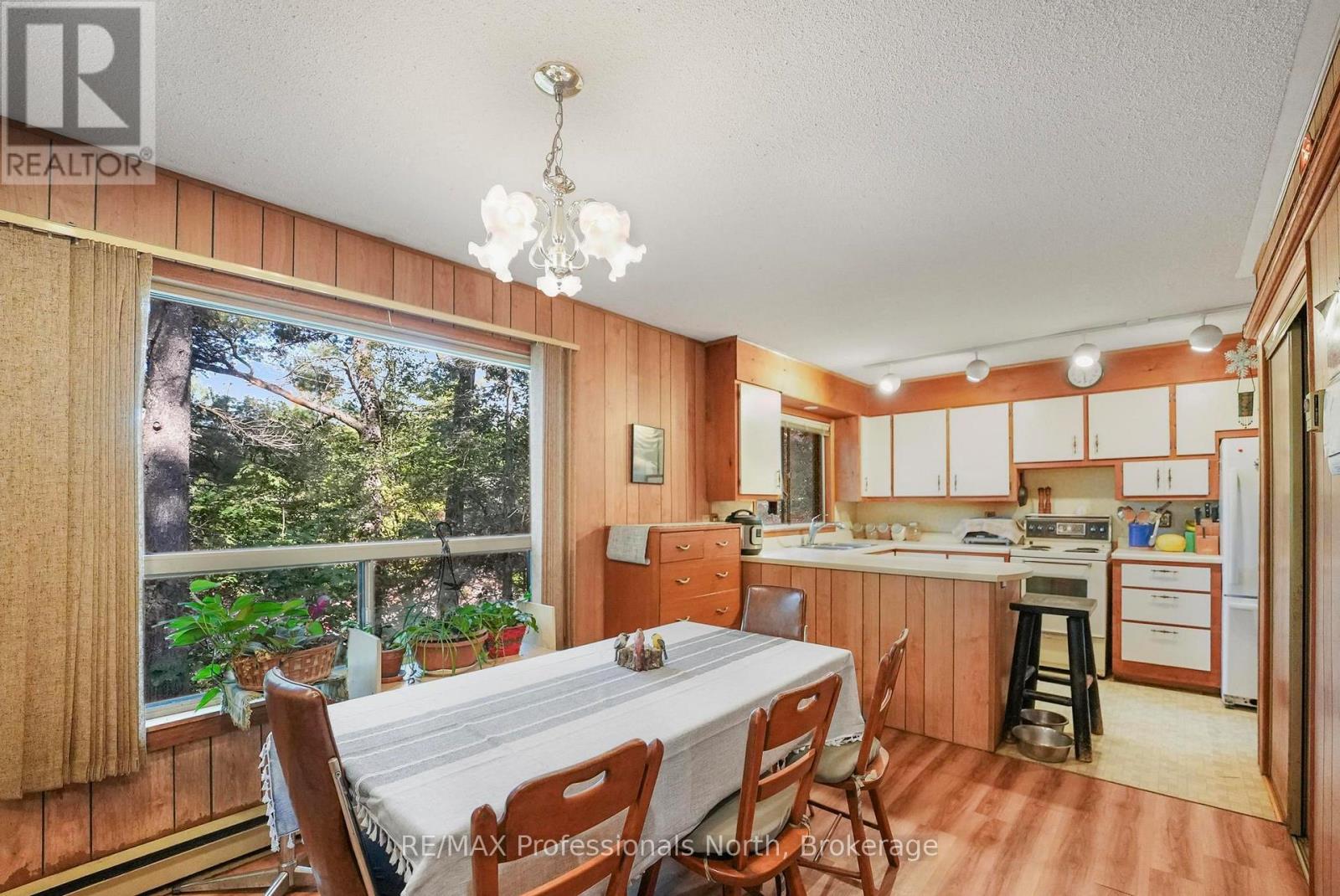 Looking for a year-round home or cottage on waterfront that is affordable? Check out this 3 bdrm., 2 bath home on highly desirable Kushog Lake. The yard has a perimeter fence plus a secondary fenced area just off the side of the house. Have dogs? It is ready to go! The home could use some updating but is a solid build. The basement has a workshop area, a 2pce washroom, and laundry facilities. Nestled in the trees, the yard is wide with lots of room to play. Follow the stairs to the waterfront and you are immediately taken with the amazing granite rock wall. The location on the lake is in a narrow finger that ends at a dam so there is minimal boat traffic. If you are a paddle boarder, canoer, kayaker, or swimmer, this is a fabulous location! Into boating? Head out into the open waters for endless watersport fun. Kushog Lake is an Algonquin-style lake with lots of bays to explore and beautiful rock outcroppings. Small craft can also get into Lake St. Nora during the regular water-level season. (id:56991)