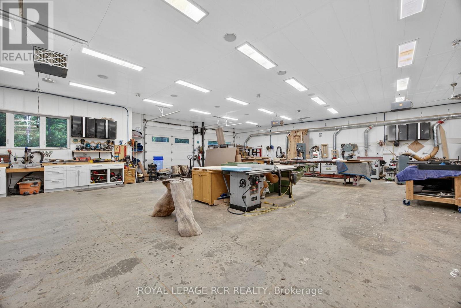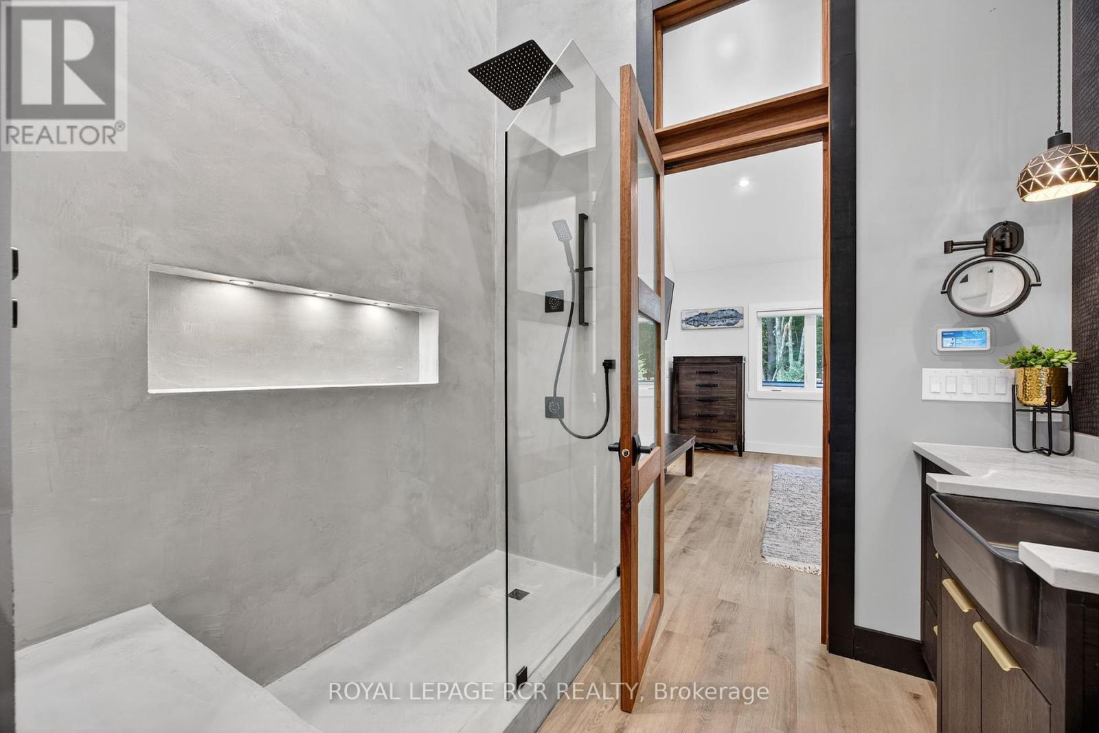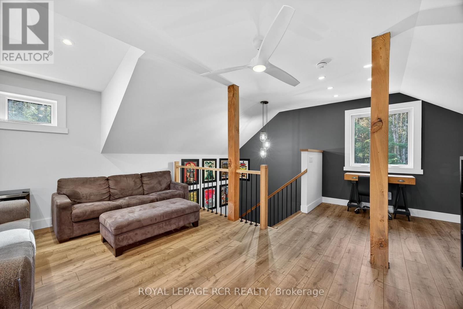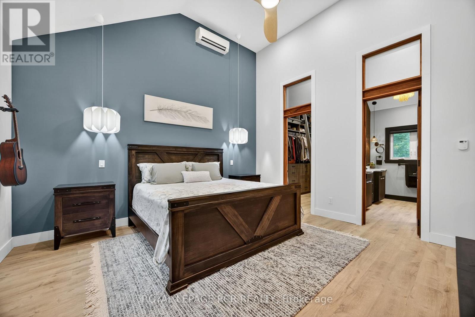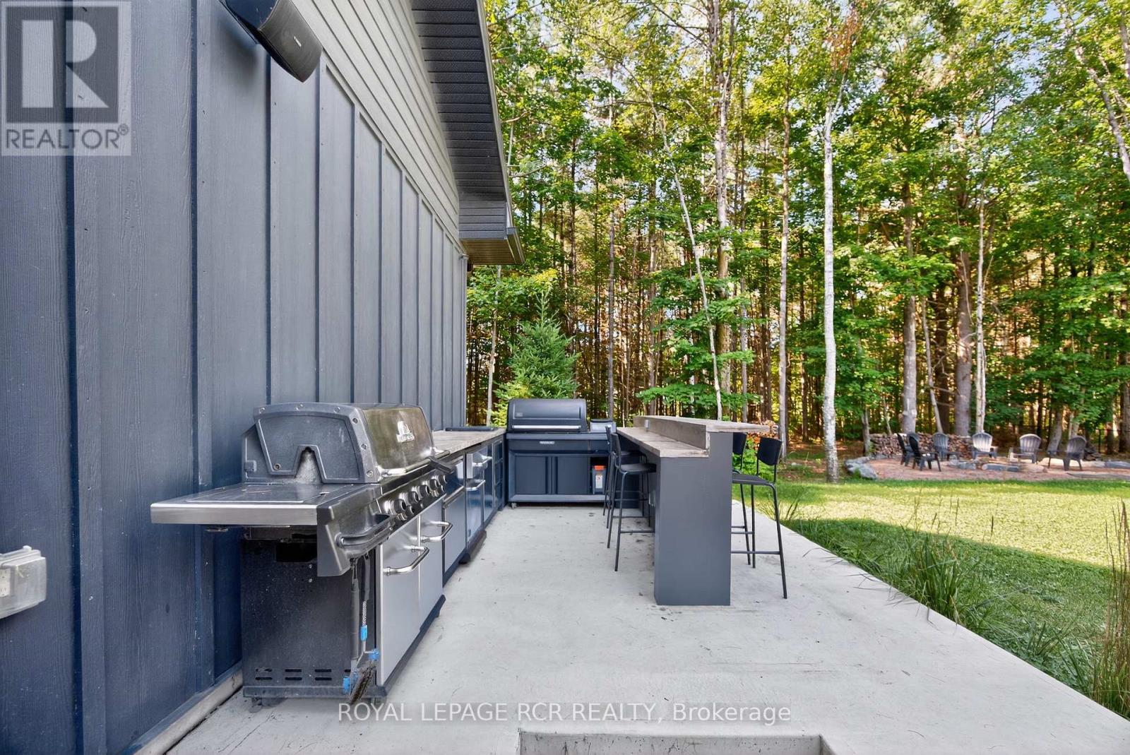 Welcome to this stunning 2022 custom-built post & beam home nestled on over an acre of privacy at the end of a quiet cul-de-sac surrounded by green space. Every inch of this home is fully customized-nothing builder grade- with design and craftsmanship that set it apart. Step inside the spectacular 24' vaulted great room where soaring beams, a floor-to-ceiling double-sided stone fireplace, and radiant heated floors set the tone for comfort and style. The chef's kitchen is a true showpiece with solid walnut accents, a Fulgor Milano 48" propane range with double ovens, built-in coffee maker, wine fridge, and oversized fridge/freezer-perfect for entertaining. The primary bedroom offers 14' ceilings, a walk-in closet with library ladder, custom storage, a spa-inspired ensuite with rain shower and body jets, and a private fireplace. With 3 bedrooms, plus a loft and the option for a separate in-law suite, this home is ideal for families or hosting guests. Smart Home technology elevates daily living with voice-activated control of lighting, blinds, fireplace, security, HVAC, and media throughout. Outside, enjoy a fenced backyard with gardens, a firepit, a Hydropool hot tub, and a full outdoor kitchen and bar-your private Muskoka resort. The property also boasts and incredible 50' x 50' detached workshop/garage, fully insulated with radiant in-floor heating, HVAC, water, washroom, compressed air lines, and oversized doors-perfect for hobbies, storage, or business needs. From spray foam insulation and 50-year shingles to custom walnut doors and chandeliers, this home blends efficiency, luxury, and craftsmanship at every turn. 10 minute drive to Gravenhurst, 18 minute drive to Bracebridge, 23 minute drive to Orillia. You will never see a house like this one with every inch of this home upgraded. Your Muskoka dream home awaits. (id:56991)