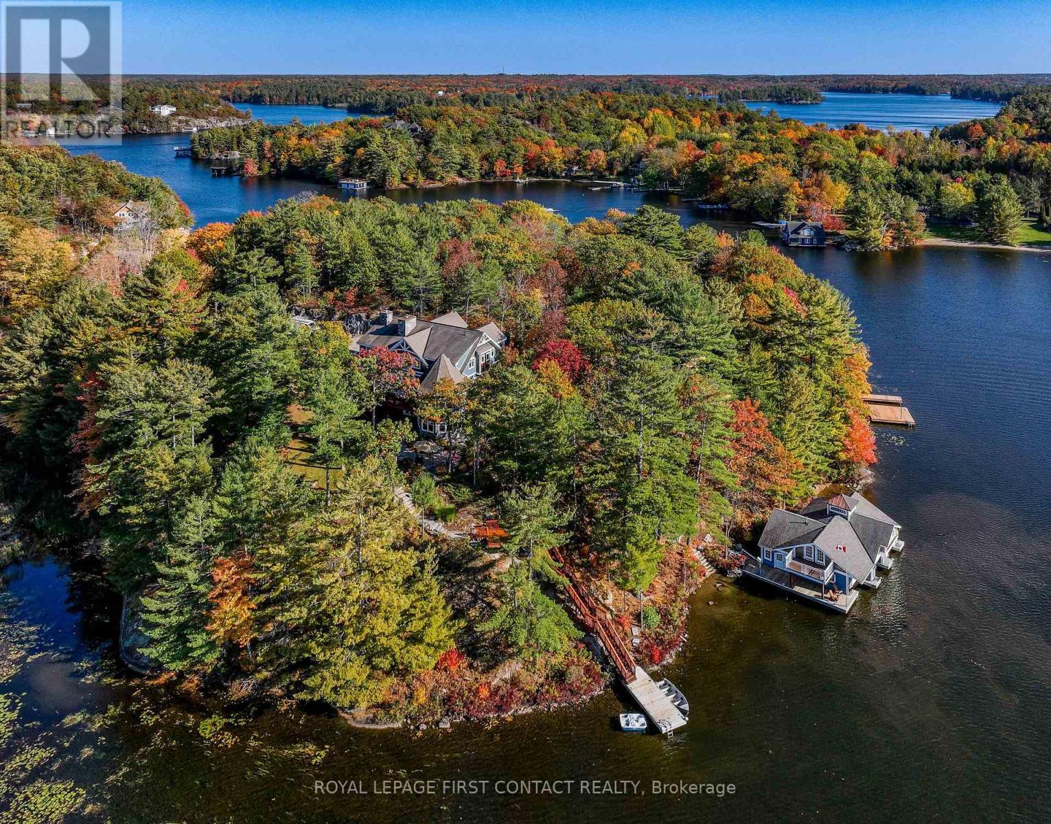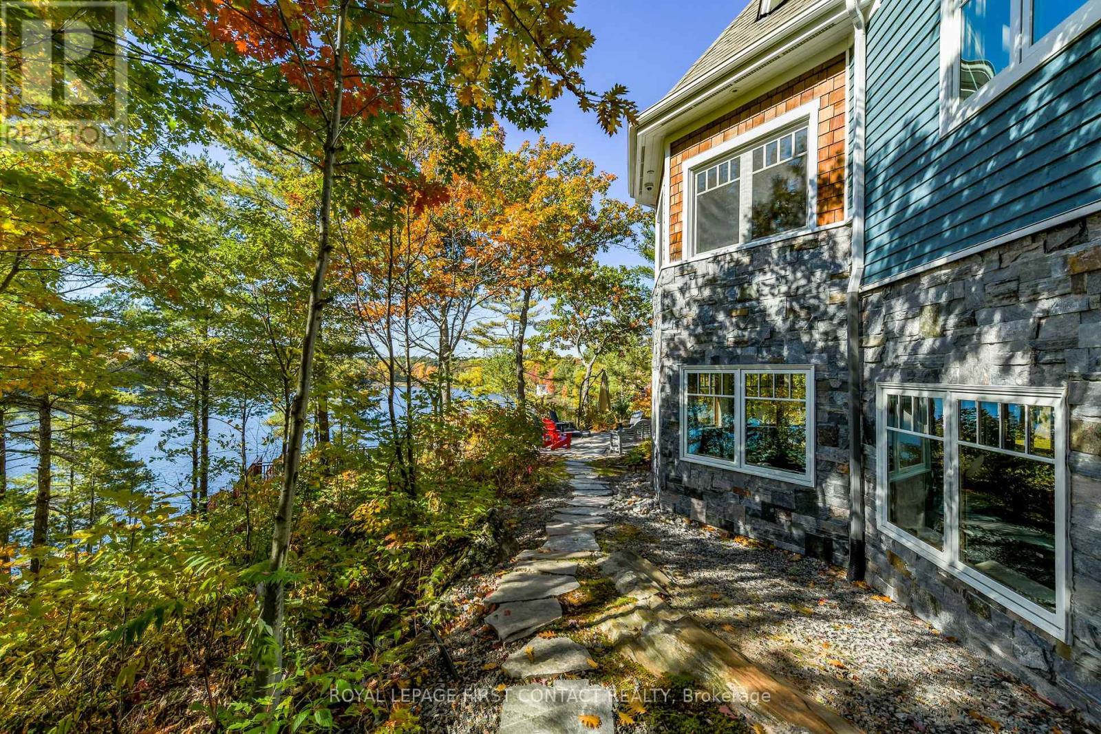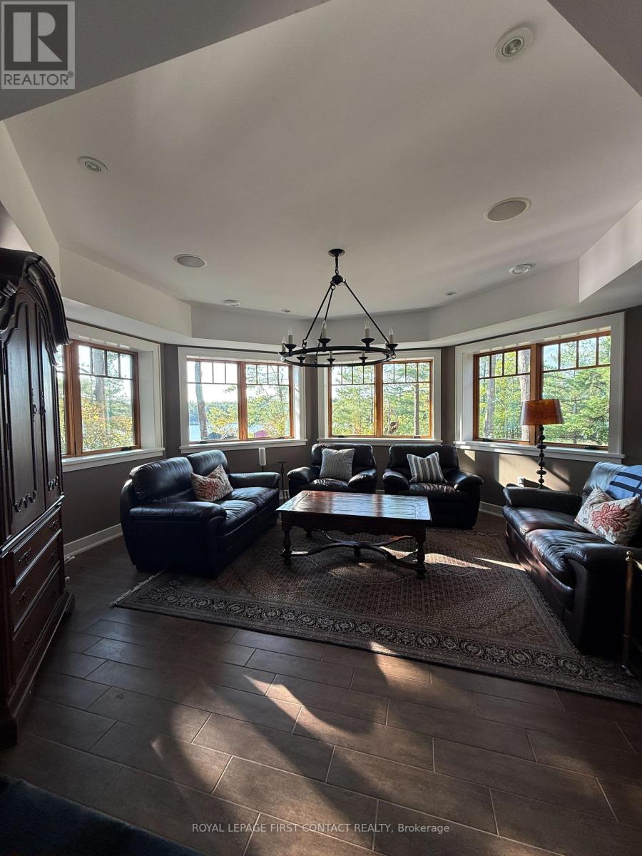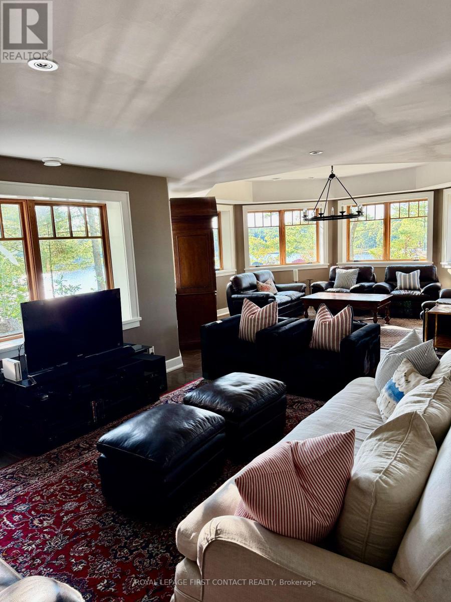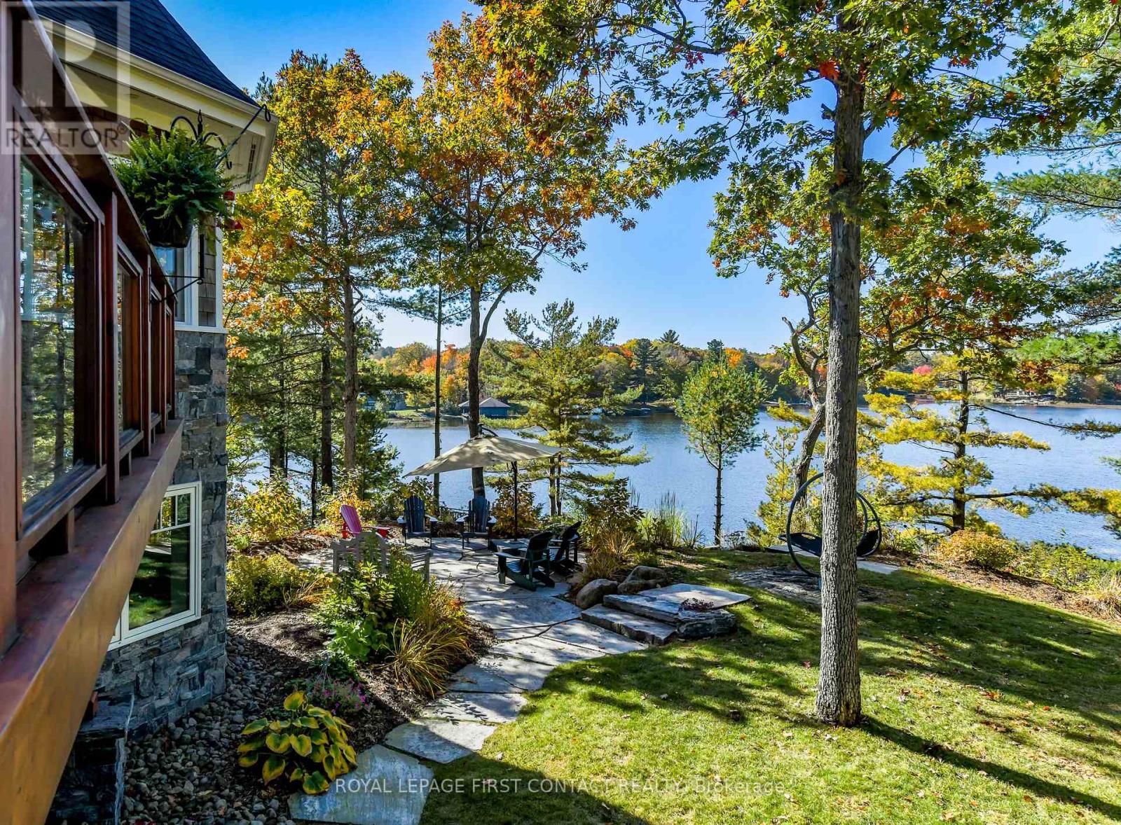 Perched at the end of a private year round paved road and nestled in a sheltered serene bay on Lake Muskoka. Sweeping southwestern panoramic views from a 347 ft point of land bordered by a rock wall for extra privacy. A Cutting Bros. finely crafted traditional Muskoka lakehouse built with exquisite attention to detail and meticulously maintained. Ready for year round living with 2 furnaces, 2 air conditioning condensors, a drilled well and backup wired automatic full generator. Beautifully landscaped with muskoka granite built patios, walkways, and steps that lead down to an impressive 3 slip boathouse that is equipped with hydraulic lifts. Bring the whole family or invite the guests, with over 6200 sq ft of living space including the fully finished bright sunlit walk out basement, there is room for everyone. 6 bedrooms, 4 bathrooms, and plans and permits are in place to create additional living quarters above the boathouse, creating endless possibilities. Soaring two-story beamed ceilings frame the great room, anchored by a dramatic stone fireplace with heatilators and a wall of windows that invite the lake inside The chefs kitchen is a showpiece in both form and function, featuring granite stone counters, a walk-in pantry, dual ovens, two sinks and a bar/beverage station for easy entertaining. Dining room effortlessly turns into the perfect screened in muskoka room with 5 massive windows that drop down and disappear into the walls, opening the space to enjoy breezy sunset views. The main floor primary bedroom, with another beautiful stone fireplace, a 5 pc ensuite with soaker tub, walk-in closet, plus a walk out to water view deck creates the perfect retreat. Lower level is designed for fun and relaxation, featuring a spacious games room, and rec room that are perfect for entertaining family and friends. From here walk out directly to beautiful granite patios where a hot tub awaits-an ideal spot to unwind and enjoy the views over the water and have a fire (id:56991)