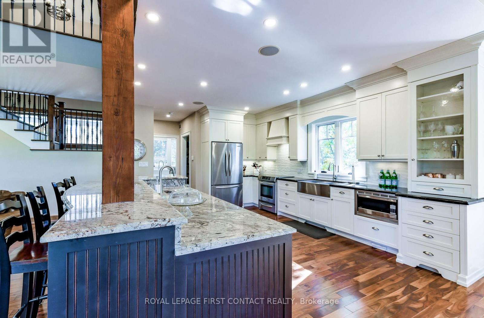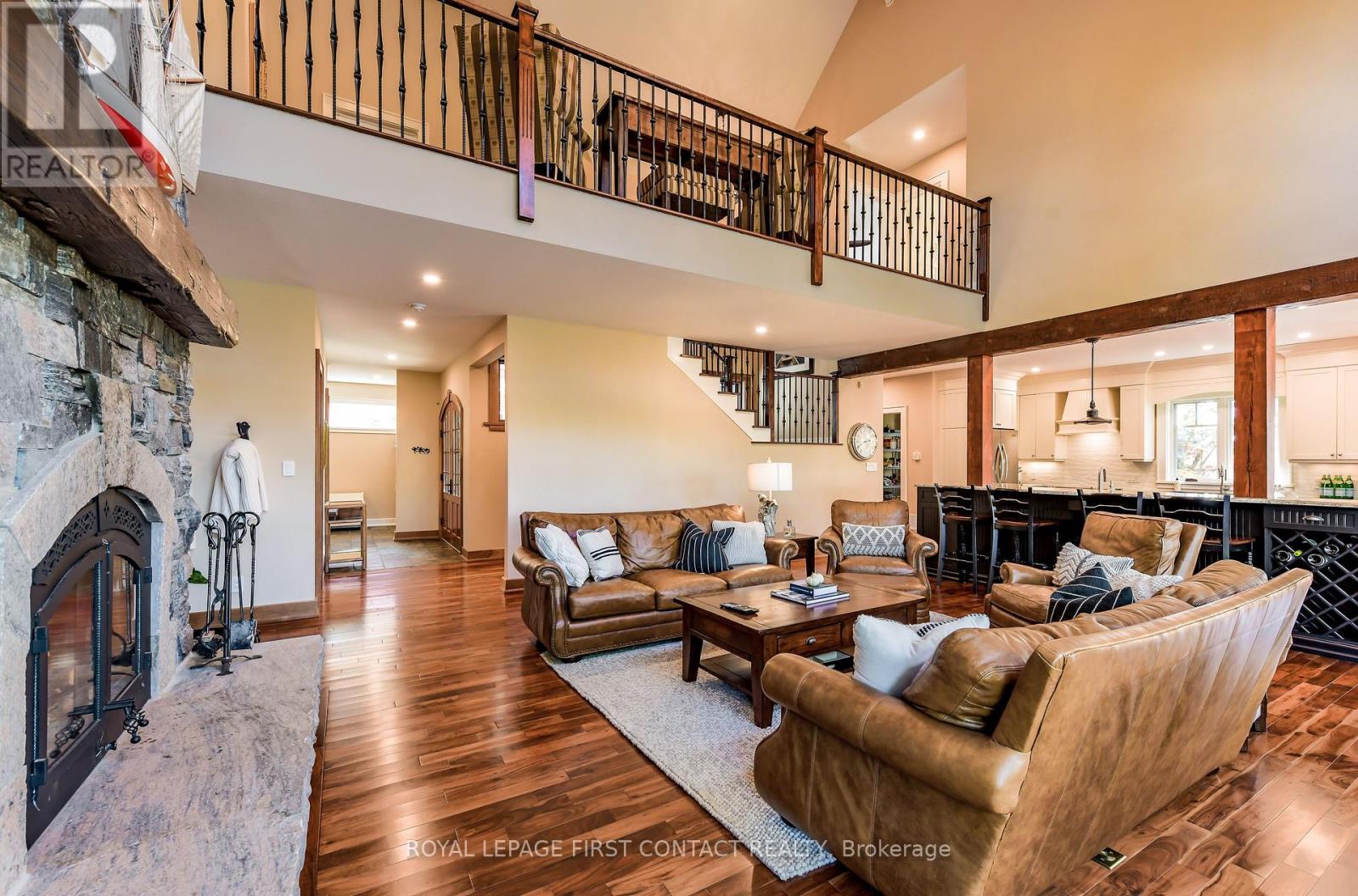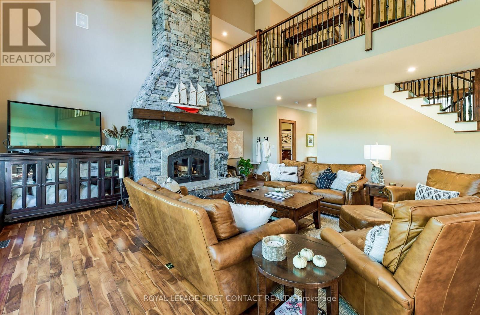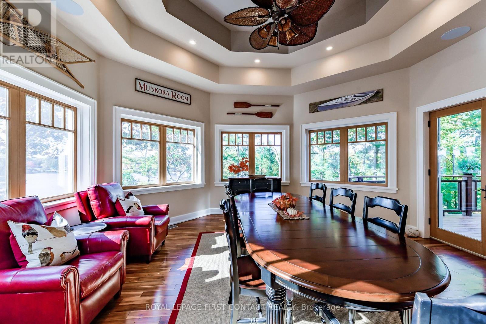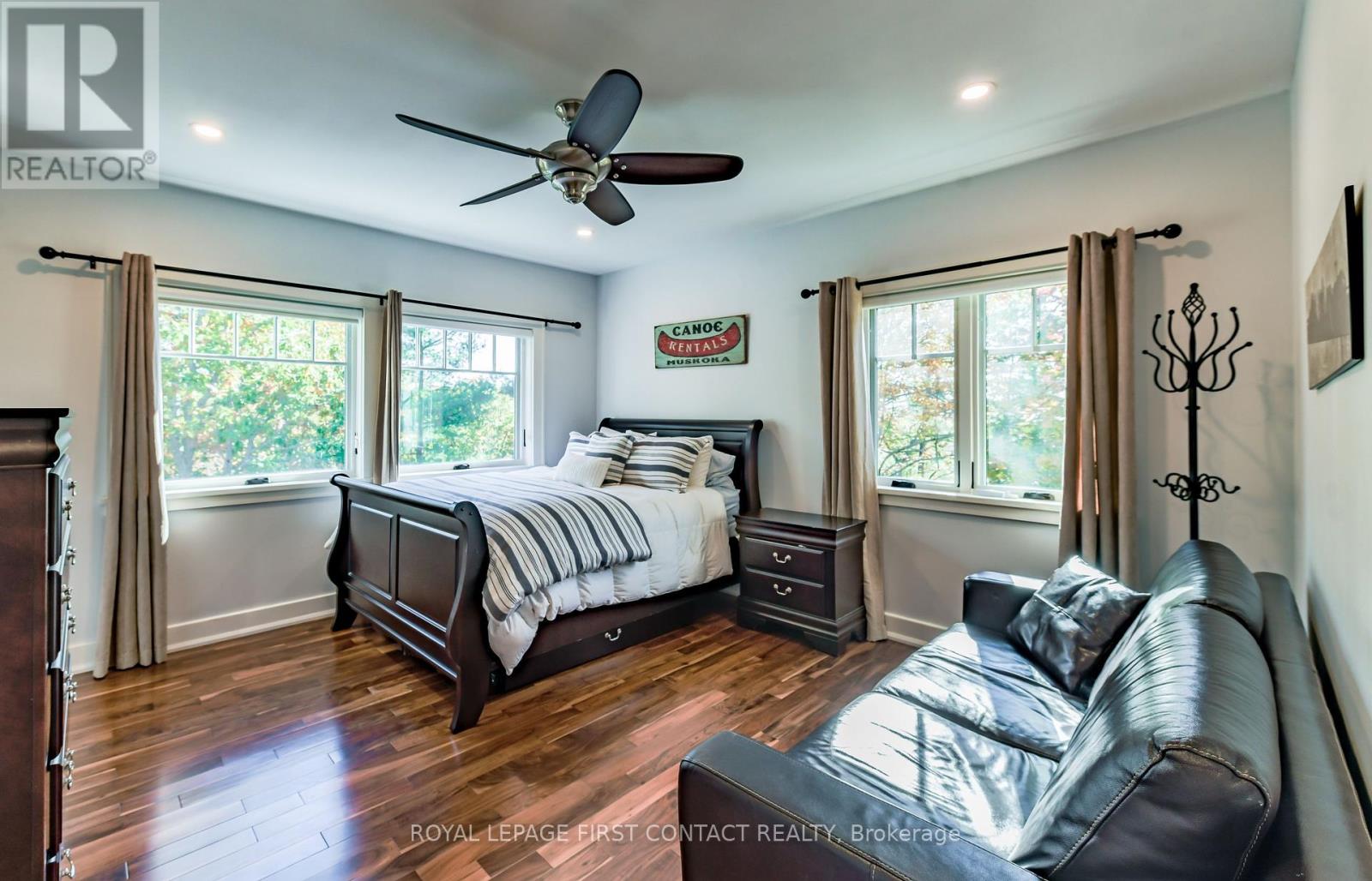 Perched at the end of a private year round paved road and nestled in a sheltered serene bay on Lake Muskoka. Sweeping southwestern panoramic views from a 347 ft point of land bordered by a rock wall for extra privacy. A Cutting Bros. finely crafted traditional Muskoka lakehouse built with exquisite attention to detail and meticulously maintained. Ready for year round living with 2 furnaces, 2 air conditioning condensors, a drilled well and backup wired automatic full generator. Beautifully landscaped with muskoka granite built patios, walkways, and steps that lead down to an impressive 3 slip boathouse that is equipped with hydraulic lifts. Bring the whole family or invite the guests, with over 6200 sq ft of living space including the fully finished bright sunlit walk out basement, there is room for everyone. 6 bedrooms, 4 bathrooms, and plans and permits are in place to create additional living quarters above the boathouse, creating endless possibilities. Soaring two-story beamed ceilings frame the great room, anchored by a dramatic stone fireplace with heatilators and a wall of windows that invite the lake inside The chefs kitchen is a showpiece in both form and function, featuring granite stone counters, a walk-in pantry, dual ovens, two sinks and a bar/beverage station for easy entertaining. Dining room effortlessly turns into the perfect screened in muskoka room with 5 massive windows that drop down and disappear into the walls, opening the space to enjoy breezy sunset views. The main floor primary bedroom, with another beautiful stone fireplace, a 5 pc ensuite with soaker tub, walk-in closet, plus a walk out to water view deck creates the perfect retreat. Lower level is designed for fun and relaxation, featuring a spacious games room, and rec room that are perfect for entertaining family and friends. From here walk out directly to beautiful granite patios where a hot tub awaits-an ideal spot to unwind and enjoy the views over the water and have a fire (id:56991)