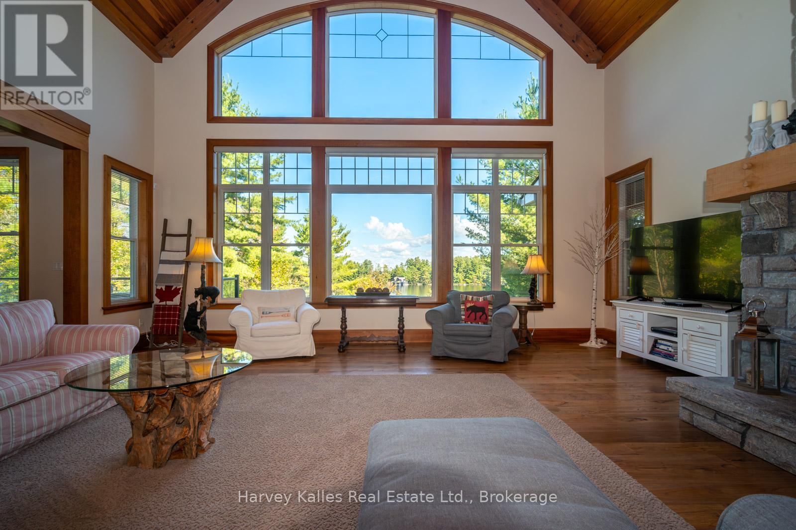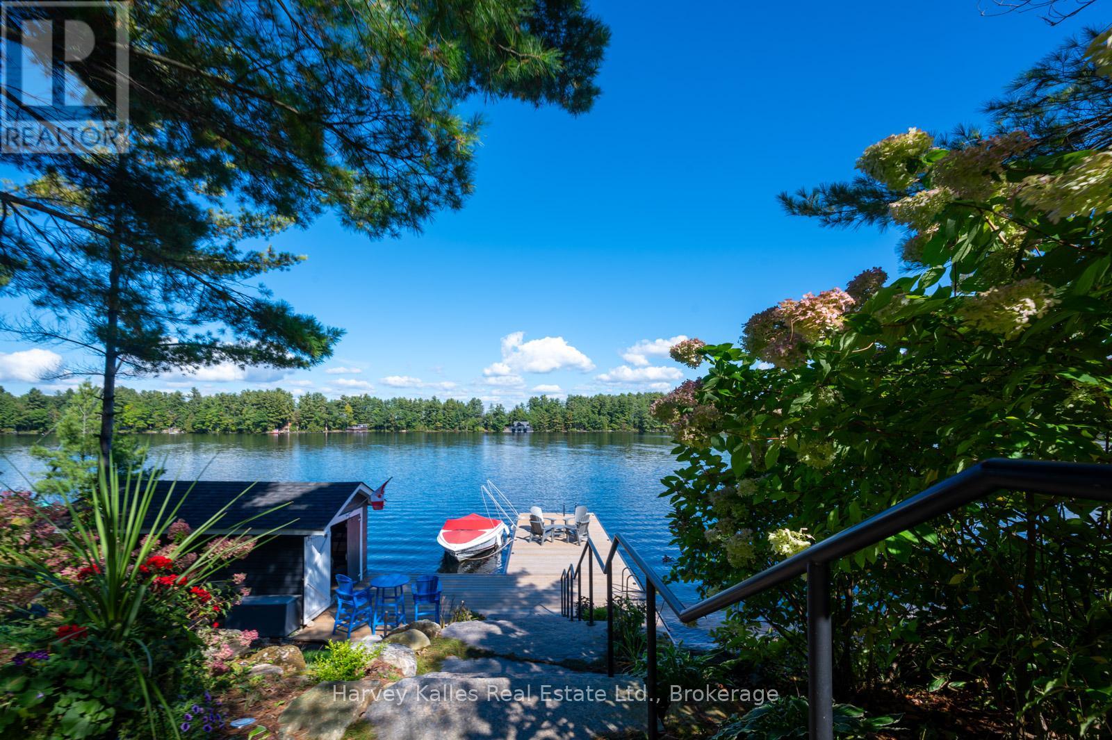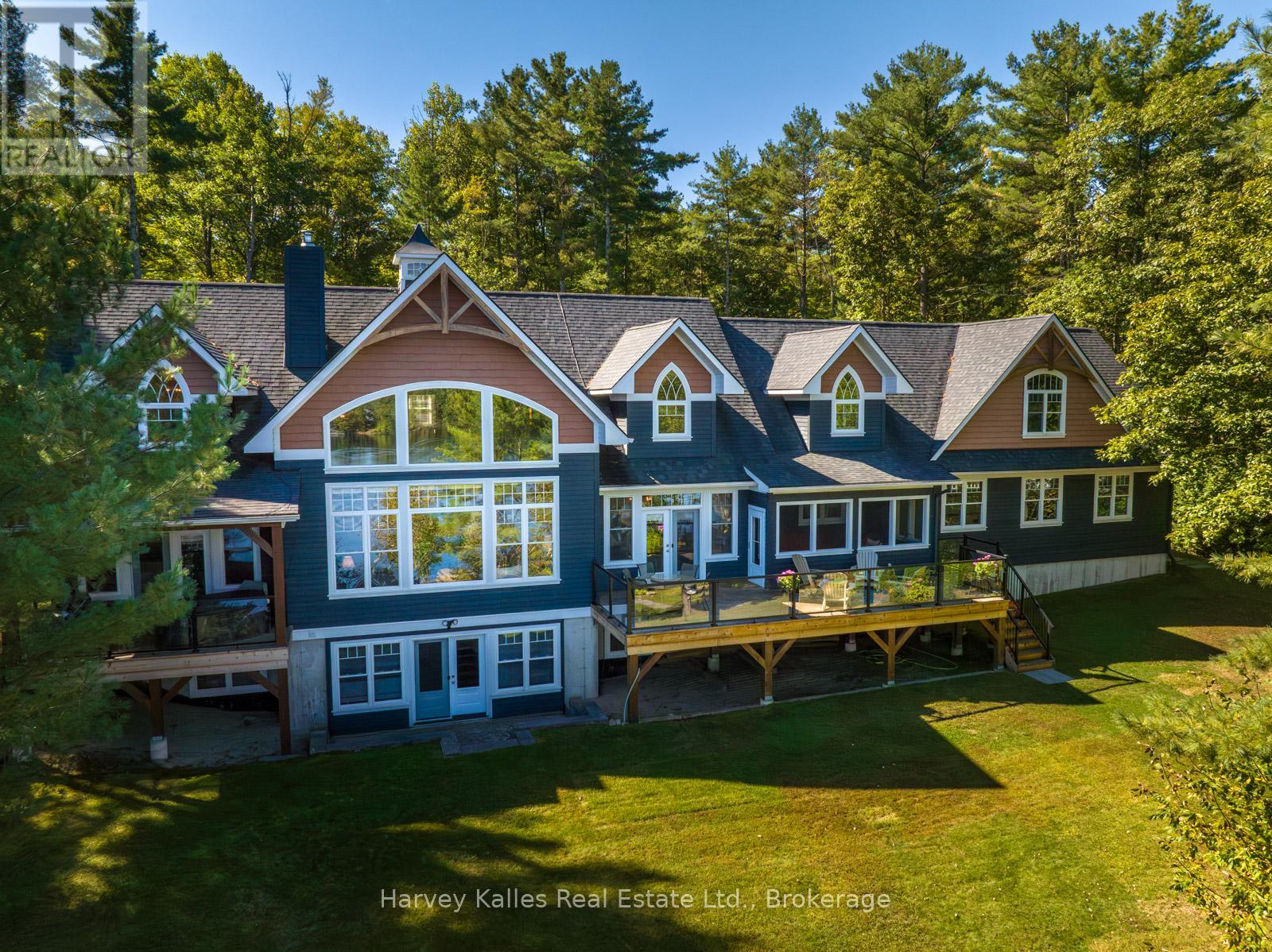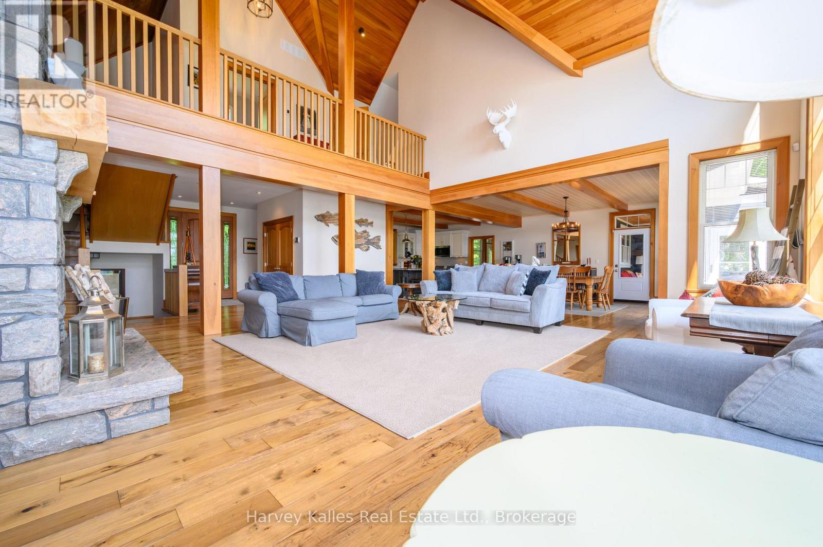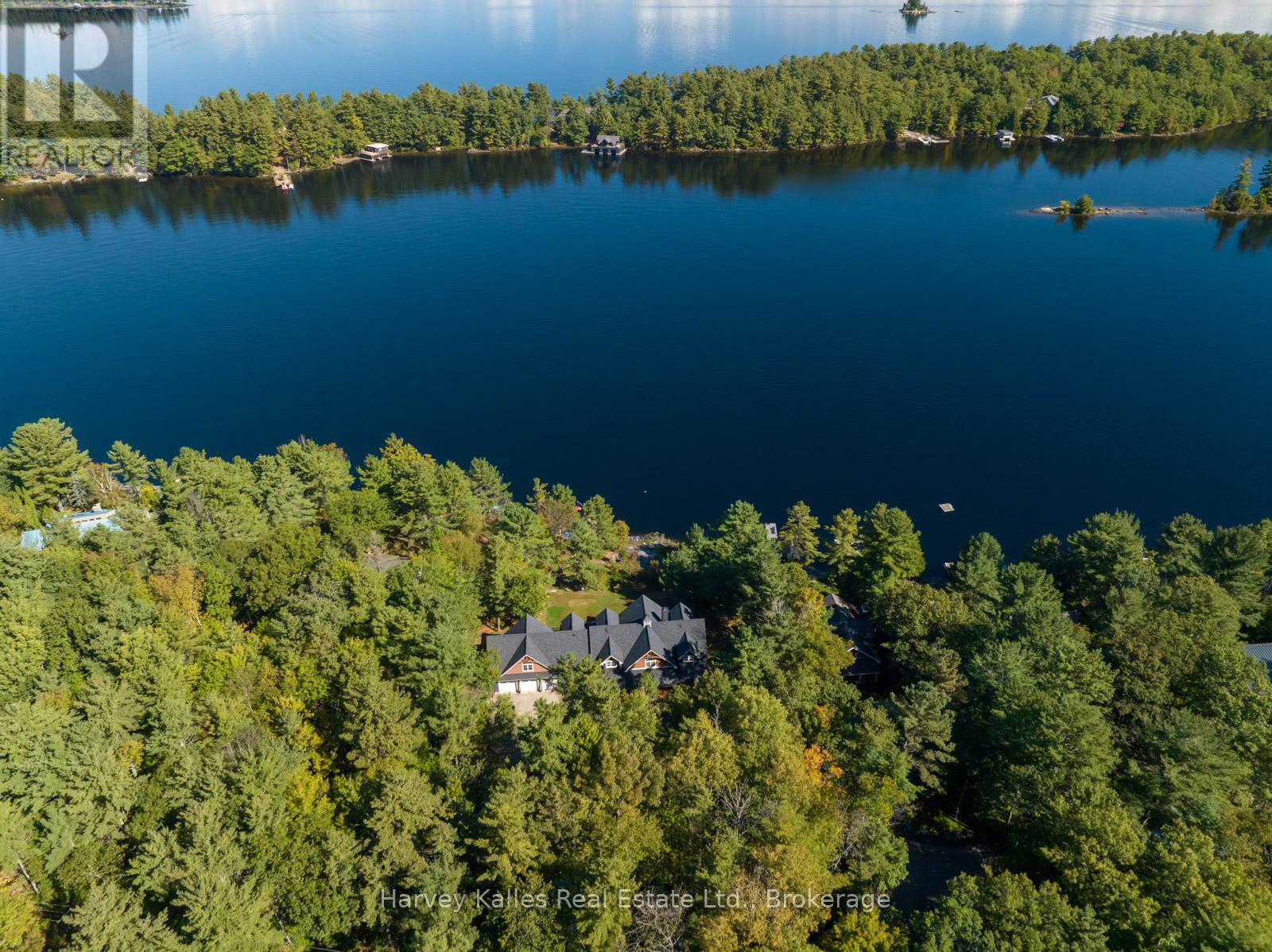 Welcome to 1045 Lakeshore Drive an exceptional waterfront retreat on Lake Muskoka that defines luxury, serenity and expansive living. This 4-bedroom, 3-bathroom masterpiece offers elegance, scale, and the rare freedom to shape its final form. Step into a luminous great room with soaring ceilings and a dramatic stone fireplace that does not impact the sweeping views of the lake. The main floor primary suite opens directly onto a covered lakeside porch, featuring a private hot tub and lounge area, perfect for sunrises over the water or star-filled evenings in total privacy. Upstairs are three spacious bedrooms and two refined bathrooms, anchored by a cozy reading alcove and generous walk-in linen closet. Dual staircases ensure smooth traffic flow between levels - whether entertaining or retreating. A walk-out lower level awaits your vision. With unfinished spaces, flooded with natural light, this floor offers tremendous opportunity like an additional bedroom, home theatre, gym, staff suite, or multi-use recreational area that can be designed to suit any lifestyle. Set on a beautifully landscaped parcel with expansive, level lawns and gently rolling terrain to the lake, the property's shoreline features classic Muskoka granite, a newly built staircase down to the waterfront, a steel dock, and a covered waterfront pavilion for shade and shelter. Every detail is engineered to connect you to the water without sacrificing space, privacy or comfort. This home stands on solid foundations, with municipal year-round road access, an attached 3 car garage and all the utilities needed for a year-round Muskoka lifestyle. Whether you seek an elegant family compound, a private retreat for friends, or a legacy investment on one of Canadas most storied lakes, 1045 Lakeshore Drive delivers. Opportunities of this calibre are rare. Come see the promise of what can be. (id:56991)