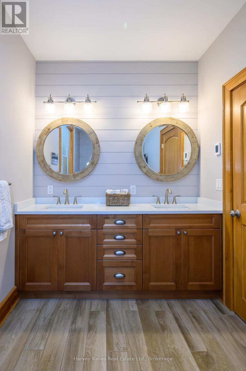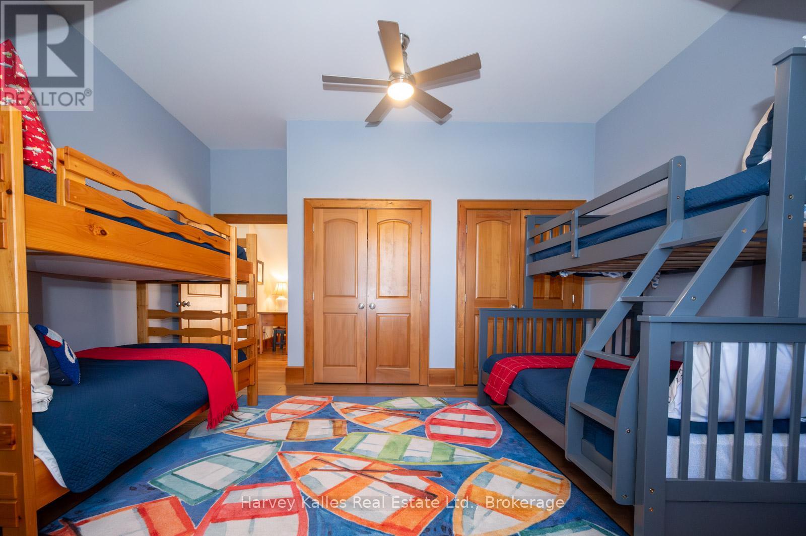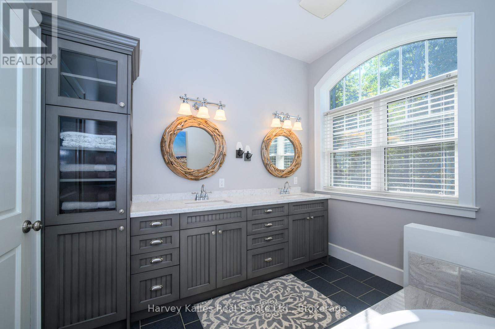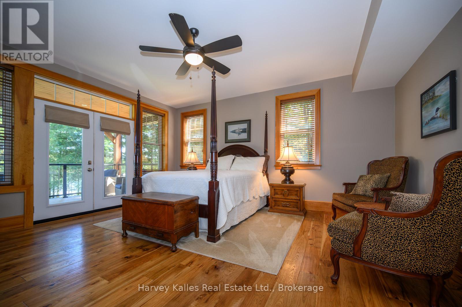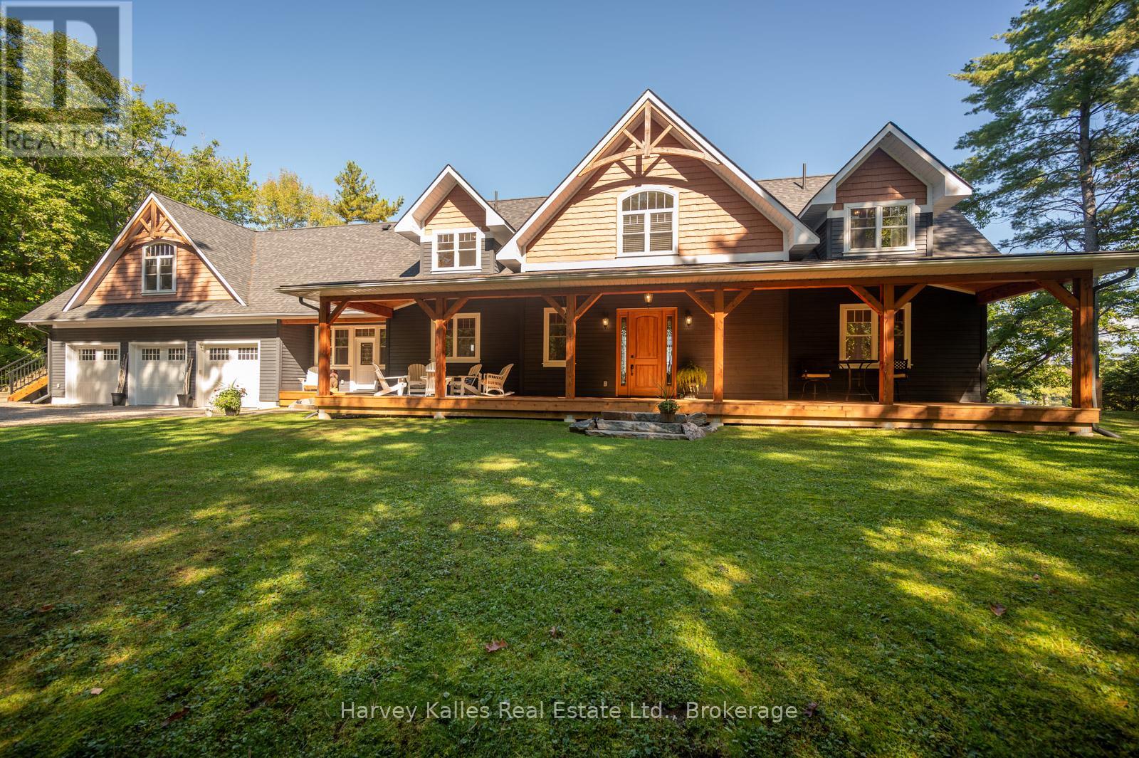Welcome to 1045 Lakeshore Drive an exceptional waterfront retreat on Lake Muskoka that defines luxury, serenity and expansive living. This 4-bedroom, 3-bathroom masterpiece offers elegance, scale, and the rare freedom to shape its final form. Step into a luminous great room with soaring ceilings and a dramatic stone fireplace that does not impact the sweeping views of the lake. The main floor primary suite opens directly onto a covered lakeside porch, featuring a private hot tub and lounge area, perfect for sunrises over the water or star-filled evenings in total privacy. Upstairs are three spacious bedrooms and two refined bathrooms, anchored by a cozy reading alcove and generous walk-in linen closet. Dual staircases ensure smooth traffic flow between levels - whether entertaining or retreating. A walk-out lower level awaits your vision. With unfinished spaces, flooded with natural light, this floor offers tremendous opportunity like an additional bedroom, home theatre, gym, staff suite, or multi-use recreational area that can be designed to suit any lifestyle. Set on a beautifully landscaped parcel with expansive, level lawns and gently rolling terrain to the lake, the property's shoreline features classic Muskoka granite, a newly built staircase down to the waterfront, a steel dock, and a covered waterfront pavilion for shade and shelter. Every detail is engineered to connect you to the water without sacrificing space, privacy or comfort. This home stands on solid foundations, with municipal year-round road access, an attached 3 car garage and all the utilities needed for a year-round Muskoka lifestyle. Whether you seek an elegant family compound, a private retreat for friends, or a legacy investment on one of Canadas most storied lakes, 1045 Lakeshore Drive delivers. Opportunities of this calibre are rare. Come see the promise of what can be. (id:56991)