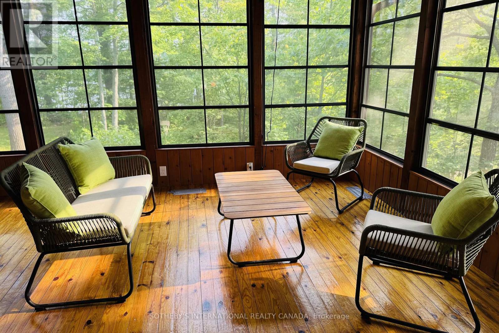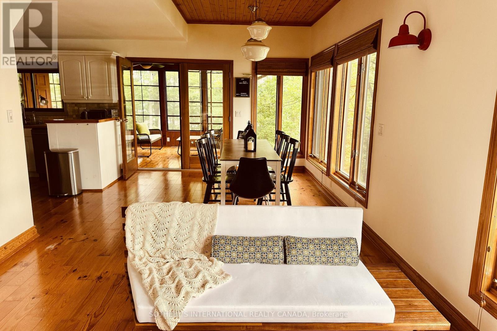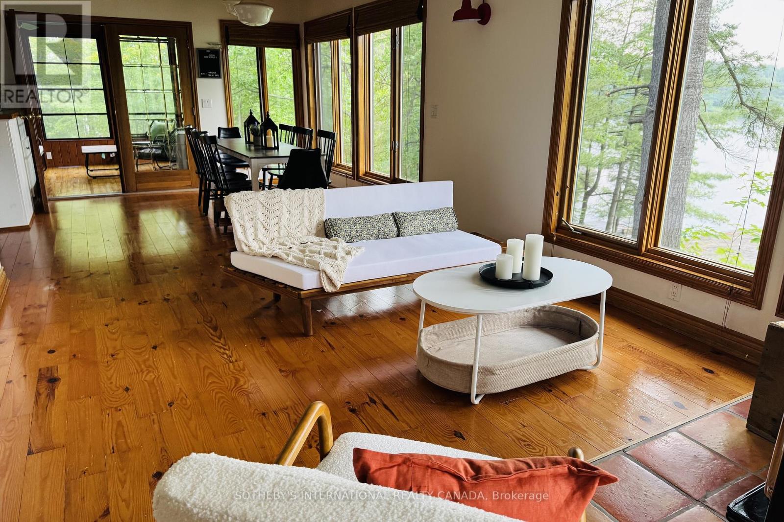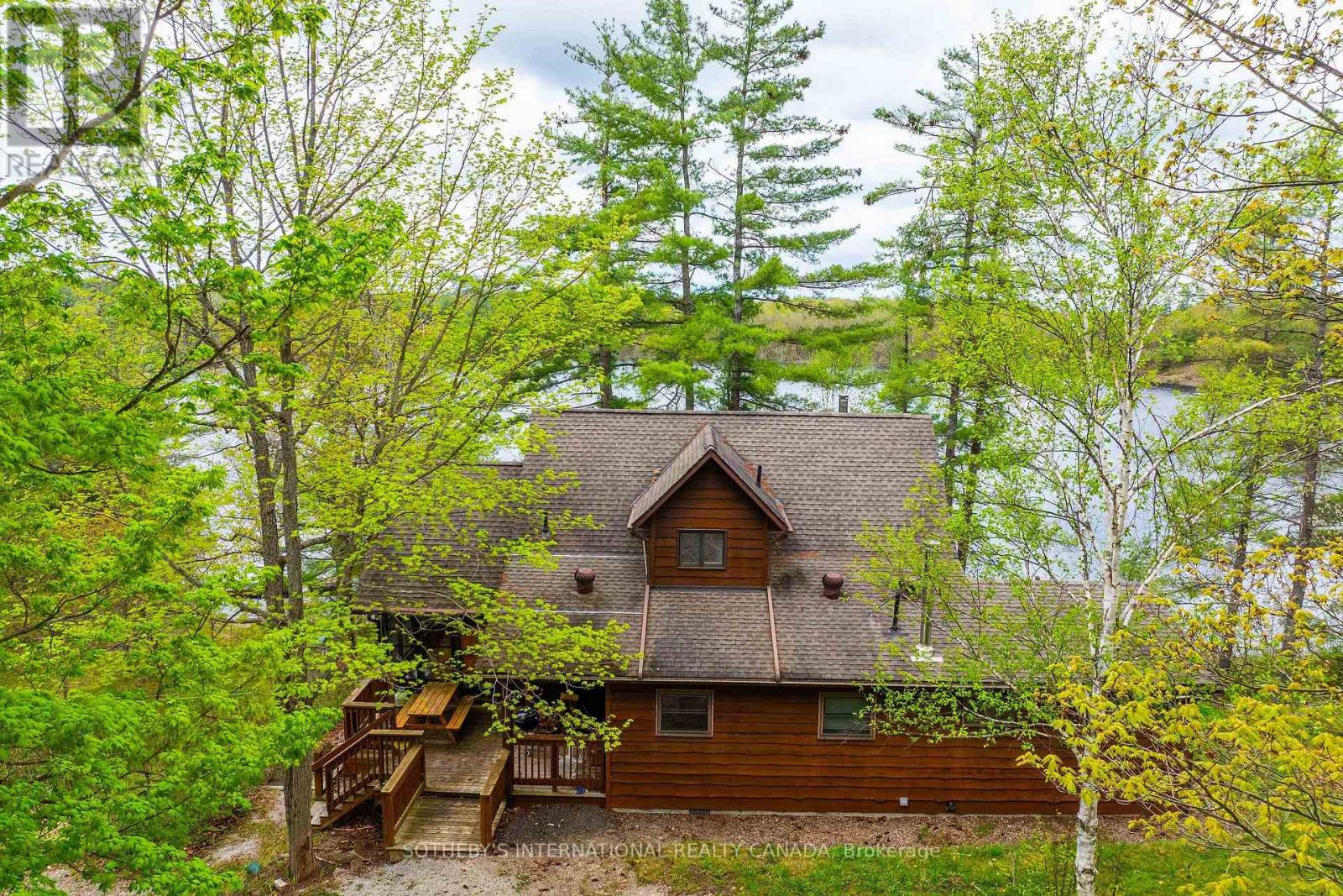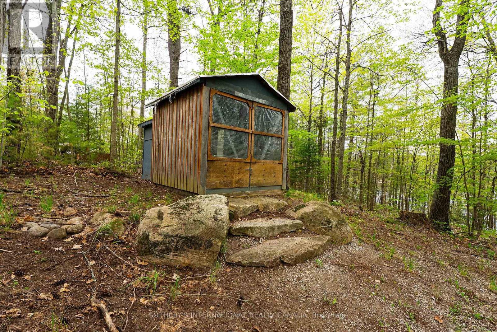 A Muskoka Rarity: 29-Acre Waterfront Estate with Over 2,200 Feet of Shoreline. Welcome to an extraordinary waterfront offering 29.41 acres of complete privacy and over 2,230 feet of pristine south-to-west-facing shoreline on beautiful Bass Lake, with direct boat access into Kahshe Lake. Whether you're dreaming of a year-round residence or a four-season retreat, this one-of-a-kind property offers thebest of both worlds: unmatched seclusion, natural beauty, and endless potential. The land is a stunning mix of level terrain and iconic Muskoka granite, with mature pines, curated perennial gardens, and a private sandy beach tucked into your own quiet cove. A thriving raised bed vegetable garden and charming outbuildings including a chicken coop and tiny cabin on the point add to the charm and functionality. The main residence offers approximately 2,000 square feet of well-kept living space with 3 bedrooms and 2 bathrooms. A separate 1,200 sq. ft. heated garage/workshop with an unfinished loft provides opportunity for guest quarters, a studio, or home office. The septic system is sized for 4 bedrooms, offering future flexibility. Additional outbuildings include a 28 x 32 detached garage and multiple storage structures. The property is also well-positioned for potential severance, without compromising its serene character. Located just two hours from Toronto, this rare legacy property invites you to swim, paddle, fish, or simply take in spectacular sunsets from your own shoreline. The setting is magical,the lifestyle exceptional - and the possibilities, endless. (id:56991)