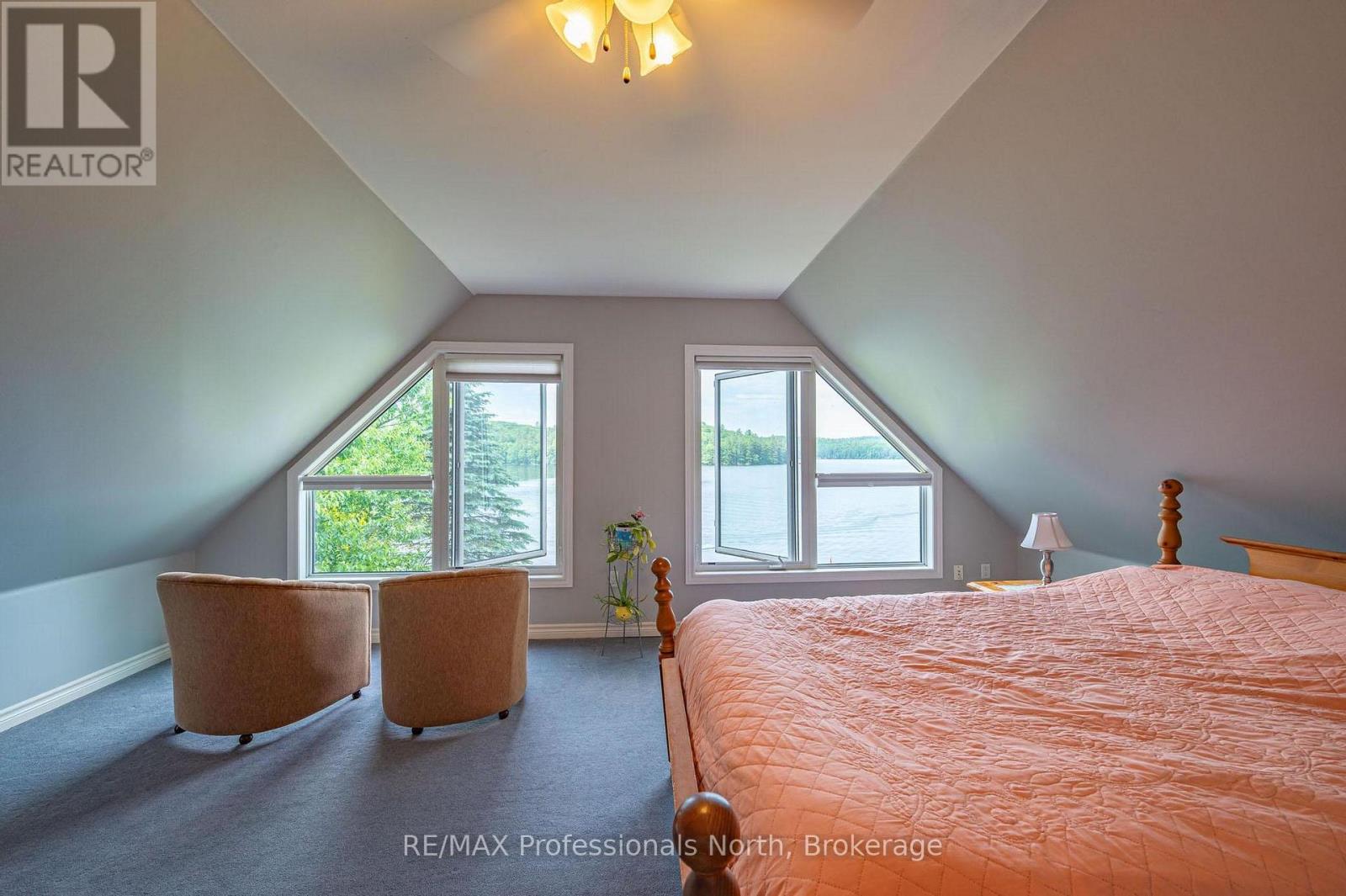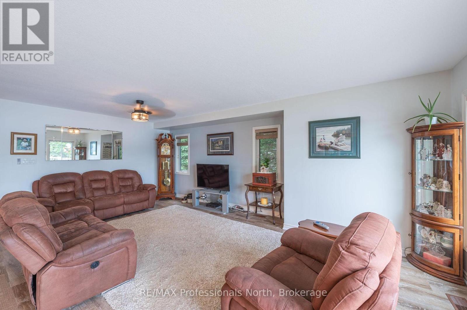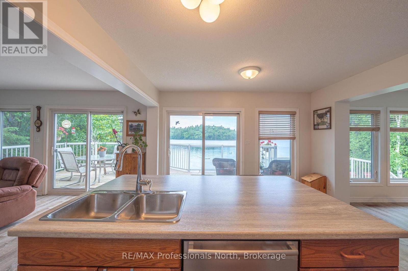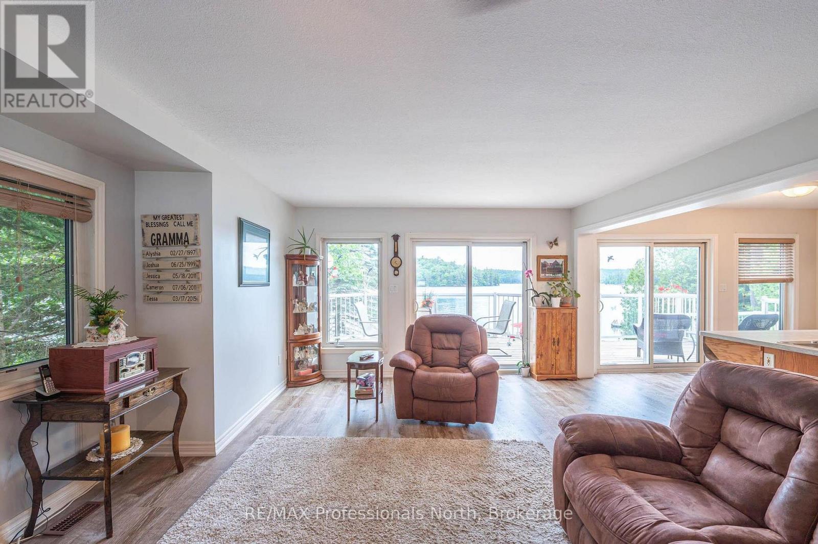 Make this your getaway on stunning St. Nora Lake! Beautifully maintained 4 bedroom, 4 bathroom year-round home or cottage sits on a large150 feet of pristine waterfront, offering breathtaking views from the full length front deck. Whether you're sipping your morning coffee or entertaining guests, the panoramic lake views are sure to impress. The home or cottage features a spacious and light filled, open concept layout with plenty of room for family and friends. A separate bunkie provides additional sleeping space or a cozy retreat for guests, while the detached garage with a loft offers ample storage or potential for a studio or hobby space. St. Nora Lake is part of a desirable two lake chain with Kushog Lake, offering miles of boating, fishing and water recreation. Outdoor enthusiasts will love the proximity to snowmobile, ATV, hiking, and cross-country skiing trails, making this a four-season paradise. This can be your opportunity to own a piece of Haliburton Highlands waterfront with endless potential for family fun, rental income, or peaceful lakeside living. (id:56991)