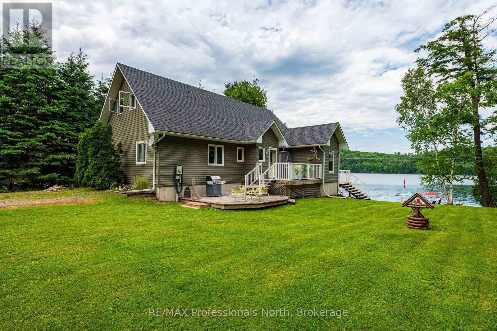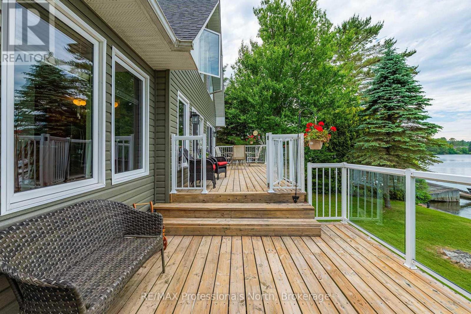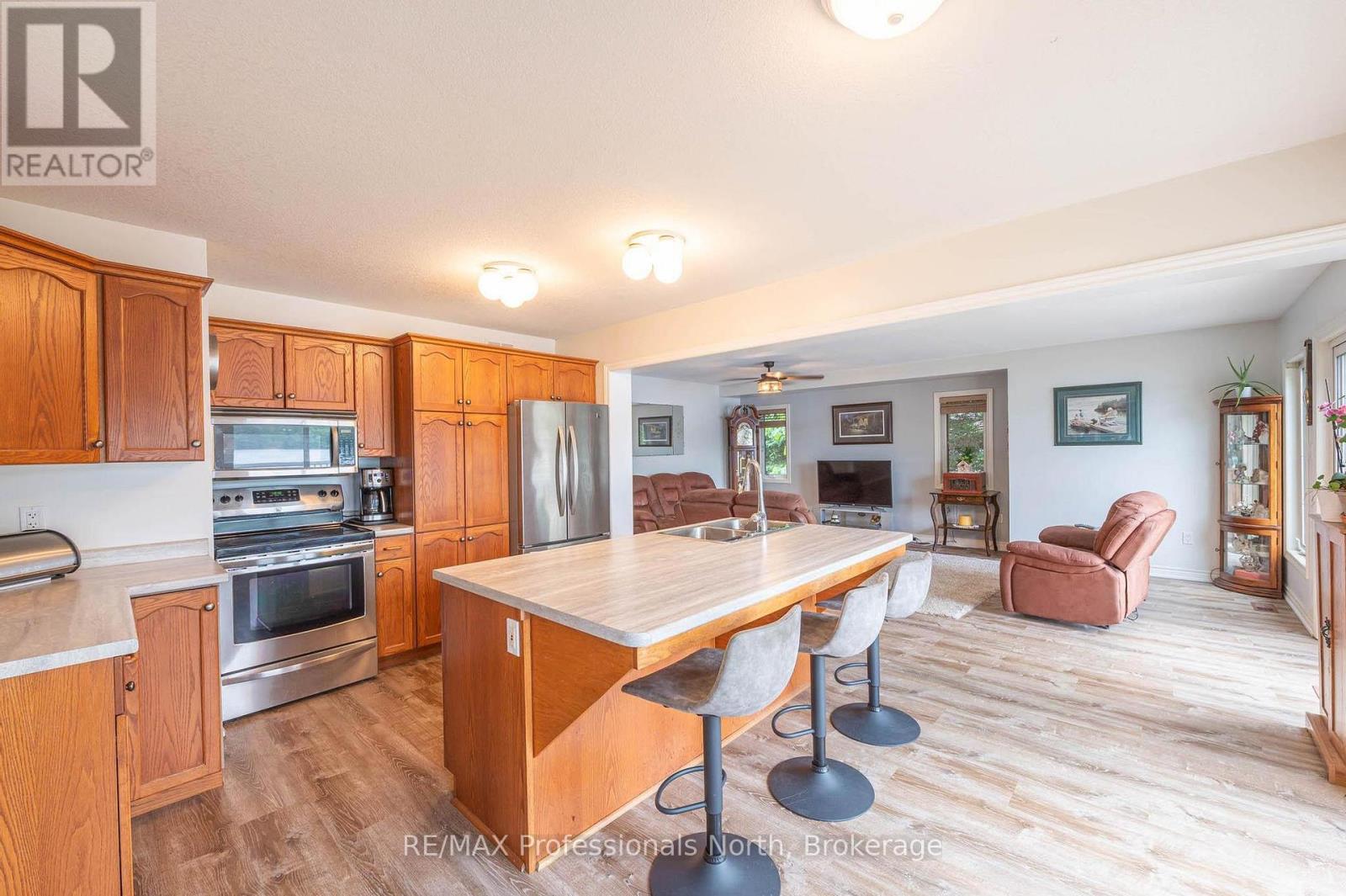 Make this your getaway on stunning St. Nora Lake! Beautifully maintained 4 bedroom, 4 bathroom year-round home or cottage sits on a large150 feet of pristine waterfront, offering breathtaking views from the full length front deck. Whether you're sipping your morning coffee or entertaining guests, the panoramic lake views are sure to impress. The home or cottage features a spacious and light filled, open concept layout with plenty of room for family and friends. A separate bunkie provides additional sleeping space or a cozy retreat for guests, while the detached garage with a loft offers ample storage or potential for a studio or hobby space. St. Nora Lake is part of a desirable two lake chain with Kushog Lake, offering miles of boating, fishing and water recreation. Outdoor enthusiasts will love the proximity to snowmobile, ATV, hiking, and cross-country skiing trails, making this a four-season paradise. This can be your opportunity to own a piece of Haliburton Highlands waterfront with endless potential for family fun, rental income, or peaceful lakeside living. (id:56991)