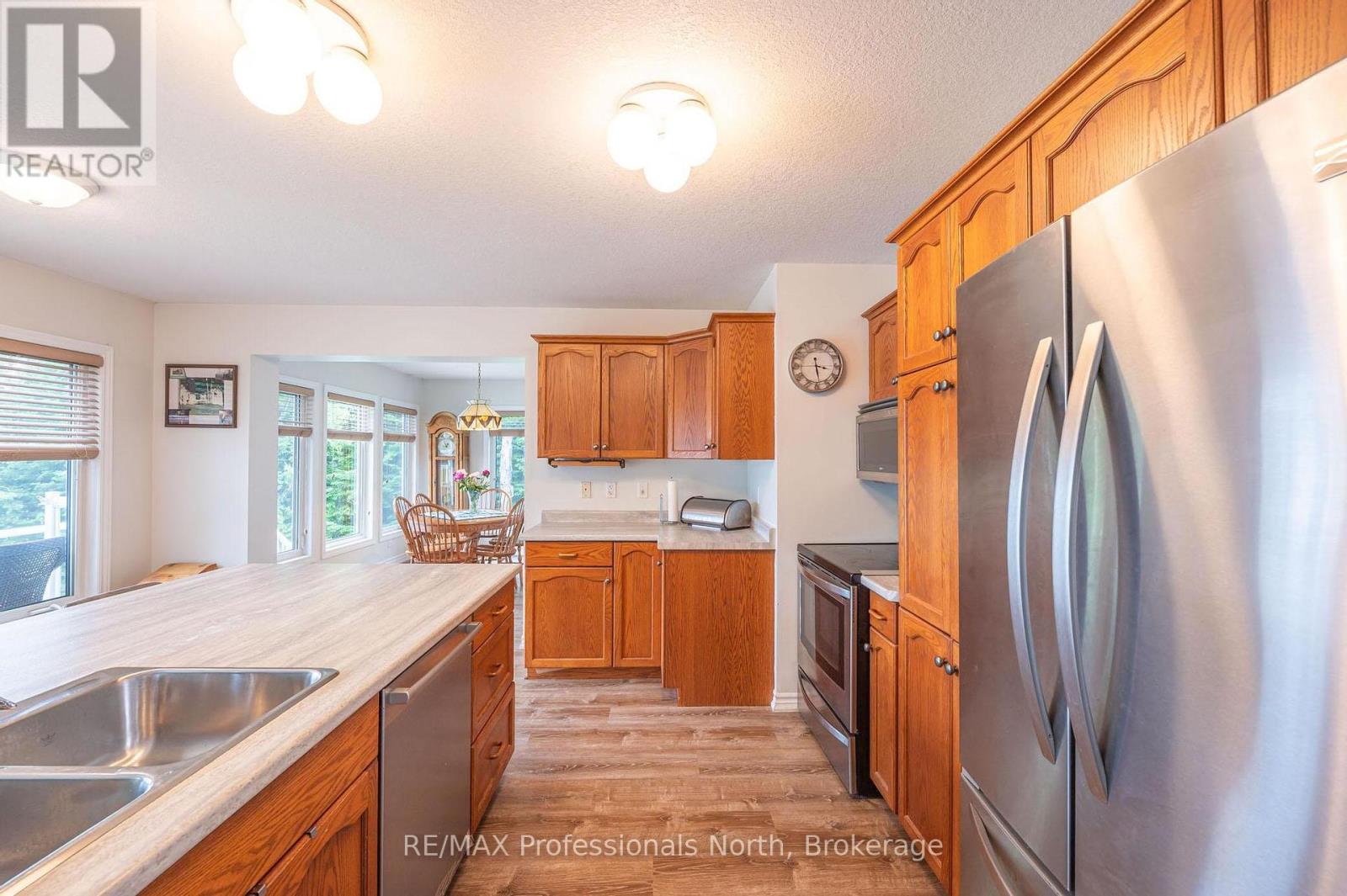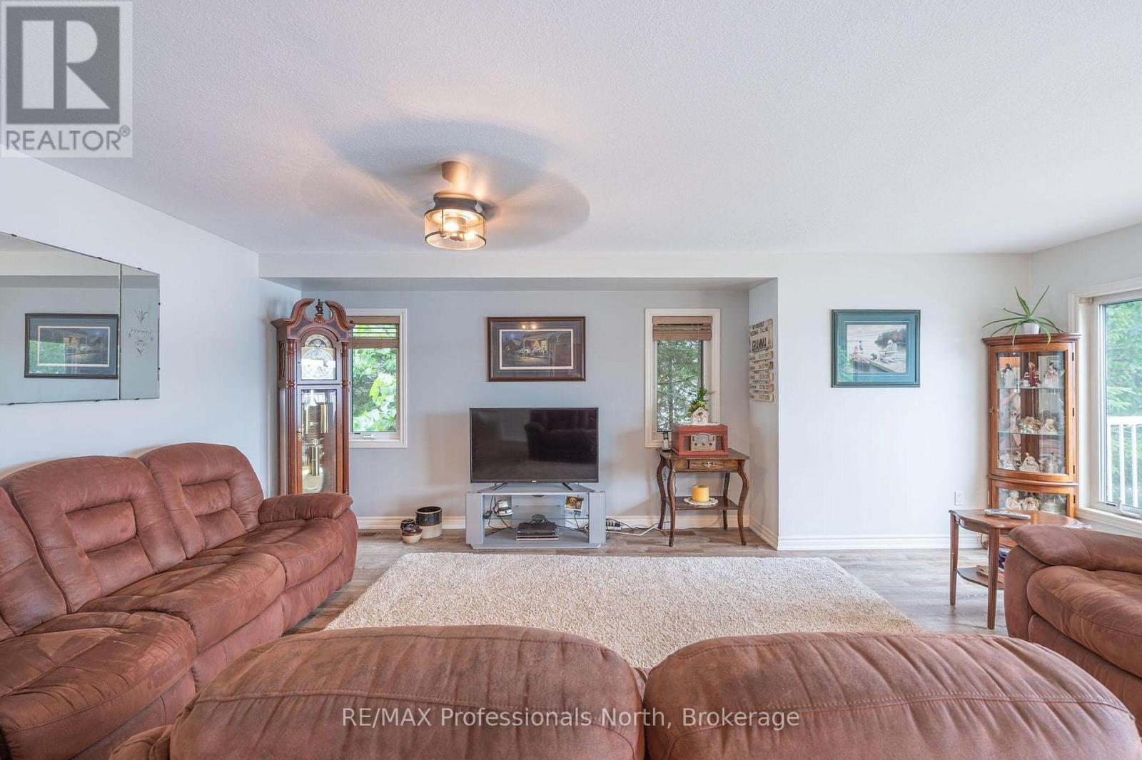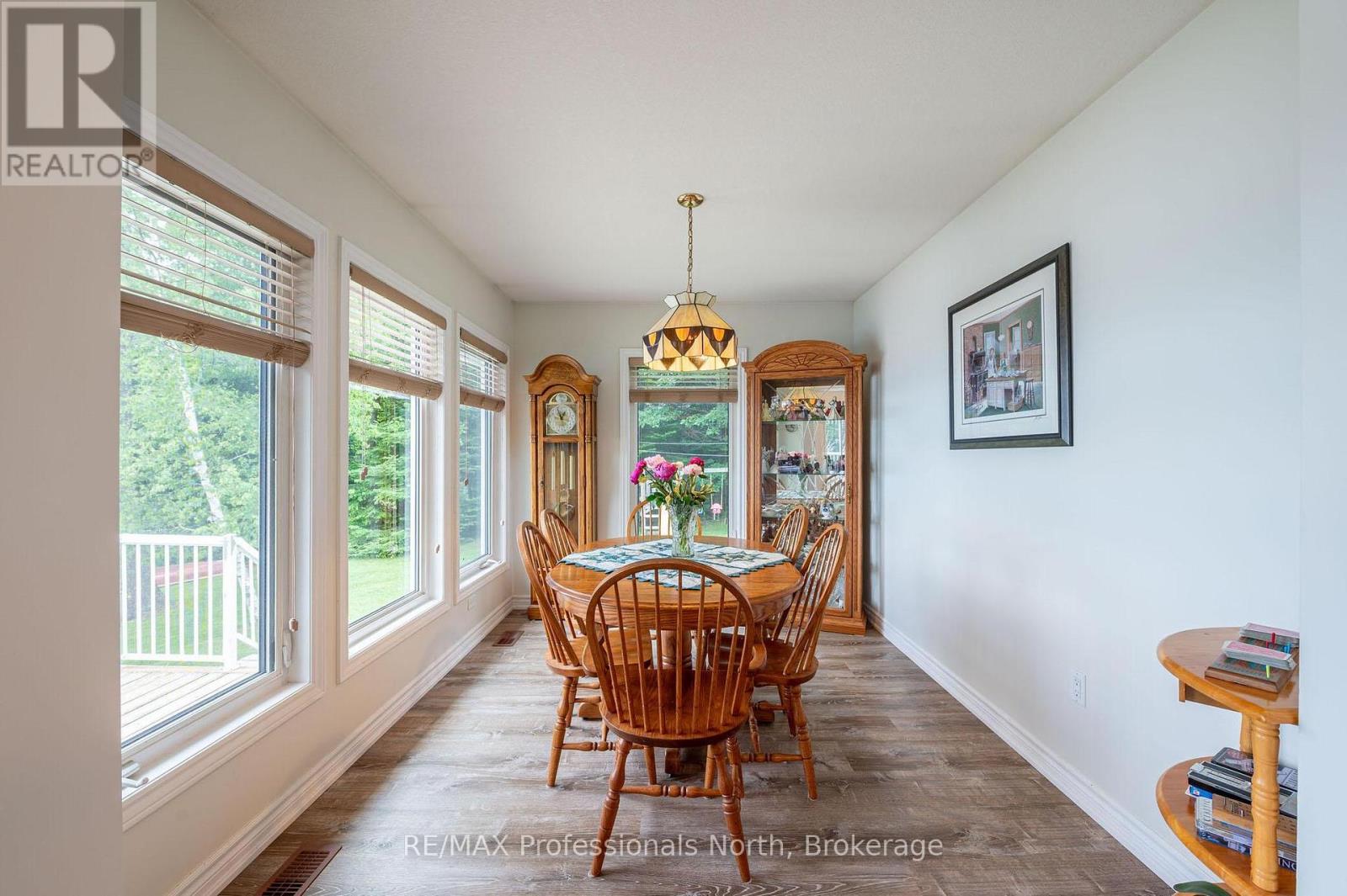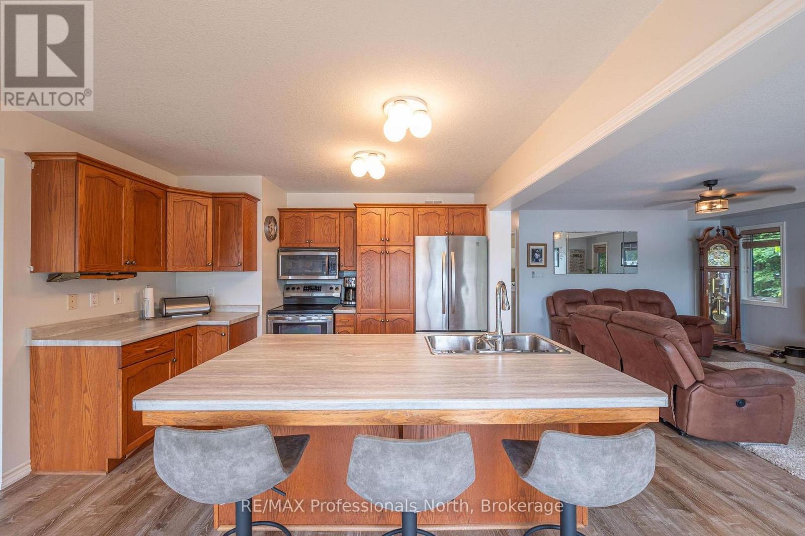 Make this your getaway on stunning St. Nora Lake! Beautifully maintained 4 bedroom, 4 bathroom year-round home or cottage sits on a large150 feet of pristine waterfront, offering breathtaking views from the full length front deck. Whether you're sipping your morning coffee or entertaining guests, the panoramic lake views are sure to impress. The home or cottage features a spacious and light filled, open concept layout with plenty of room for family and friends. A separate bunkie provides additional sleeping space or a cozy retreat for guests, while the detached garage with a loft offers ample storage or potential for a studio or hobby space. St. Nora Lake is part of a desirable two lake chain with Kushog Lake, offering miles of boating, fishing and water recreation. Outdoor enthusiasts will love the proximity to snowmobile, ATV, hiking, and cross-country skiing trails, making this a four-season paradise. This can be your opportunity to own a piece of Haliburton Highlands waterfront with endless potential for family fun, rental income, or peaceful lakeside living. (id:56991)