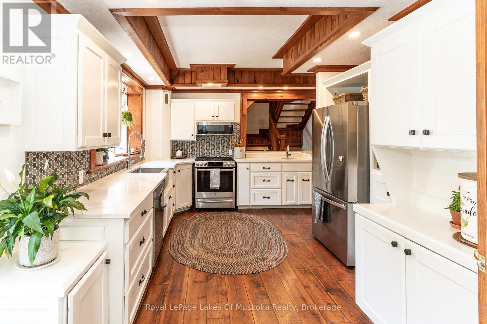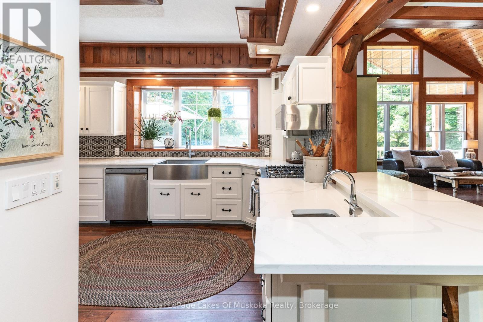 Discover the perfect blend of nature and luxury with this stunning 2.7-acre property, ideally located in one of Muskokas most desirable neighbourhoods. Surrounded by pristine forest and renowned natural beauty, this retreat offers unmatched privacy while being just minutes from Hwy 60, Peninsula Lake, Lake of Bays, Limberlost Reserve, Algonquin Park, and the vibrant Town of Huntsville. Featuring 5 bedrooms and 6 bathrooms, including a beautifully appointed master suite, this home provides plenty of space for family and guests. Each bedroom is complete with its own private bathroom, making it ideal for multi-generational living or hosting visitors in comfort. The double-car garage is a true bonus, with a heated workspace, powder room, and an incredible loft above that offers its own bedroom, bathroom, and private deck with views of Peninsula Lake. Whether used as an extension of the family home or continued as a successful Airbnb, the possibilities are endless. Inside, gather around the grand stone fireplace in the spacious living room for cozy evenings, or channel your inner chef in the modern kitchen with granite countertops and abundant storage. Step outside and unwind in the Muskoka Room or bask in the sun on the recently updated deck, you can also explore the community trail system right at your back door, or head just minutes away to the beach and boat launch on Peninsula Lake part of a scenic four-lake chain that connects to Fairy, Mary, and Vernon. This exceptional property truly has it all: privacy, convenience, luxury, and access to Muskoka's best outdoor adventures. Don't miss your chance to experience everything this home has to offer. (id:56991)