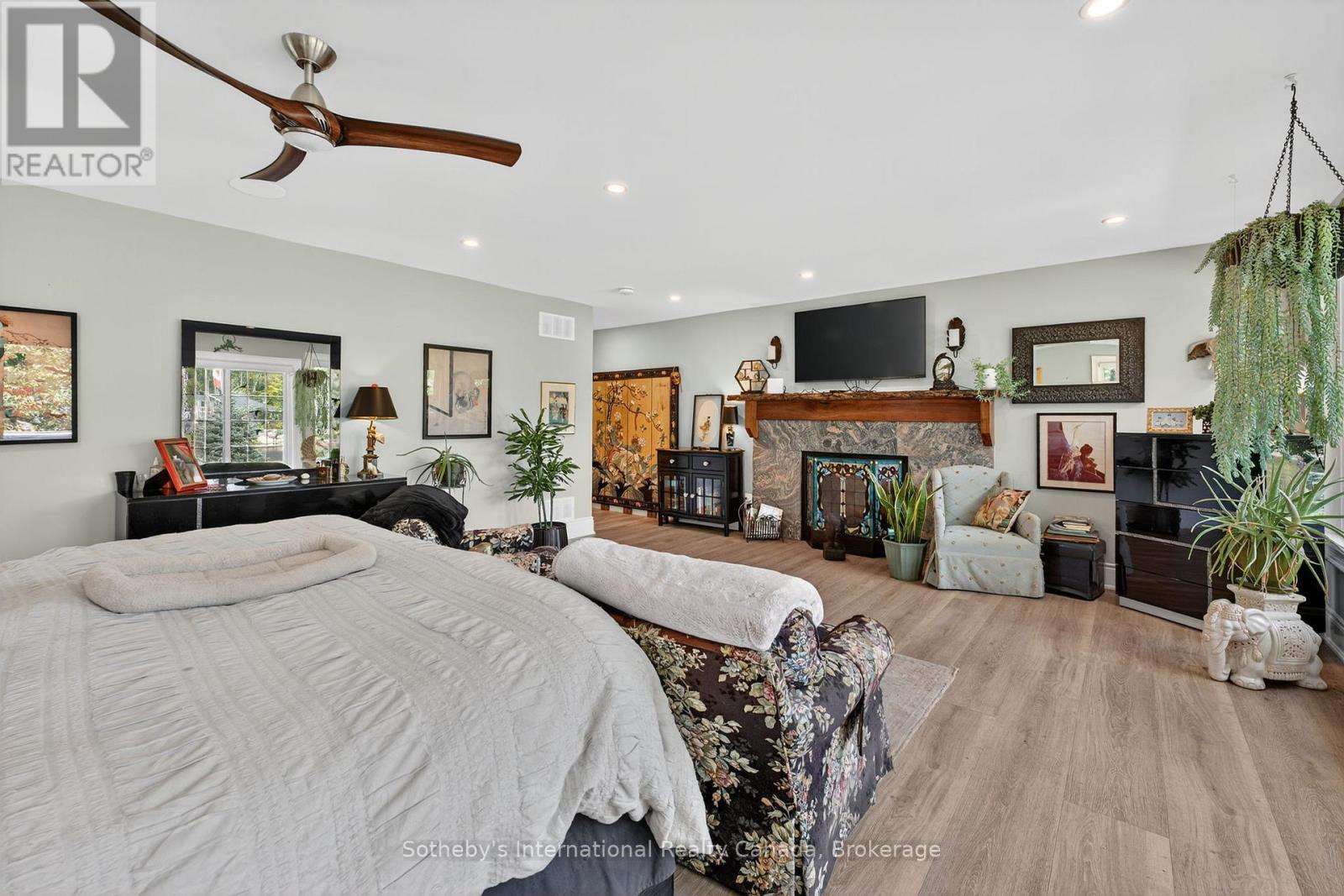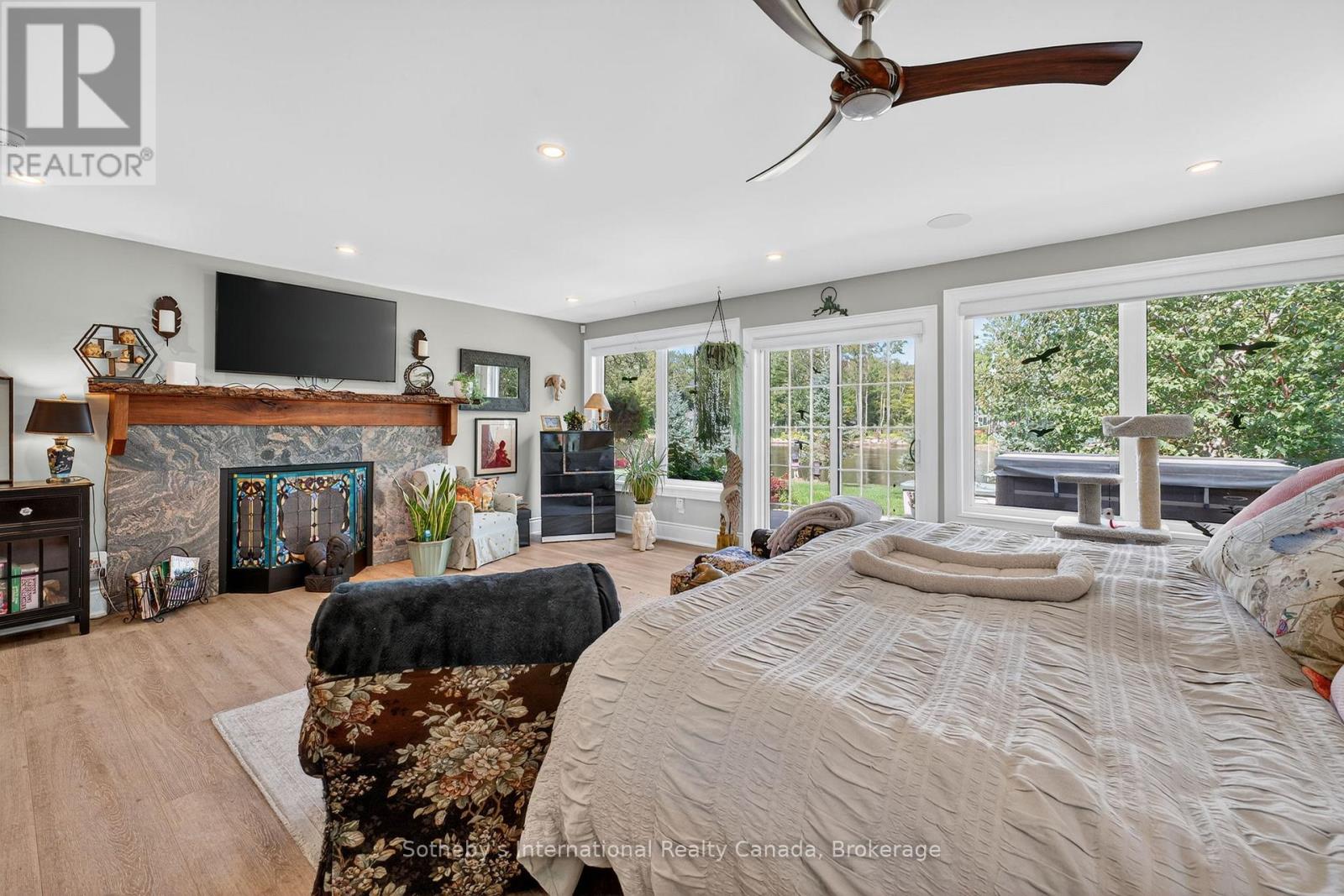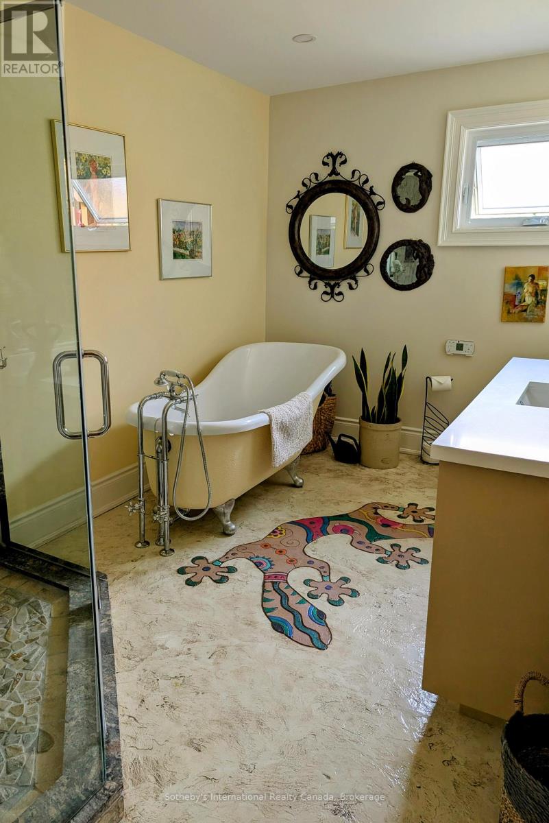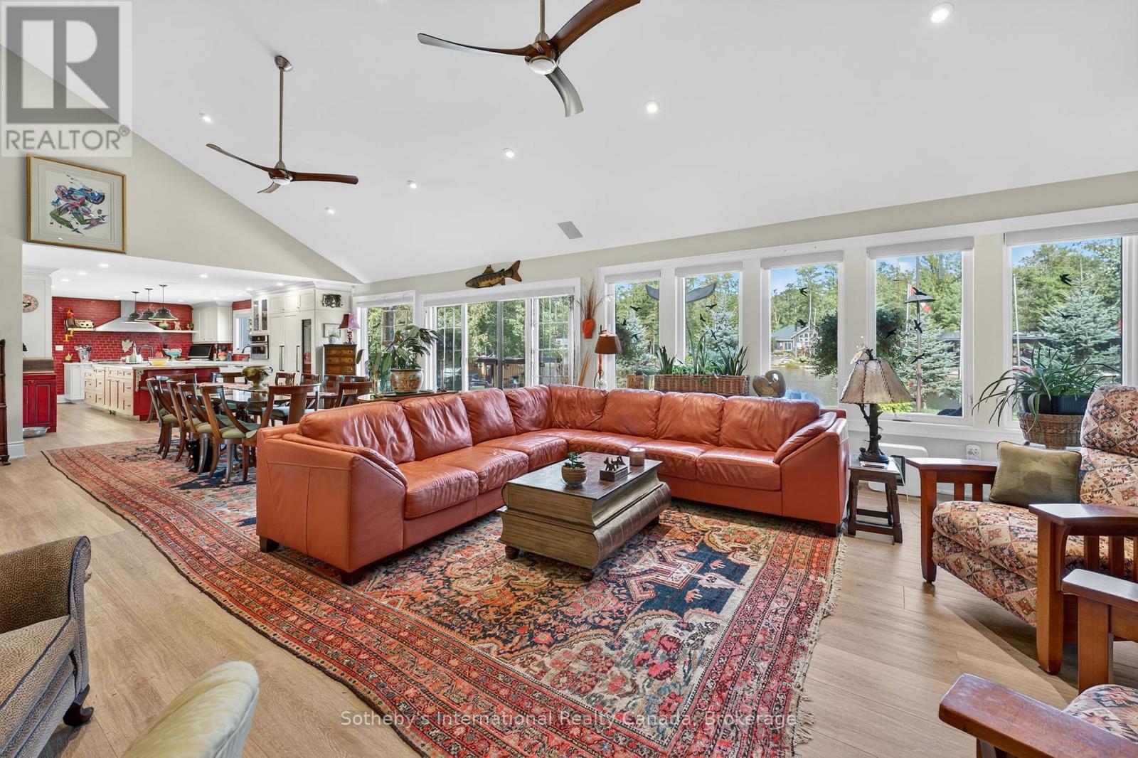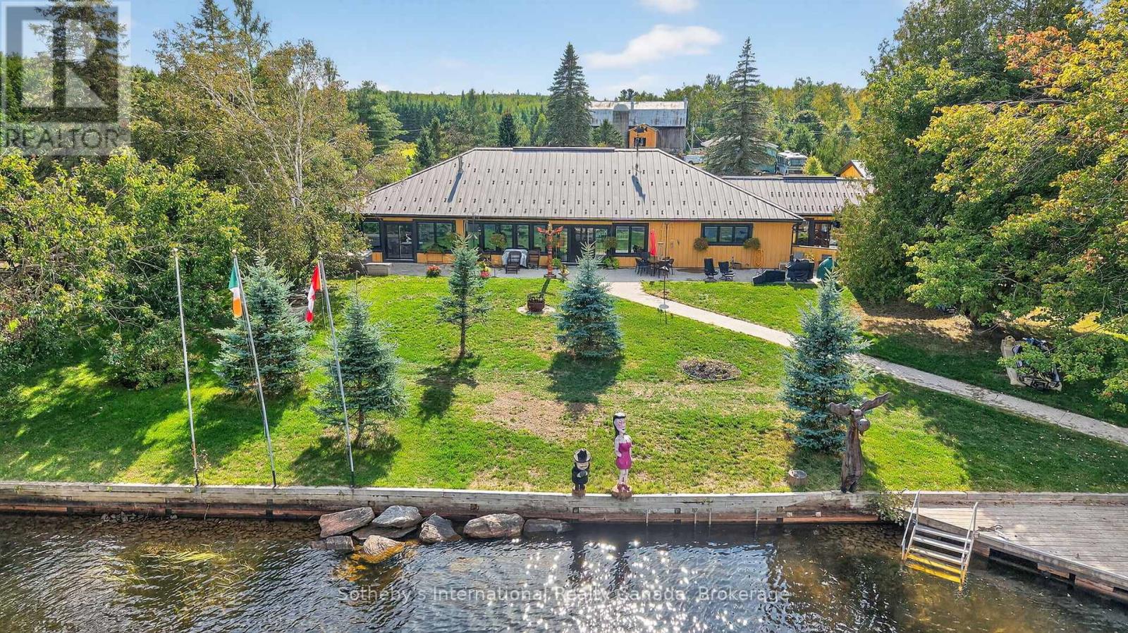 Muskoka Riverfront Masterpiece - Where History Meets Modern Luxury. Welcome to an extraordinary 4,000 sq. ft. bungalow where Muskoka history meets luxury. Set on 3.5 acres of flat, manicured land along the Muskoka River, this one-of-a-kind estate offers the perfect blend of historical character and upscale living all just minutes from downtown Bracebridge. Inside, the home features 5 spacious bedrooms, 3 luxurious bathrooms, and expansive living spaces designed for both relaxation and entertaining. A chefs kitchen is at the heart of the home, fully outfitted for gourmet cooking and gatherings, complemented by a formal dining area that seats 12.Step outside and immerse yourself in your own private resort experience: a fiberglass inground pool, commercial-grade poolside kitchen hut, outdoor hot tub, and a private sauna for ultimate relaxation. A 1-slip boathouse provides direct river access, with just a few minutes boat ride to the open waters of Lake Muskoka. For the car enthusiast or hobbyist, the property includes a 3-bay detached garage with mechanics lifts, plus an attached garage for added convenience. And as a final touch of history and character, a beautifully preserved 1886 barn stands proudly on the property a rare and meaningful piece of Muskoka's heritage. This is more than just a waterfront home; its a work of art, a sanctuary, and a true legacy property in the heart of Muskoka. (id:56991)