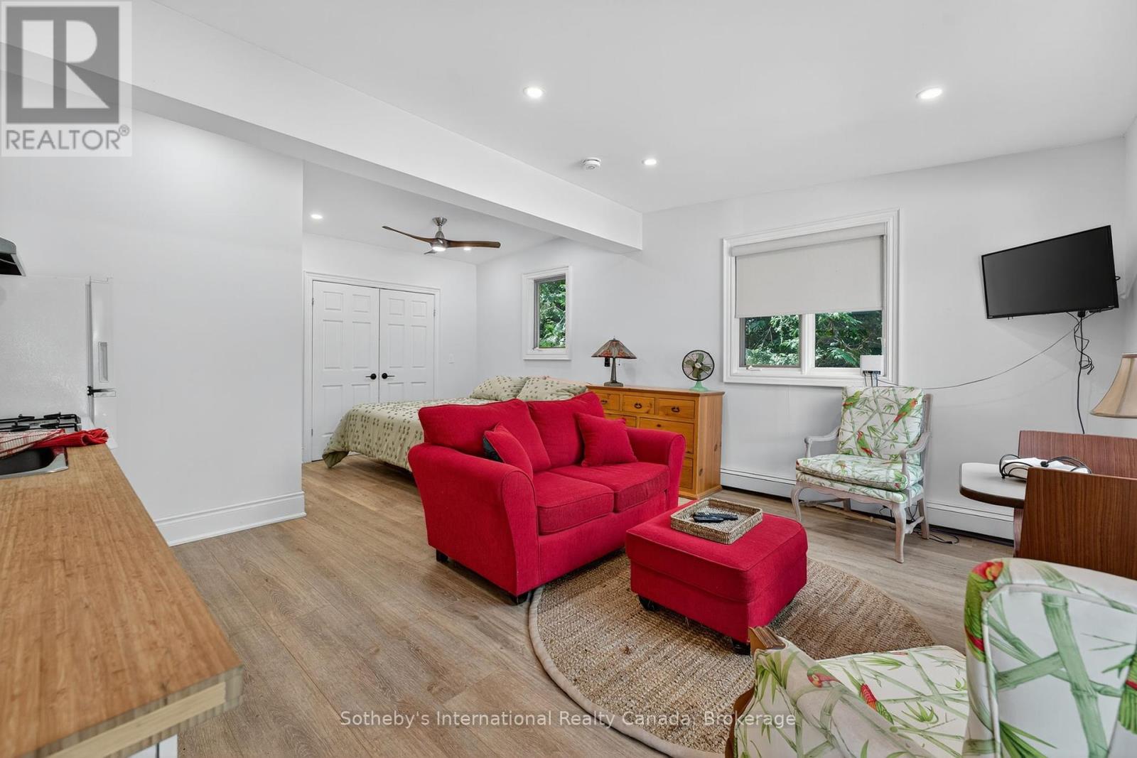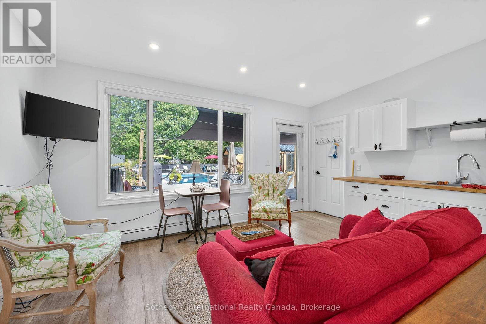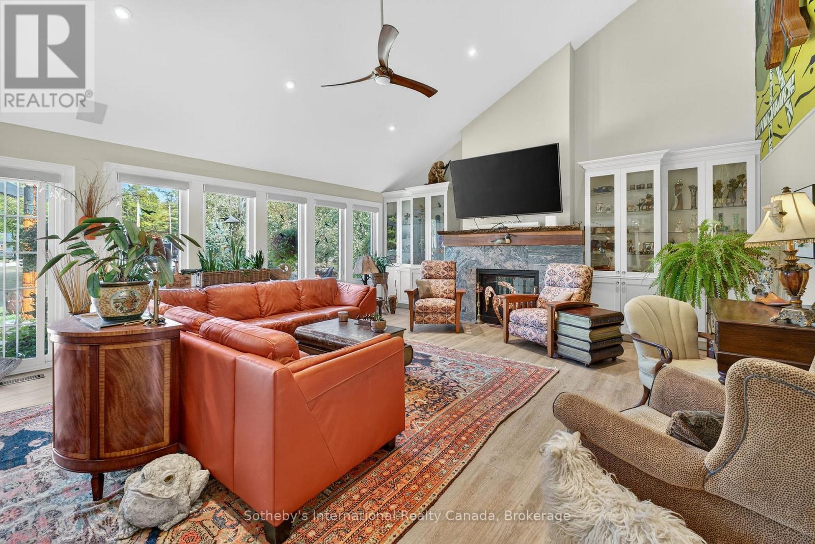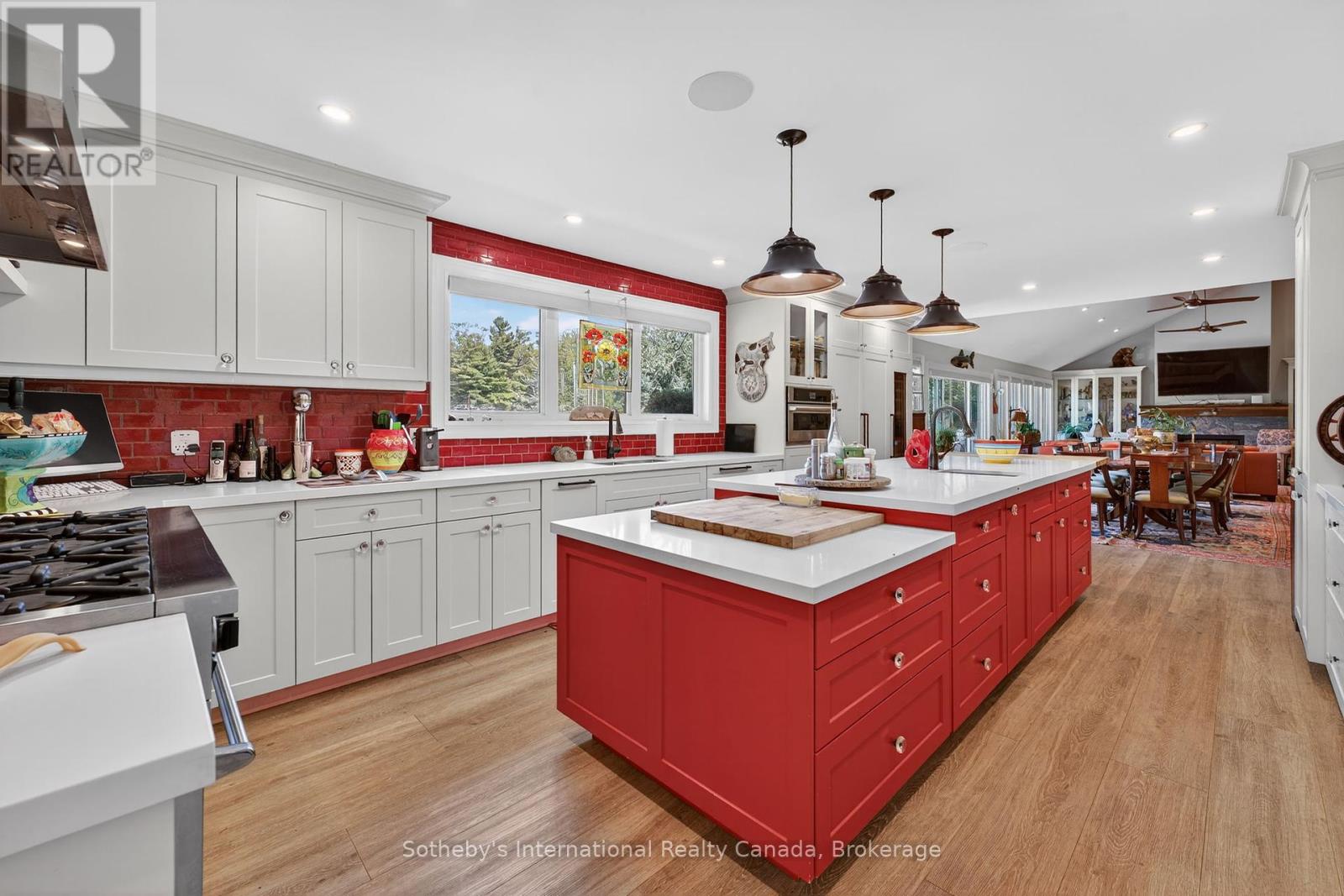 Muskoka Riverfront Masterpiece - Where History Meets Modern Luxury. Welcome to an extraordinary 4,000 sq. ft. bungalow where Muskoka history meets luxury. Set on 3.5 acres of flat, manicured land along the Muskoka River, this one-of-a-kind estate offers the perfect blend of historical character and upscale living all just minutes from downtown Bracebridge. Inside, the home features 5 spacious bedrooms, 3 luxurious bathrooms, and expansive living spaces designed for both relaxation and entertaining. A chefs kitchen is at the heart of the home, fully outfitted for gourmet cooking and gatherings, complemented by a formal dining area that seats 12.Step outside and immerse yourself in your own private resort experience: a fiberglass inground pool, commercial-grade poolside kitchen hut, outdoor hot tub, and a private sauna for ultimate relaxation. A 1-slip boathouse provides direct river access, with just a few minutes boat ride to the open waters of Lake Muskoka. For the car enthusiast or hobbyist, the property includes a 3-bay detached garage with mechanics lifts, plus an attached garage for added convenience. And as a final touch of history and character, a beautifully preserved 1886 barn stands proudly on the property a rare and meaningful piece of Muskoka's heritage. This is more than just a waterfront home; its a work of art, a sanctuary, and a true legacy property in the heart of Muskoka. (id:56991)