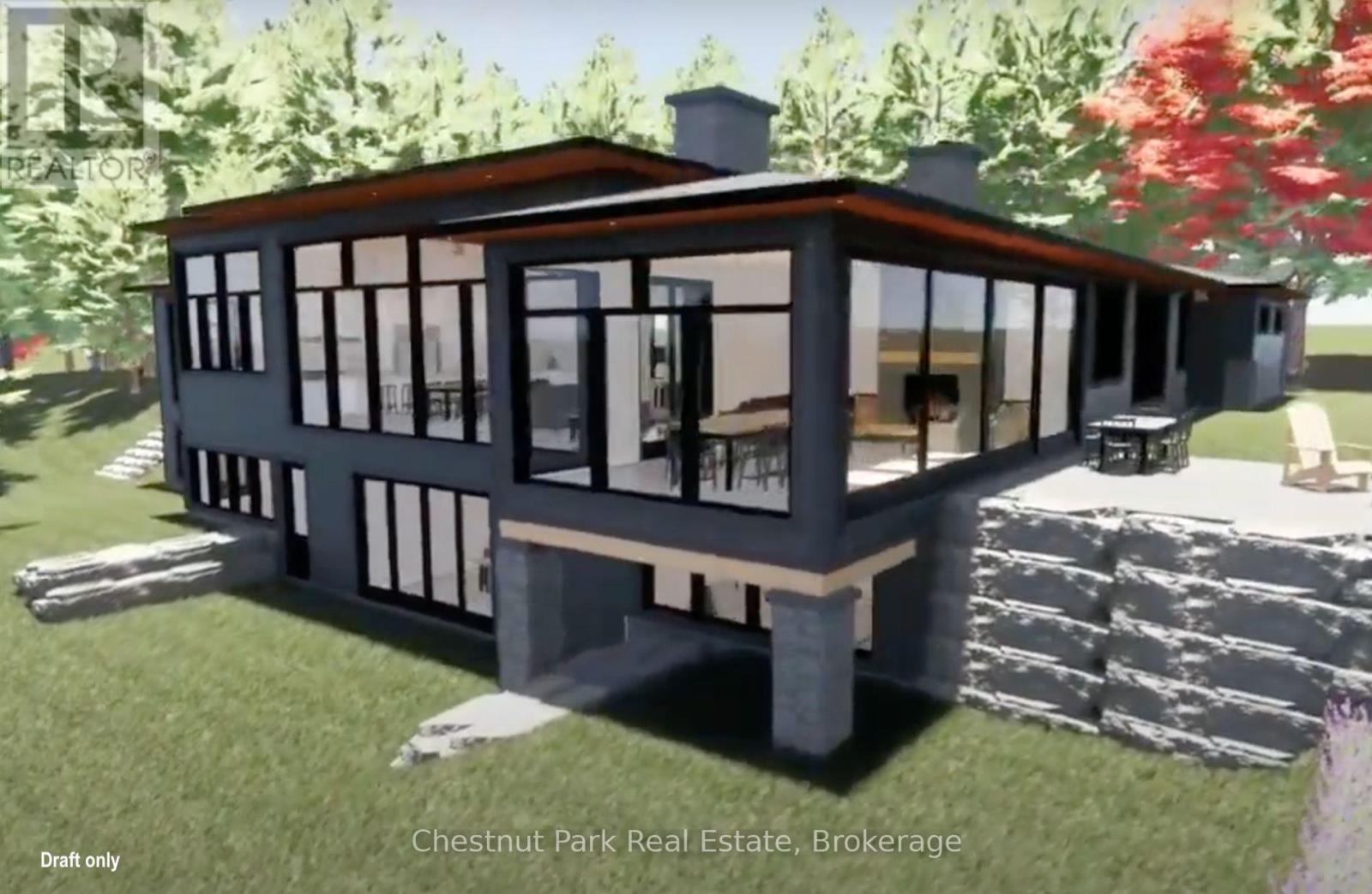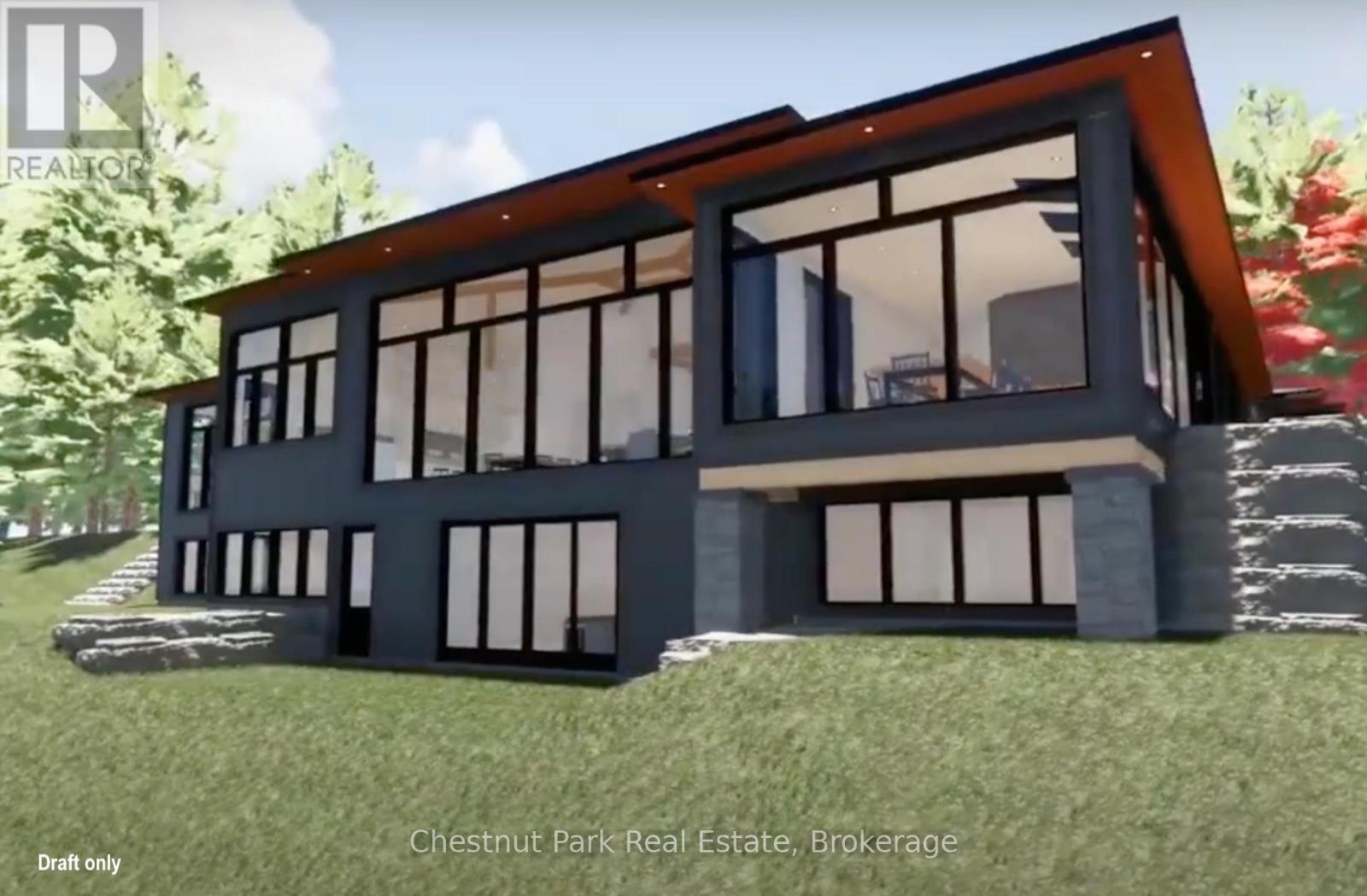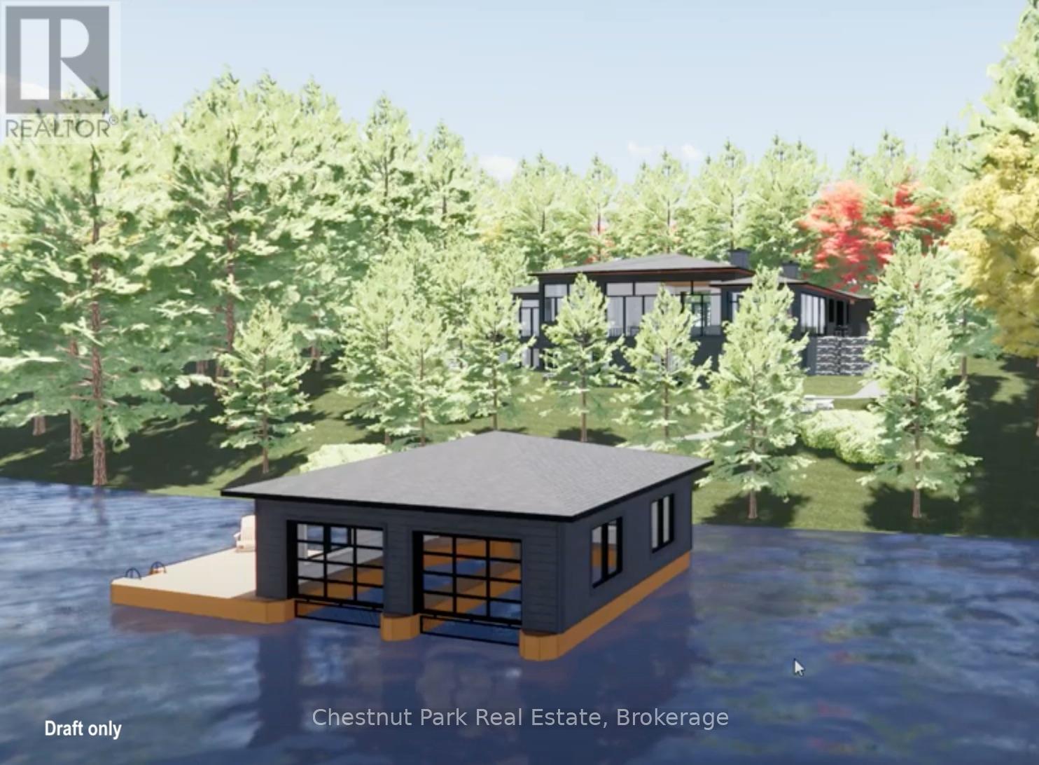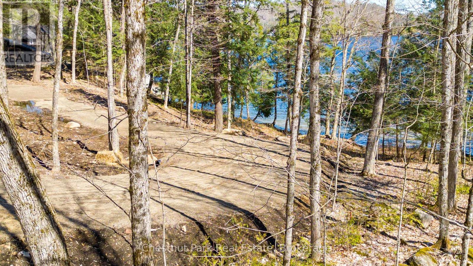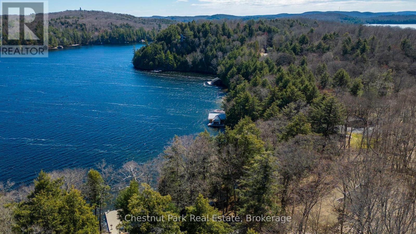 This is such a beautiful lot on the highly coveted South Portage Road on Lake of Bays - close to Toronto, Dwight and Huntsville. A golden opportunity awaits on the shores of Lake of Bays. Build modern with glass and steel or more traditional - it is a blank canvas. This rare property offers the chance to build your dream cottage and a two-slip boathouse on one of Muskoka's most prestigious lakes. With 200 feet of pristine frontage and 1.05 acres, the lot is gently sloping ideal for a walkout basement design with captivating lake views. The driveway is already installed, and a short stroll brings you to the waters edge where you will find excellent privacy, all-day sun, and breathtaking wide-open vistas. From your future dock, gaze down the lake toward Wee Island or paddle across for a quiet swim in this peaceful bay.The building envelope is set a comfortable 66 feet back from the shoreline (stakes in place for easy reference), allowing for minimal steps to the lake and a seamless indoor-outdoor lifestyle. Imagine waking to expansive lake views and evenings spent watching the sunshine from your deck. This location combines serenity with convenience set on a quiet, no-through road with year-round municipal maintenance, yet close to Muskoka's premier amenities: championship golf, downhill and cross-country skiing, hiking and biking trails, charming towns, and of course endless boating on the interconnected chain of Lake of Bays.This is truly a canvas for your Muskoka legacy. Conceptual renderings from a reputable local builder are available for inspiration - this style could be built here but no permits are currently in place. Shore Road Allowance is owned. Whether you envision a modern family retreat or a timeless cottage, this property provides the foundation for generations of memories in a setting of natural beauty and refined Muskoka living. Drawings, site plans, boathouse concepts (drafts - available request only). (id:56991)
