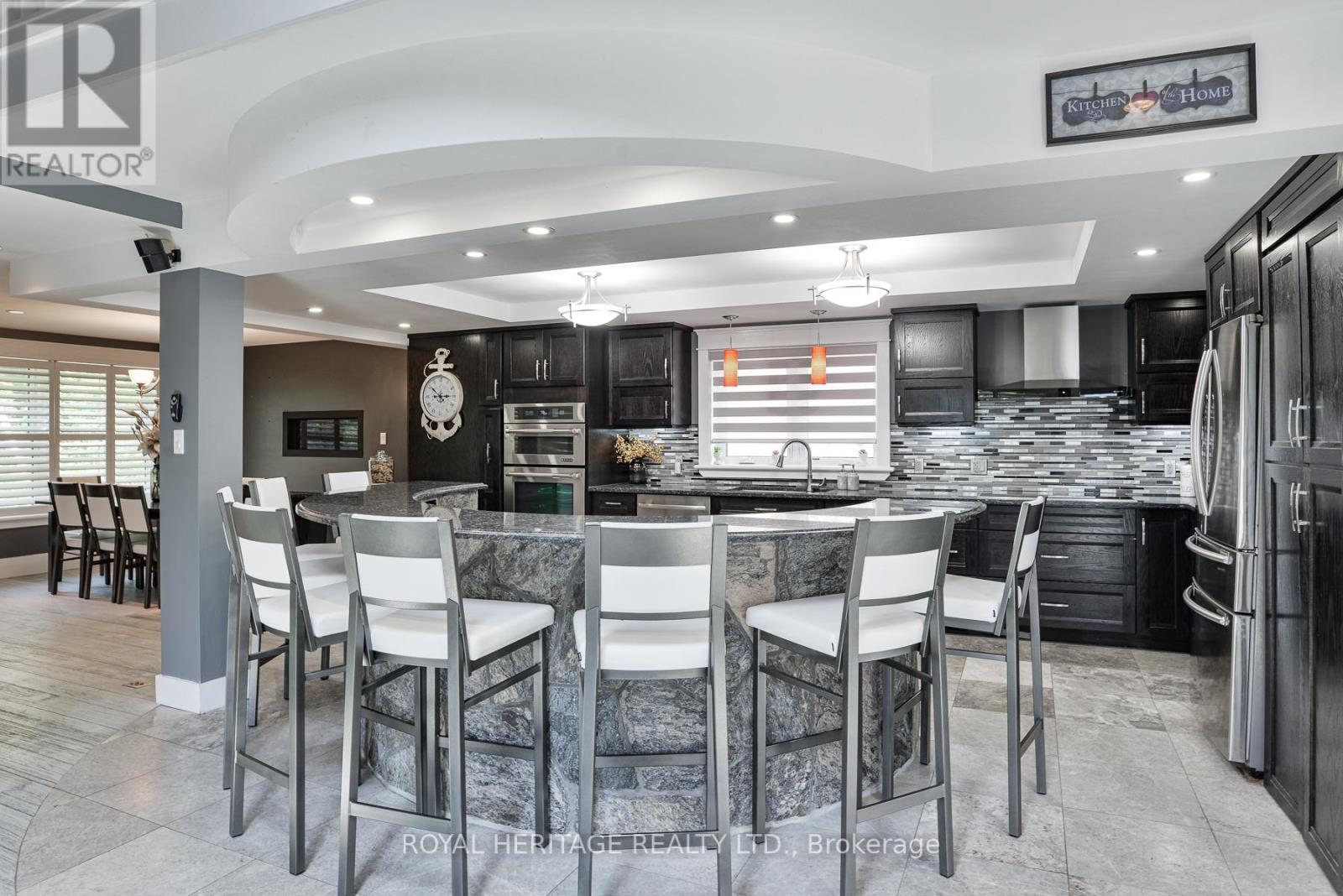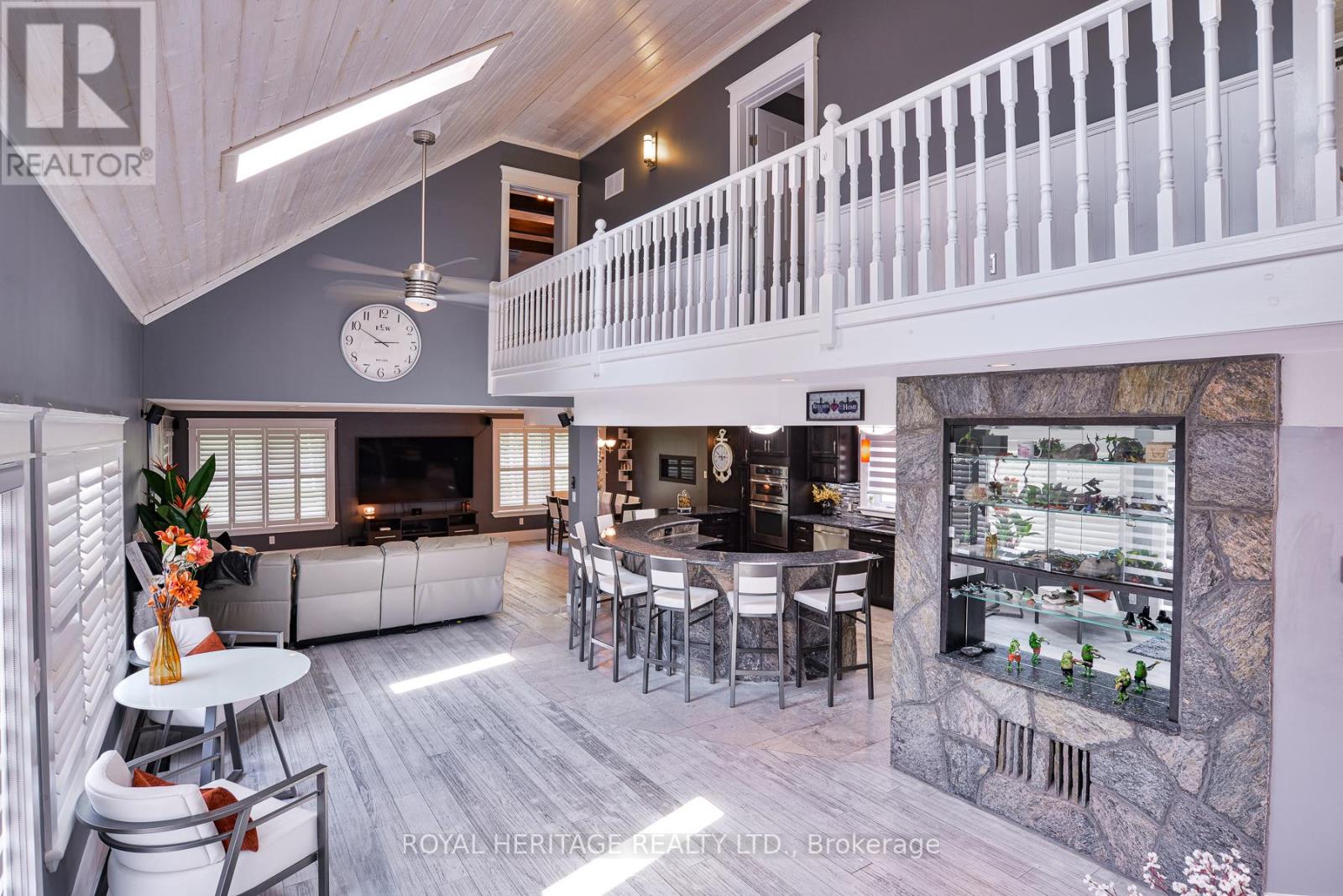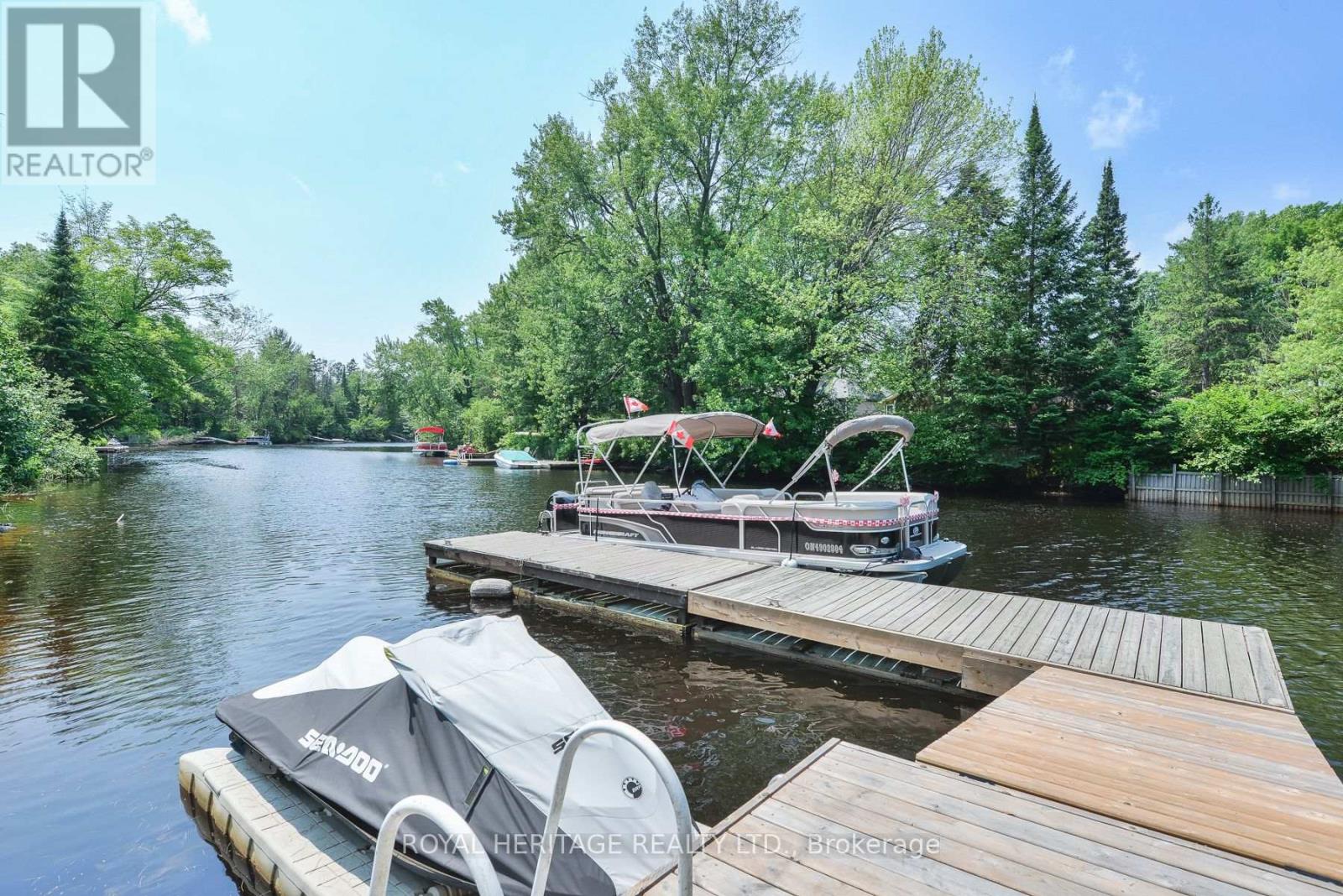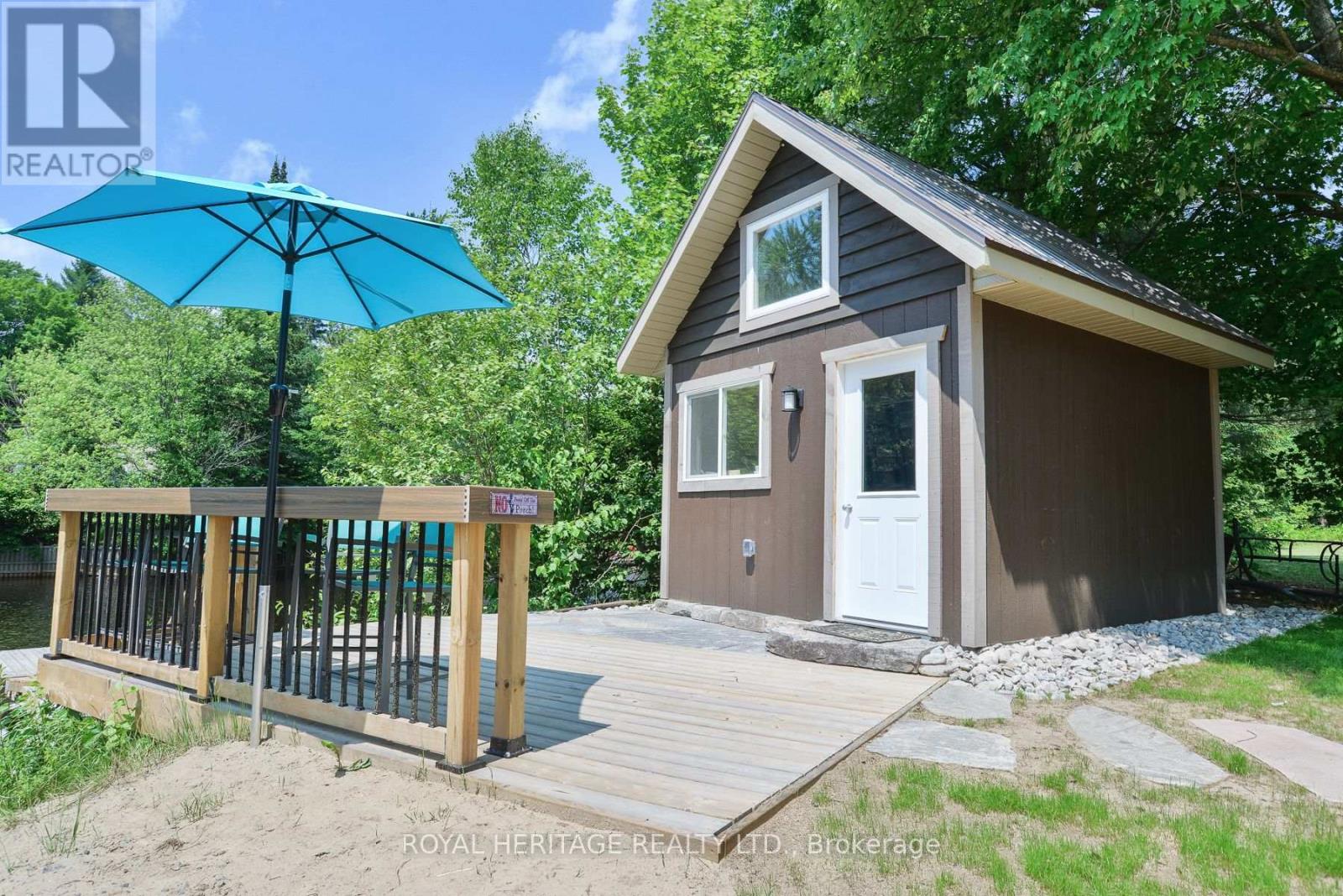 Spectacular, unique, unforgettable. These are just a few words to describe this magical, one of a kind property. Formerly featured in a Muskoka magazine, the home and property offer plenty of space for entertaining, a growing family or simply reconnecting with nature and wildlife. Design elements, including local Muskoka granite picked and split by the owners hand and built into the feature wall and kitchen island, all help to create a space that welcomes you from its front gates to its front door and beyond. Soaring vaulted ceilings and architectural beams in the main living area and primary bedroom, as well as a thoughtfully redesigned interior created during the building of a significant addition completed in 2016, provided the owner and designer an opportunity to create a spacious, interesting yet functional space. Breathtaking views from numerous balconies, windows and patios overlook the grounds, gardens, 30ft waterfall and approx. 500 ft of Mother Natures perfect river front. The in-ground salt water pool, tiki bar, infrared sauna, built in hot tub, large gym, theatre room, ball court, sandy beach with gentle water entry for swimming, dock for boating, waters edge bunkie (sleeping 4 comfortably), the huge 5 car garage, large RV shed with oil pit and even the bonfire lookout on top of the hill of your 11 acre property will afford you the last ray of sunshine with the setting sun to complete your daily living experience. Should you ever wish to leave your property, you are just a few short minutes to the heart of Huntsville by car and a short boat ride along the river to Lake Vernon and further access to Fairy, Mary and Peninsula Lakes. Pictures may speak a thousand words but this property has thousands more to share with you in person. Private showings only. (id:56991)