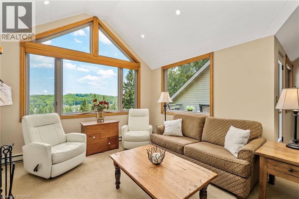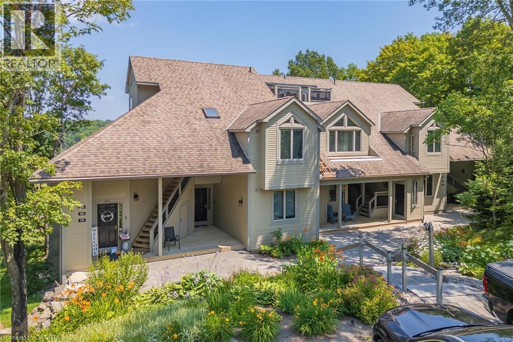 Welcome to 131 Grandview Hilltop Drive, Unit 1 — a rare, fully furnished end-unit bungaloft offering 1,430 sq ft of thoughtfully designed living space. This bright 2-bed, 2-bath condo with loft blends comfort, versatility, and investment potential. Wrapped in panoramic windows, the home is filled with natural light and offers maintenance-free living in a highly desirable setting. One of the few units in the area approved for Airbnb and Vrbo, this property presents exceptional rental opportunities. With two separate entrances, it can function as two independent suites. Live in the main unit while renting the self-contained one-bedroom, one-bath suite for added income, or enjoy the entire space for family and guests. The open-concept main living area features a cozy wood-burning fireplace and flows seamlessly into the dining area and well-appointed kitchen. Upstairs, a rarely offered loft provides generous space for guests or family, complete with a 3-piece bath. Step outside to your large private patio and take in serene, picture-perfect views while enjoying morning coffee or sunset dinners. Ideally located near Grandview Golf Club, Deerhurst Highlands Golf Course & Resort, Hidden Valley Ski Resort, Limberlost Forest and Wildlife Reserve, Arrowhead Provincial Park, and the shops and restaurants of downtown Huntsville. With exterior maintenance fully managed, this property offers true lock-and-leave convenience. Whether you’re seeking a peaceful year-round retreat, a smart investment, or both, this exceptional condo truly checks every box. (id:56991)