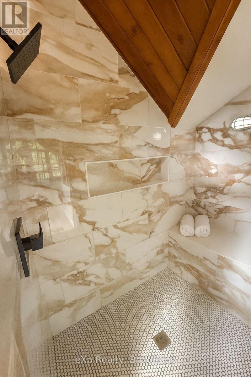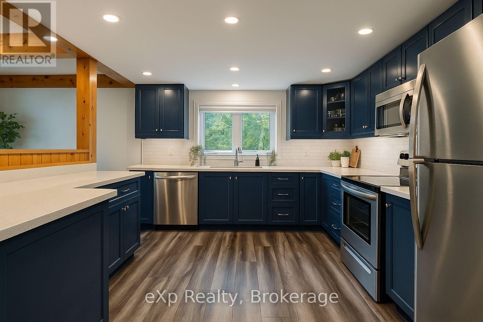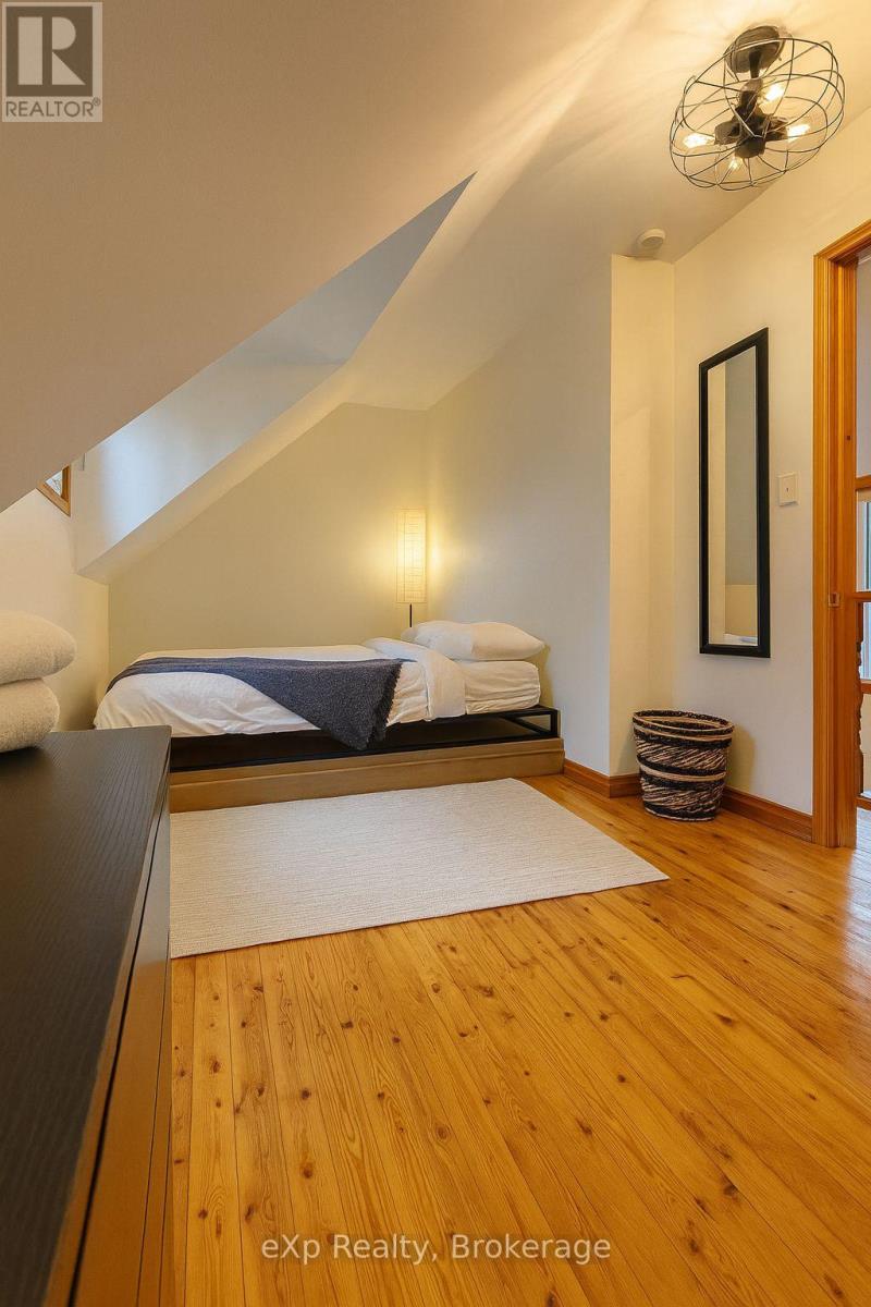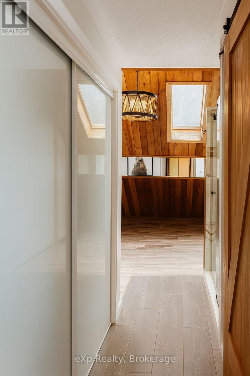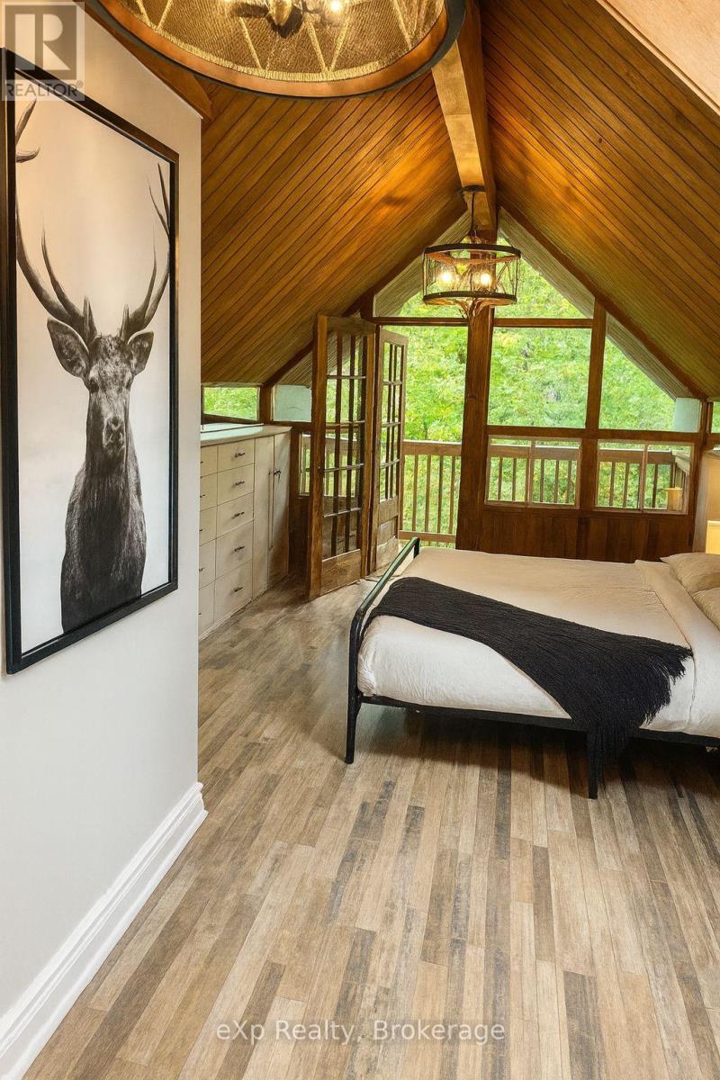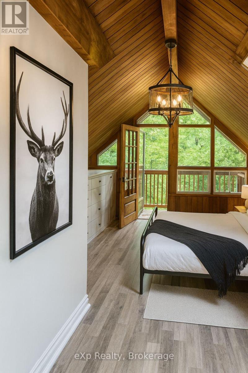 Welcome to 1382 Muskoka Road 169 N A Private Muskoka Retreat Just Minutes from Town. Set on nearly an acre of mature, forested land, this beautifully updated home offers over 2,100 sq ft of finished living space and delivers the perfect blend of modern convenience and natural serenity just a short drive to all of the amenities that Gravenhurst has to offer! Lake Muskoka and beaches are plentiful and Pine Lake is directly across the road. The main floor features an open-concept layout with a warm, rustic ambiance highlighted by wood ceilings, natural finishes, and walkouts to expansive front and back decks. A large bedroom on this level boasts its own vaulted ceiling and direct access to a nearby full bathroom perfect for guests or main-floor living. Upstairs, the primary suite is a true escape with its own vaulted ceilings, private balcony, walk-in closet, and a beautifully renovated ensuite bathroom (2021). Two additional bedrooms share a connected Jack & Jill bathroom, making this layout ideal for families or vacation guests. Upgrades & Improvements (Newest to Oldest):New siding, soffits, fascia & eaves (2025)New rear deck (2022)New front deck (2022)New roof shingles (2022)Upgraded electrical panel to 200 amp (2021)Security camera system installed (2021)Fully renovated ensuite bathroom (2021)Other features include central air conditioning, UV water filtration, rented propane furnace, hot water tank, and propane tanks. A detached two-car garage has been converted into a large storage building, perfect for toys, tools, or seasonal equipment. Located on a year-round municipally maintained road, this property offers unbeatable access to area lakes, trails, and amenities while still feeling like a peaceful Muskoka getaway. (id:56991)