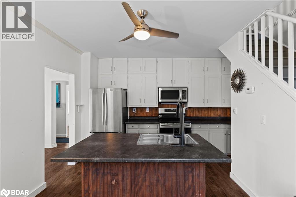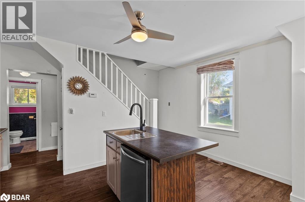 Charming 1900 sq ft, 1.5-storey home in beautiful Burk's Falls. This 3-bed, 1.5-bath home sits on a level 66 x 132 in-town lot with an attached garagejust a short walk to shops, services, and downtown. Main-floor living is a breeze with a generous primary bedroom, 3-pc bath and laundry, plus a bright kitchen with island, dining room and a sunroom that opens to the covered porch. Recent improvements include newer HVAC (approx. 4 yrs), new water heater and waterline, basement walls waterproofed & spray-foamed, crawl space poly-lined (U/V light and ventilation system for moisture control), new sunroom flooring and backyard upgrades with patio stones and raised planters. Comfortable as is, with opportunities to update over time. Bring your design ideas and make it your own. Fibre-optic internet, 200-amp service, efficient natural gas heat and municipal water/sewer complete the package. (id:56991)