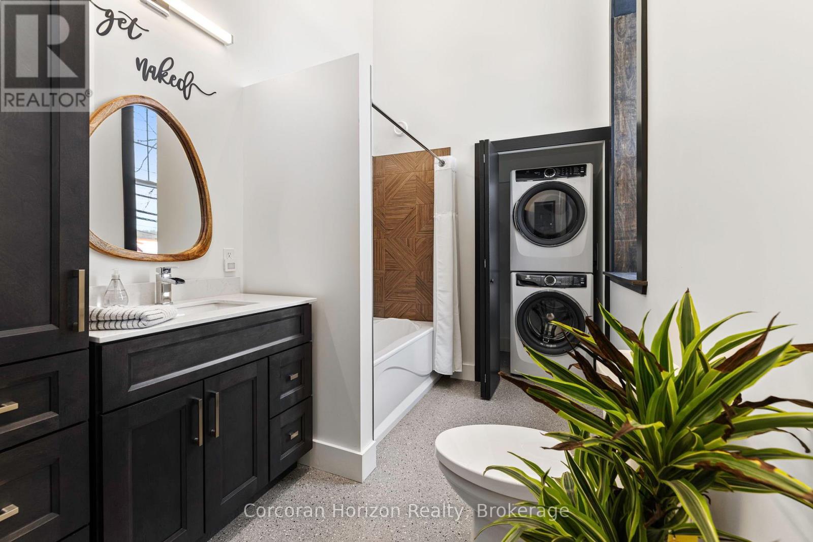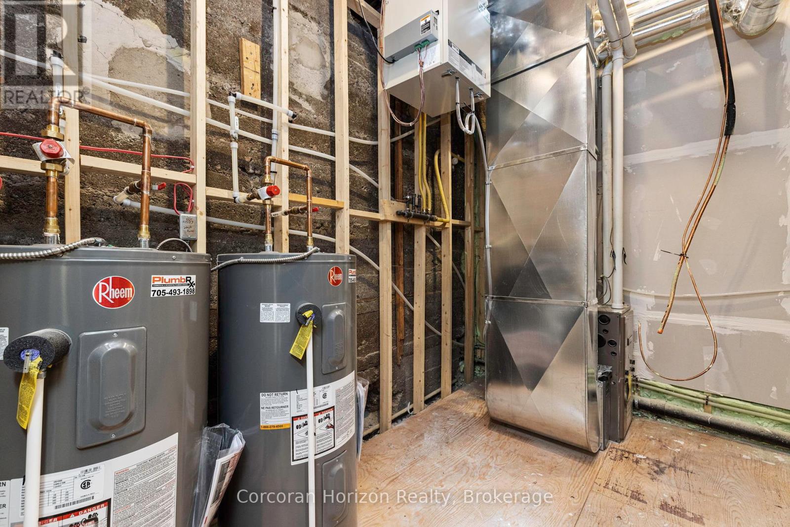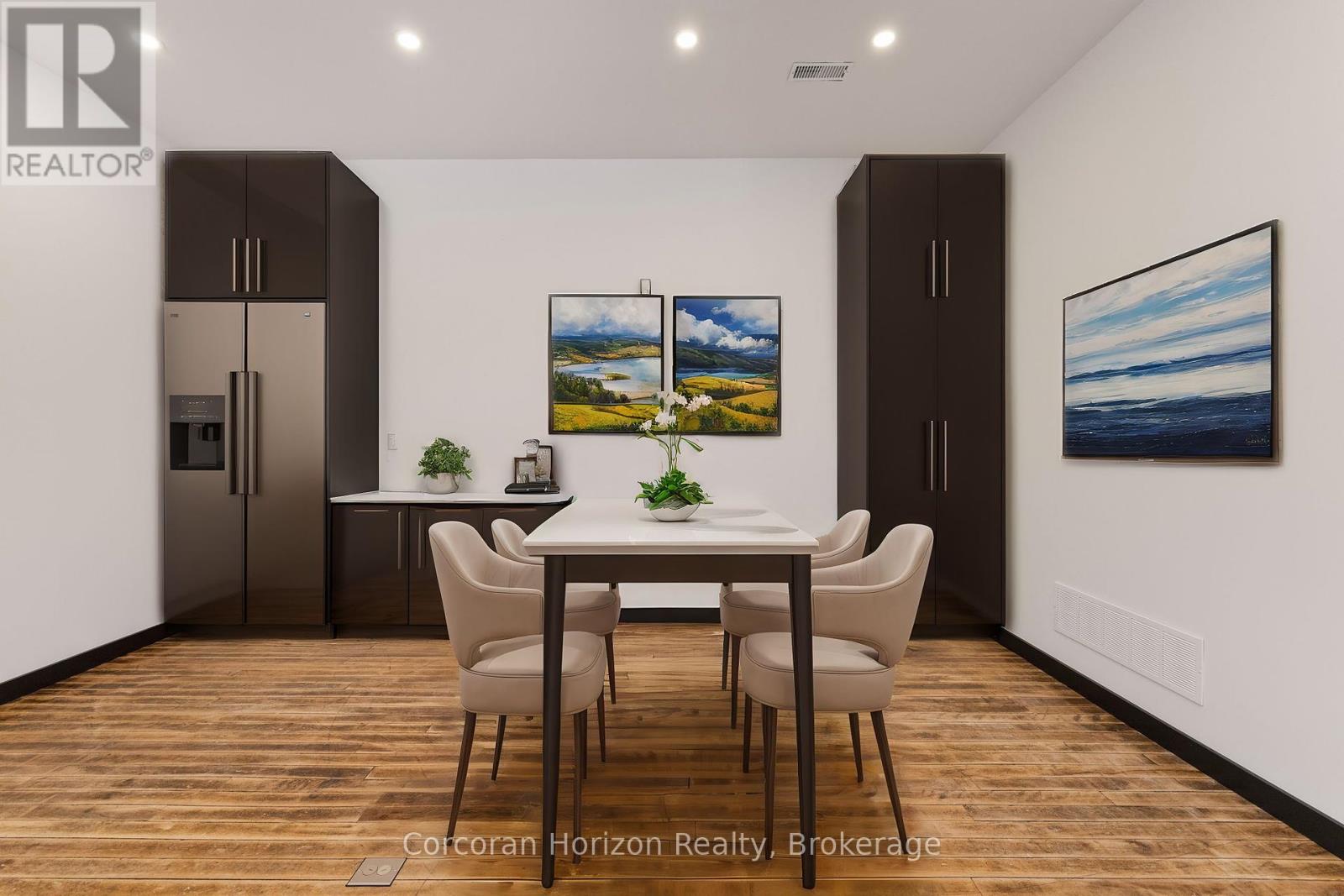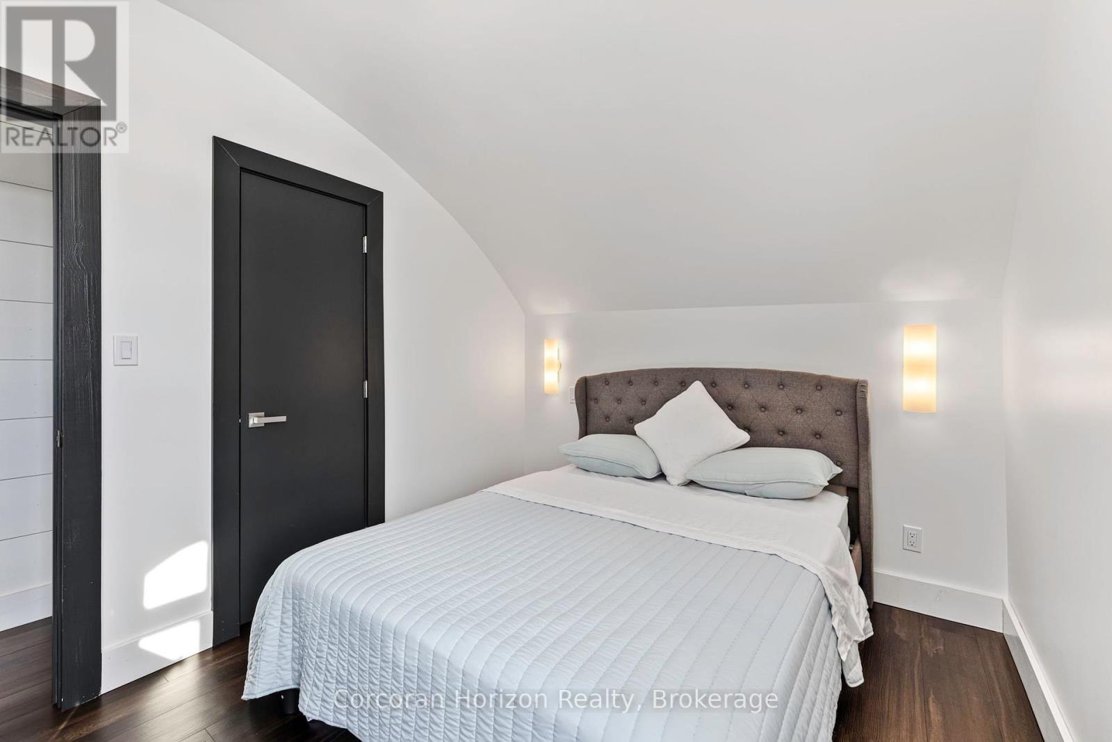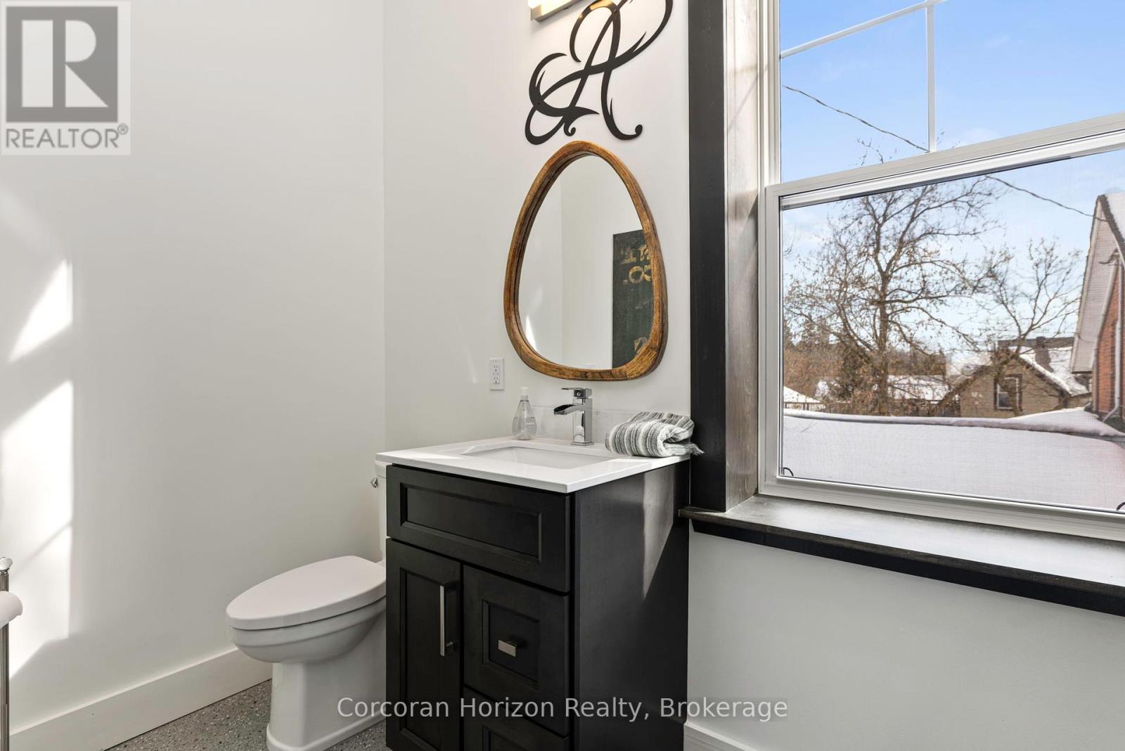 Step into a one-of-a-kind home that seamlessly blends historic charm with contemporary elegance. Originally built in 1886, this meticulously restored church has been transformed from the studs out into a breathtaking home, rich with architectural details that honour its past while embracing modern luxury and design. As you enter the foyer, reclaimed wood from the original church floors sets a warm, welcoming tone. An elegant staircase leads you to an open-concept living space across the second level. Here you will find an expansive living room with soaring 17.5ft barrel vaulted ceilings and an electric fireplace, creating an atmosphere of grandeur and comfort. The sophisticated, dark-toned kitchen is a chefs dream, featuring premium appliances, floor-to-ceiling cabinetry and a custom-built ladder. Thoughtfully designed, the second level features the primary bedroom, complete with a walk-in closet lined with cedar planks, alongside three stylish bathrooms. On the third level, two large bedrooms bathed in natural light provide serene retreats. Meanwhile, the first level offers a wealth of possibilities, additional living space, two bedrooms, ample storage, and a 4-piece bathroom. A roughed-in kitchen adds potential for a separate suite, multigenerational living, or even the possibility of conversion into a duplex. This home is a treasure trove of unique details, from stained glass transformed into window art within the original arch frames to Mennonite-crafted shiplap accents that add warmth and character. The exterior stone and brick have been professionally restored, while a second entrance at the rear enhances both its beauty and functionality. Beyond its timeless charm, this home offers complete modern convenience--all plumbing, HVAC, and electrical systems have been entirely replaced, ensuring efficiency & peace of mind for years to come. Experience the timeless beauty of this property, where craftsmanship, history, & modern elegance converge in perfect harmony. (id:56991)