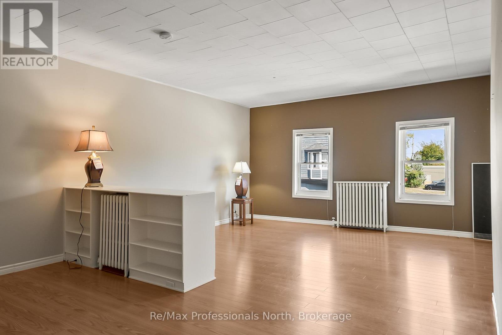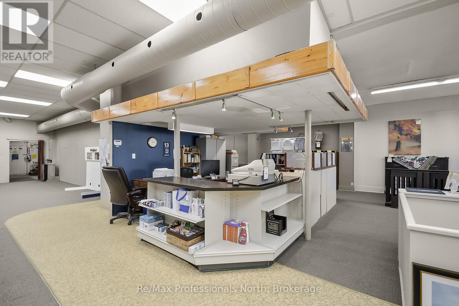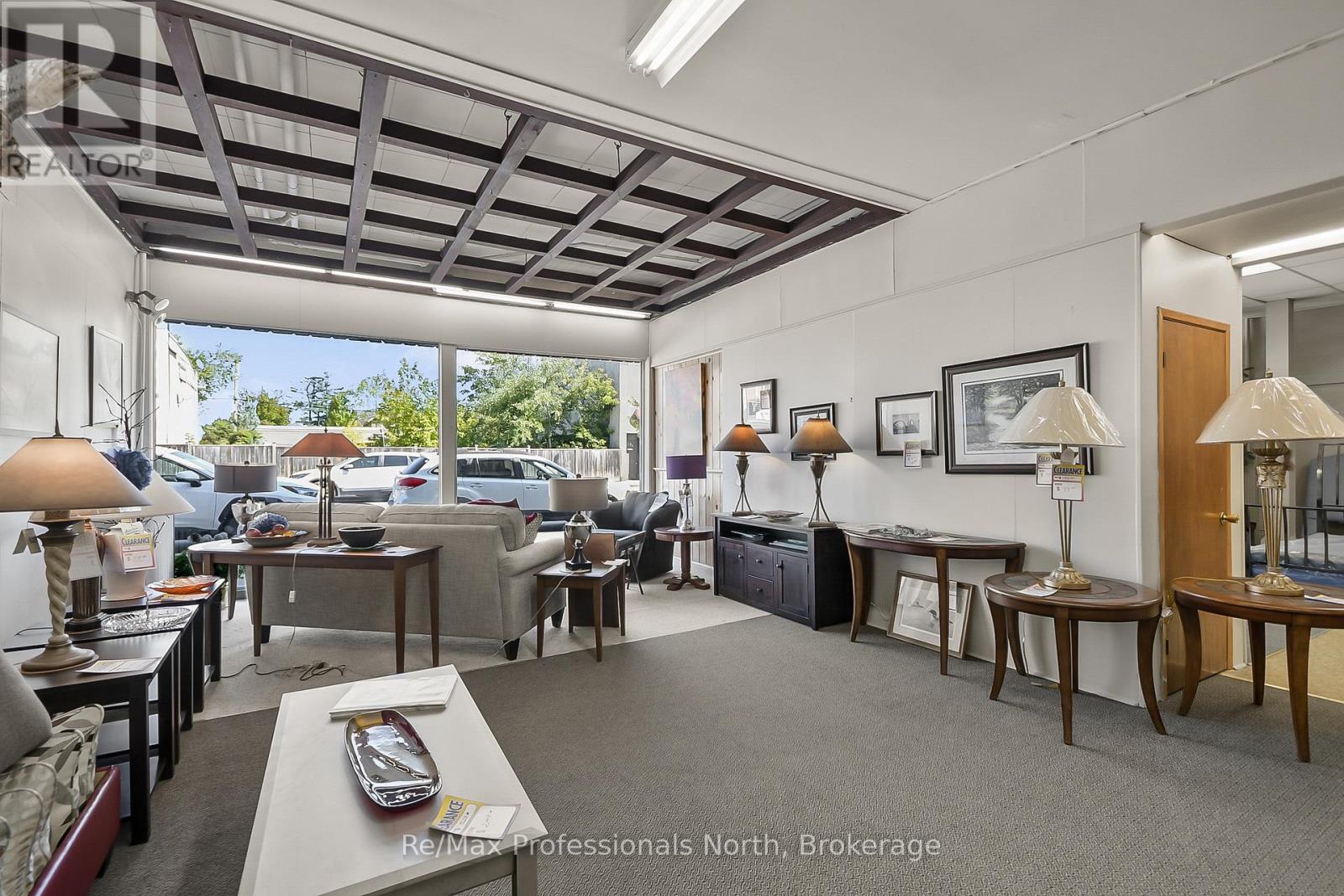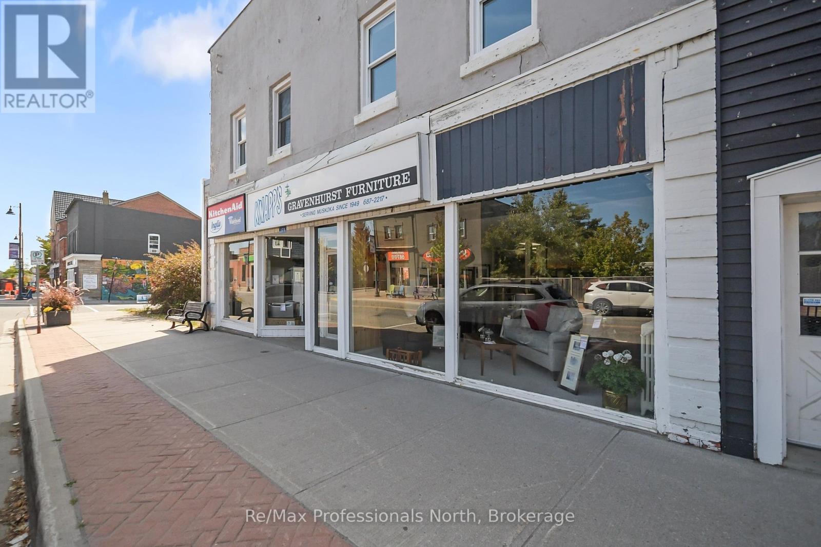 Rare Downtown Gravenhurst Investment & Development Opportunity!!! A true once-in-two-generation offering, this 9,295 sq. ft. commercial/residential building occupies a prime location on the vibrant main street of Gravenhurst. Owned and operated by the same successful furniture and appliance business for an extraordinary 76 years, this property now awaits its next chapter. The Retail Space on two levels comprising 7,169 sq. ft. (3,938 sq. ft. main floor + 3,231 sq. ft. lower level). The Residential Space: has two well-kept apartments totaling 2,126 sq. ft., each with its own kitchen, Bathroom and Hydro service. South Apt. has approx. 1000sqft with 2 beds, 1 bath and in kitchen laundry while North Apt. has approx. 1200sqft with 1 bed + den, 1 bath and a large living/dining room. The efficient gas-fired boiler heating system; 200 AMP electrical service; on municipal water and sewer. 42 feet store front with large display windows ideal for showcasing retail. At rear is a cover loading dock, warehouse storage area, and utility rooms. The interior retail space is open, bright, with 9' ceilings and ready for your vision whether you continue retail operations, create a mixed-use hub, or redevelop for modern commercial and residential use with C1 Commercial Core Zoning. The apartments above are in good condition, offering immediate rental income or on-site living for an owner/operator. This is a rare find in the heart of Gravenhurst the gateway to Muskoka, surrounded by year-round tourism and a growing local community. Seize the opportunity to own a landmark property with proven longevity and unlimited potential. (id:56991)