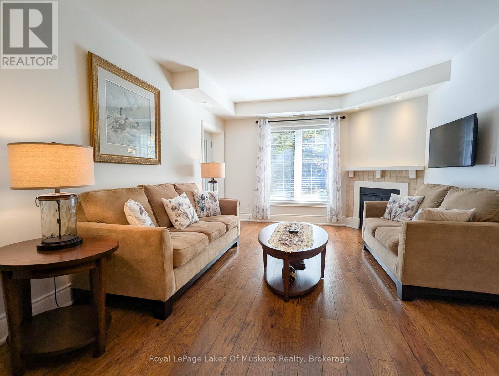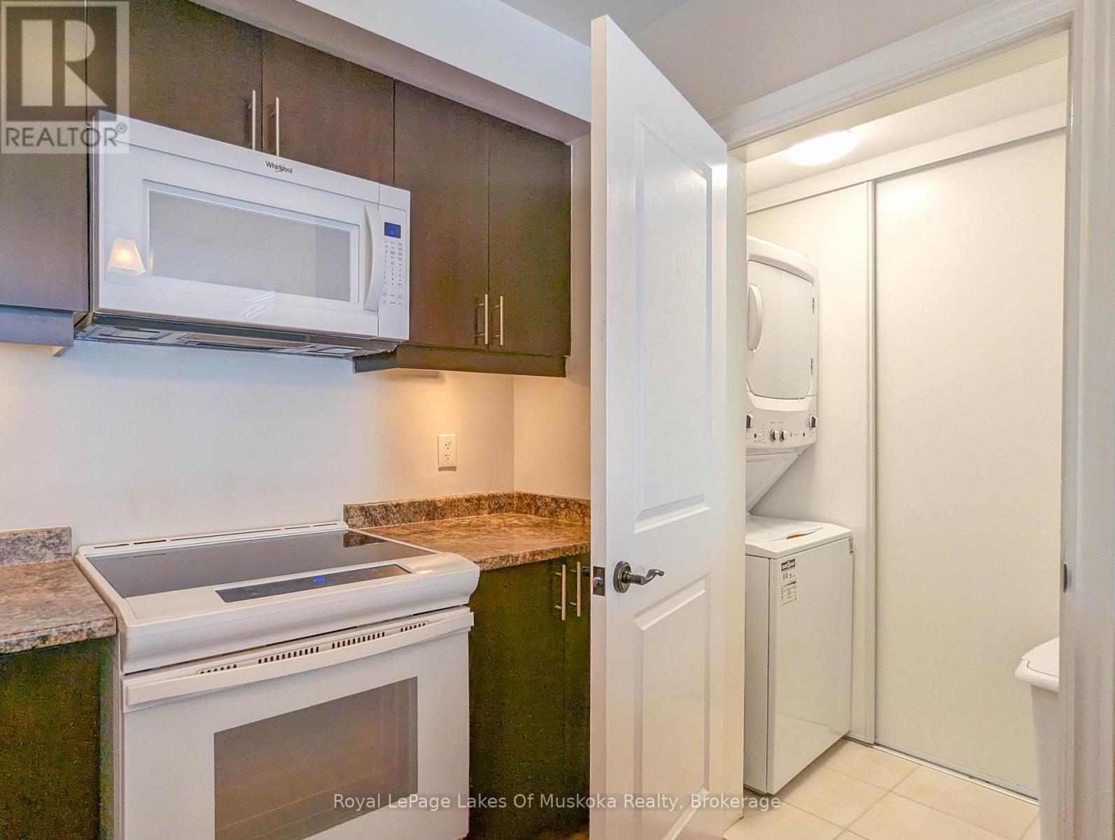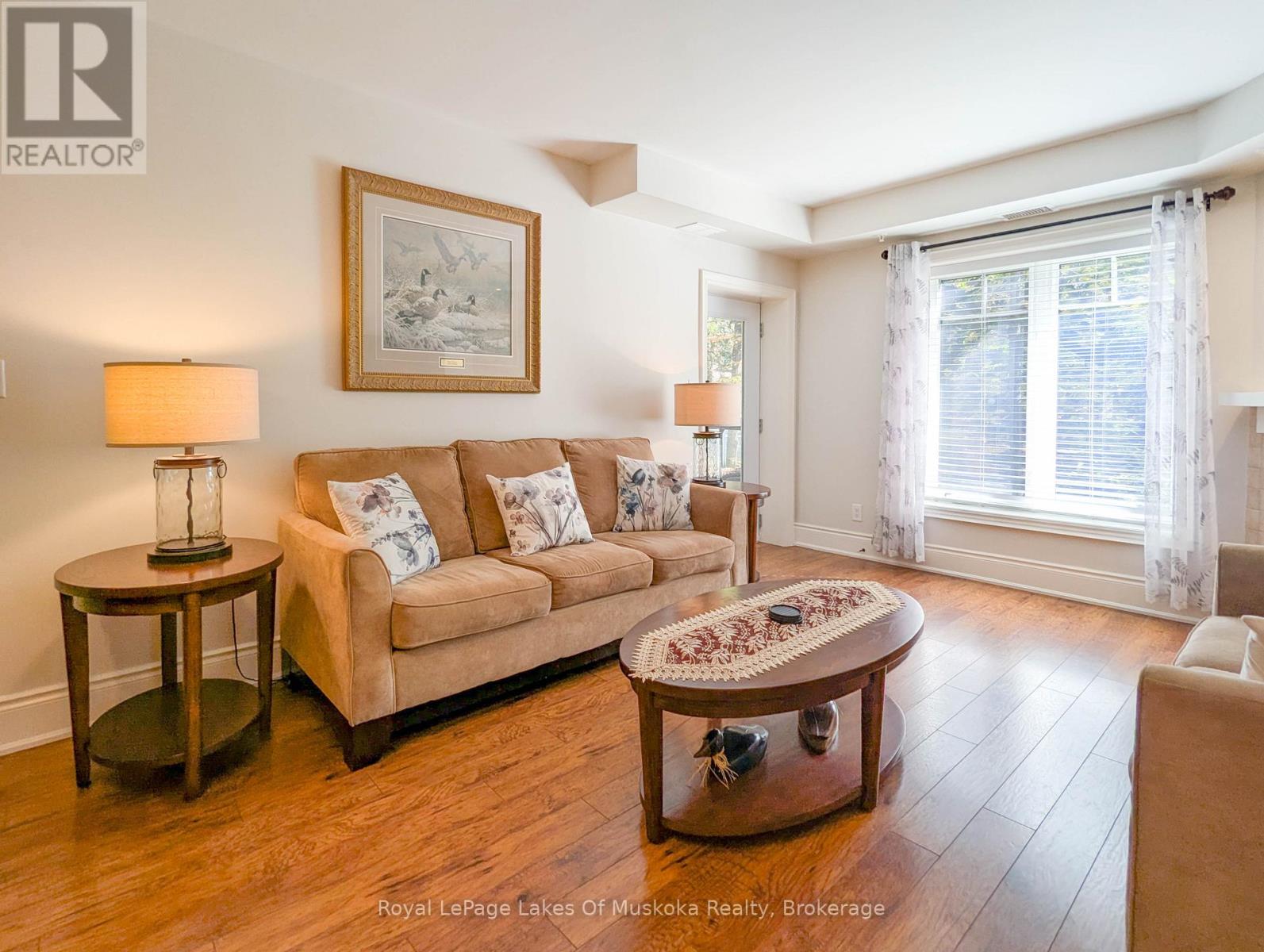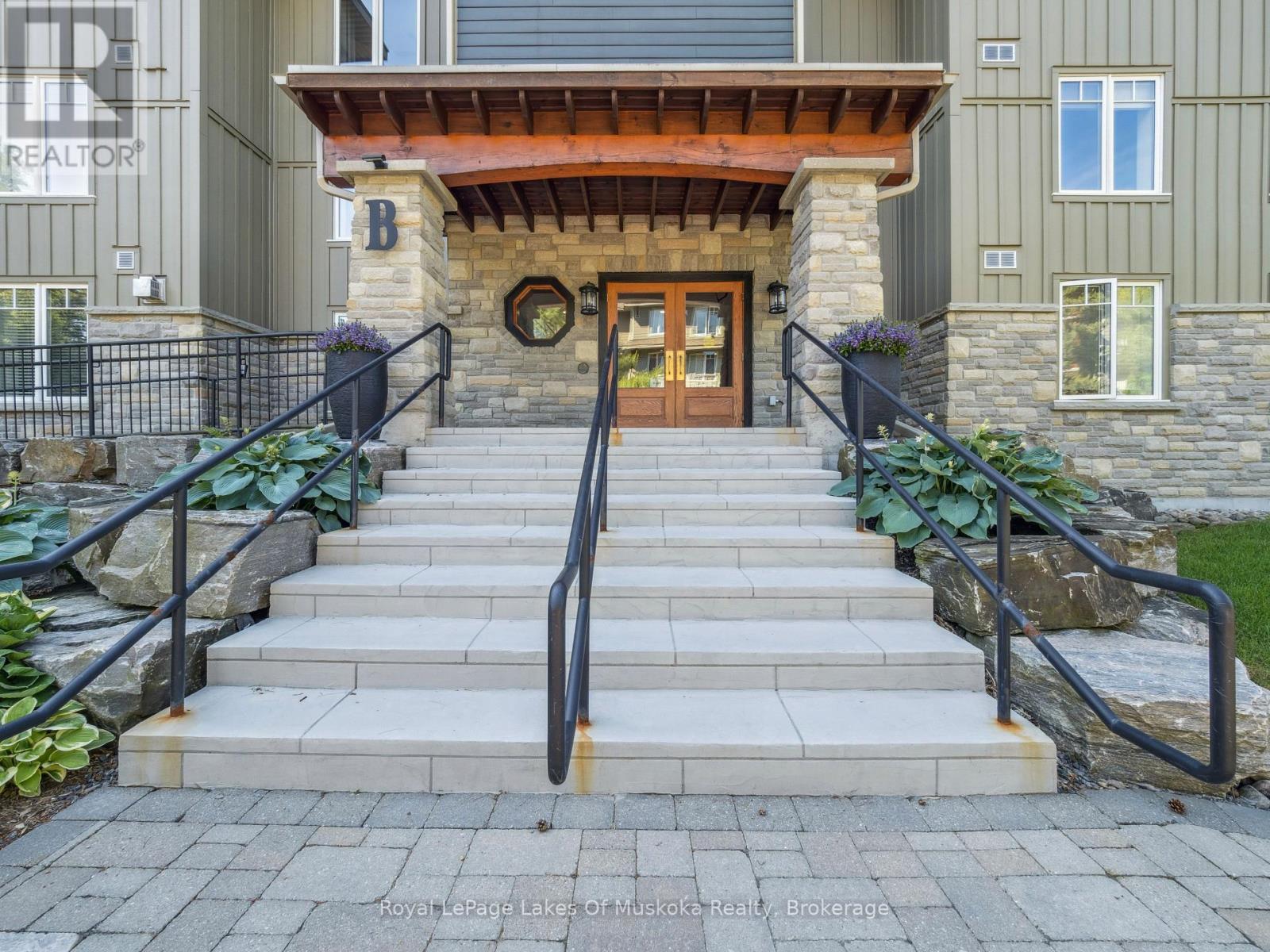 This two-bedroom, two-bathroom turn-key condo in Bracebridge offers 1035 sq ft of living space, including a private balcony. The open-concept living area with higher ceilings features a tidy kitchen with a large peninsula, breakfast bar, and under-cabinet lighting, which overlooks the dining and living rooms. The living room includes a picture window, a cozy fireplace, and a new retractable screen door that leads to a covered balcony fitted with a gas hookup for a BBQ. For added privacy, the unit has a split-bedroom layout. The primary bedroom, located on one side of the condo, includes a walk-in closet, a three-piece ensuite, and sliders to the balcony. The second bedroom is on the opposite side of the unit, adjacent to the main bathroom. This home is move-in ready and includes six appliances and in-suite laundry. Recent upgrades add to its appeal, including a fresh coat of paint throughout, new bedroom carpets, a new vanity and toilet in the ensuite, and a new washer and dryer. The condo provides forced-air gas heating and is built with ICF construction, which ensures low utility costs and a quiet environment. Residents can enjoy a variety of amenities, including a personal storage locker located in front of a private, heated underground parking space. The secure building features a welcoming lobby with an elevator and well-maintained grounds. The Granite Springs Clubhouse offers a gym, a library, a community kitchen, and a lounge with a fireplace and billiards table. The development backs onto a wooded area of the South Muskoka Curling & Golf Club and is conveniently close to local shops, entertainment, and recreation. Additionally, pets under 25 lbs are welcome. (id:56991)
