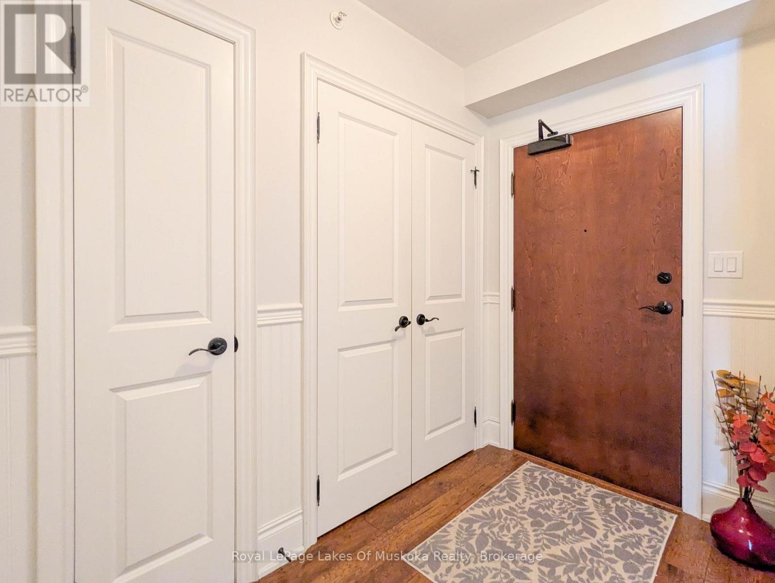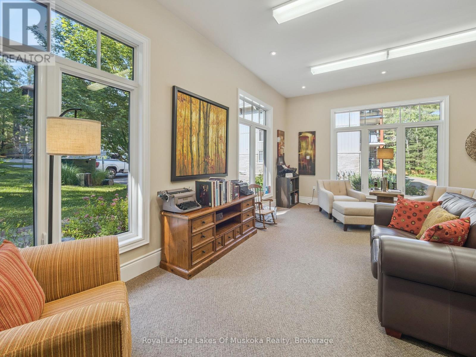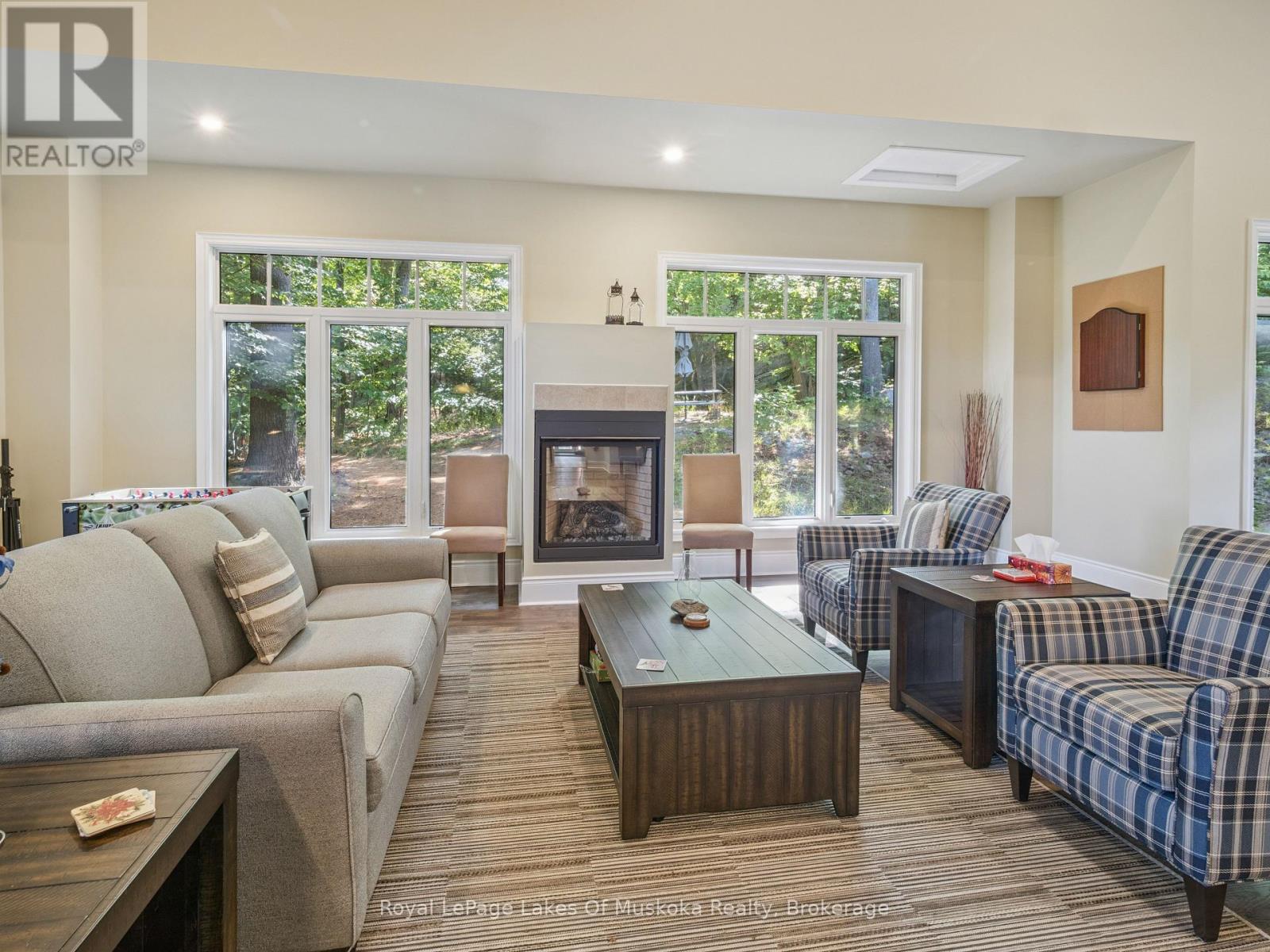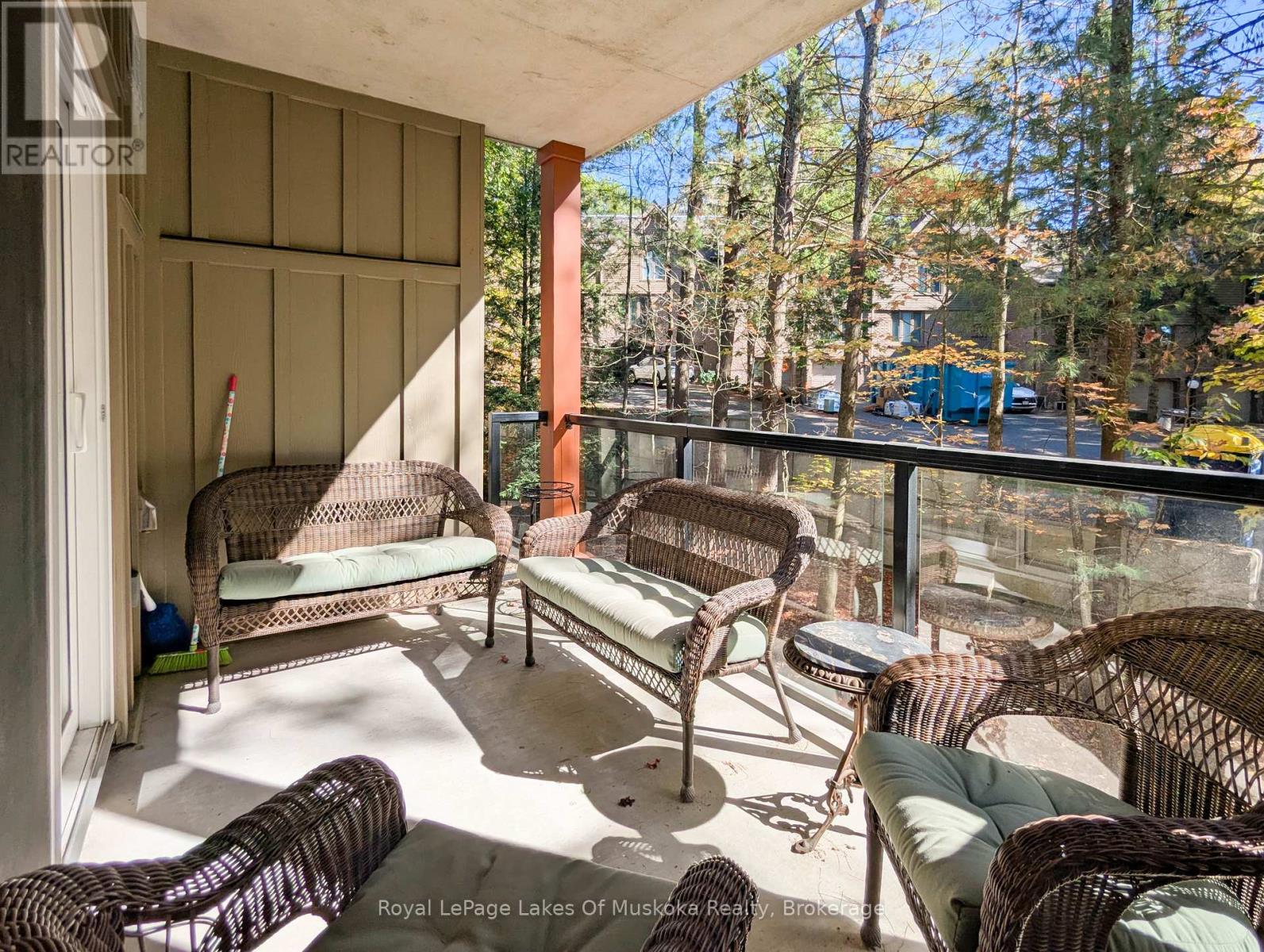This two-bedroom, two-bathroom turn-key condo in Bracebridge offers 1035 sq ft of living space, including a private balcony. The open-concept living area with higher ceilings features a tidy kitchen with a large peninsula, breakfast bar, and under-cabinet lighting, which overlooks the dining and living rooms. The living room includes a picture window, a cozy fireplace, and a new retractable screen door that leads to a covered balcony fitted with a gas hookup for a BBQ. For added privacy, the unit has a split-bedroom layout. The primary bedroom, located on one side of the condo, includes a walk-in closet, a three-piece ensuite, and sliders to the balcony. The second bedroom is on the opposite side of the unit, adjacent to the main bathroom. This home is move-in ready and includes six appliances and in-suite laundry. Recent upgrades add to its appeal, including a fresh coat of paint throughout, new bedroom carpets, a new vanity and toilet in the ensuite, and a new washer and dryer. The condo provides forced-air gas heating and is built with ICF construction, which ensures low utility costs and a quiet environment. Residents can enjoy a variety of amenities, including a personal storage locker located in front of a private, heated underground parking space. The secure building features a welcoming lobby with an elevator and well-maintained grounds. The Granite Springs Clubhouse offers a gym, a library, a community kitchen, and a lounge with a fireplace and billiards table. The development backs onto a wooded area of the South Muskoka Curling & Golf Club and is conveniently close to local shops, entertainment, and recreation. Additionally, pets under 25 lbs are welcome. (id:56991)