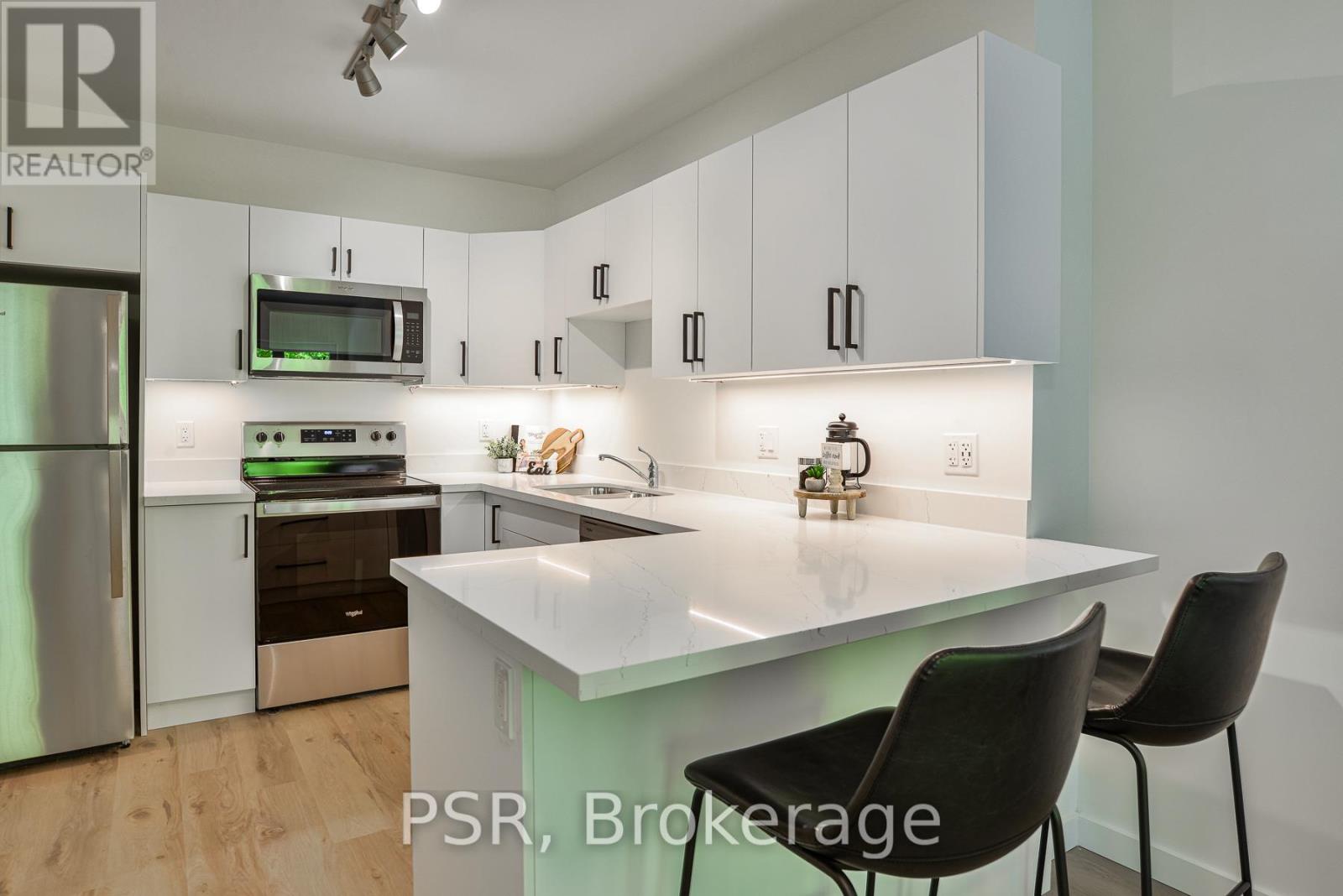 Welcome to The Timberline, a newly built luxury rental residence professionally managed by The Good Life Property Co., inviting you to truly live the good life. Perfectly situated just steps from downtown Huntsville, you are moments from charming cafés, boutique shops, renowned restaurants, scenic trails, waterfront River Mill Park, golf courses, and the community centre, with convenient access to Highway 400. Set on a quiet street and surrounded by nature, this thoughtfully designed building blendsmodern architecture with elevated finishes. Each suite showcases full-sized Whirlpool stainless steel appliances, quartz countertops, spacious kitchens, and expansive windows that frameserene forest views while offering exceptional privacy. Designed for those who value comfort, style, and convenience, The Timberline delivers contemporary living in one of Muskoka's mostdesirable communities. Get ready to live the good life. (id:56991)