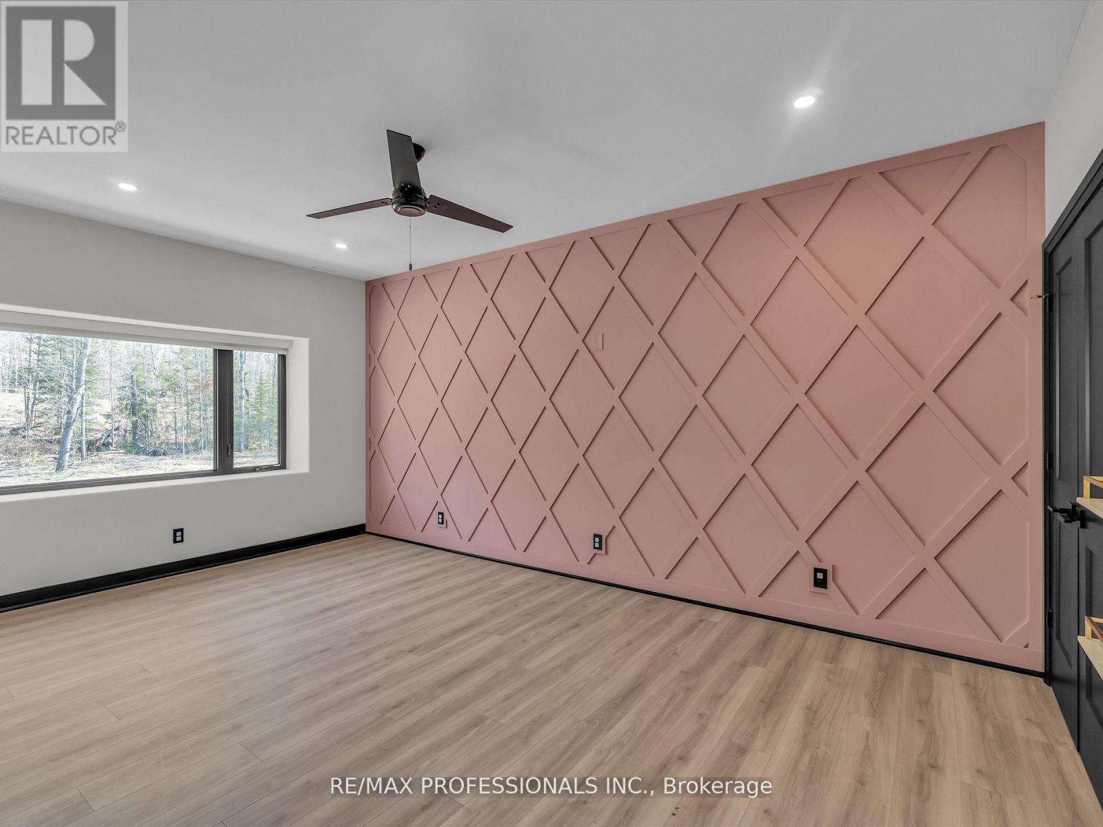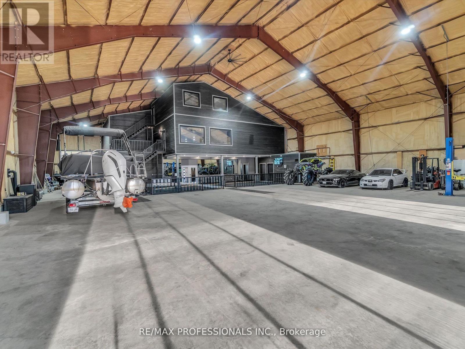 Discover Your Dream Muskoka Retreat! Welcome to this one-of-a-kind 5 bedroom, 5 bathroom 120ft x 80ft compound, nestled on over 8 acres of pristine land in Lake of Bays, perfectly located just minutes away from the charming town of Baysville, where you can easily dock your boat and enjoy Muskoka's second largest lake! This stunning property offers a unique blend of hobby farm potential and live/work opportunities in the heart of beautiful Muskoka, only a short drive from Bracebridge and Huntsville. Highlights include: A serene 0.5 acre pond fed by fresh natural springs, all framed by a breathtaking granite backdrop, 26Kw backup generator ensuring your comfort with auto on/off capability, cozy, energy-efficient in-floor heating powered by two 200k NTI boilers with state-of-the-art floor sensors and zoning controls, an impressive 9,000 Sq/ft Unilock patio featuring a built-in BBQ, perfect for entertaining! Inside the luxury continues with a gorgeous interior. Step inside to find a grand open-concept layout with towering 45-foot ceilings, complemented by an exquisite chefs kitchen equipped with triple ovens, a professional gas stove, and an oversized fridge/freezer - all anchored by a massive kitchen island! The primary suite offers a personal sanctuary with a fireplace, walk-in closet, and a spa-like bathroom featuring a freestanding tub overlooking natures beauty. Plus, there's a wheelchair accessible main floor bedroom/ensuite for convenience! Additional Features: 3 industrial garage doors for easy access to your workspace, a sophisticated camera system for peace of mind, and two cellular boosters ensuring crystal-clear LTE, Starlink internet with impressive speeds of 200 down and 50 up, keeping you connected while you enjoy your private trails and every outdoor adventure! Whether you are seeking a peaceful retreat or a dynamic living-work space, this property is tailored for both leisure and productivity! Don't miss the chance to experience this slice of paradise! (id:56991)