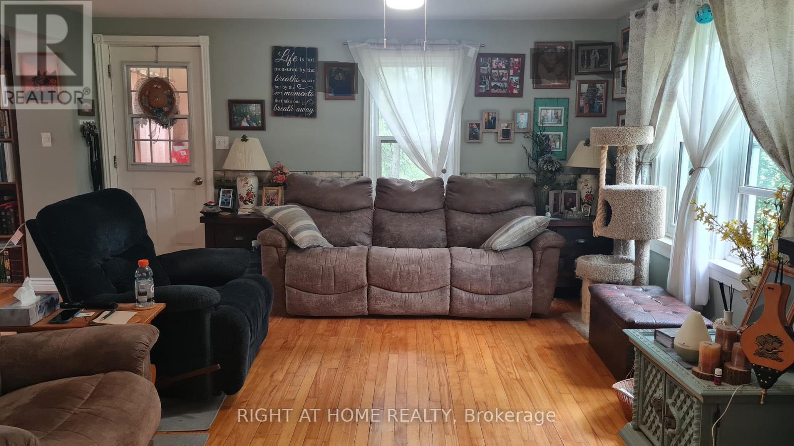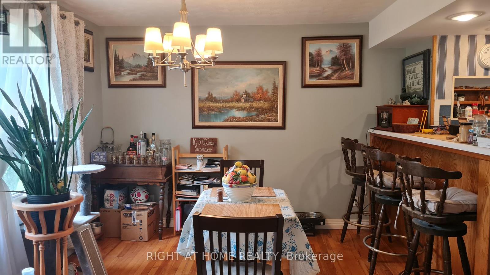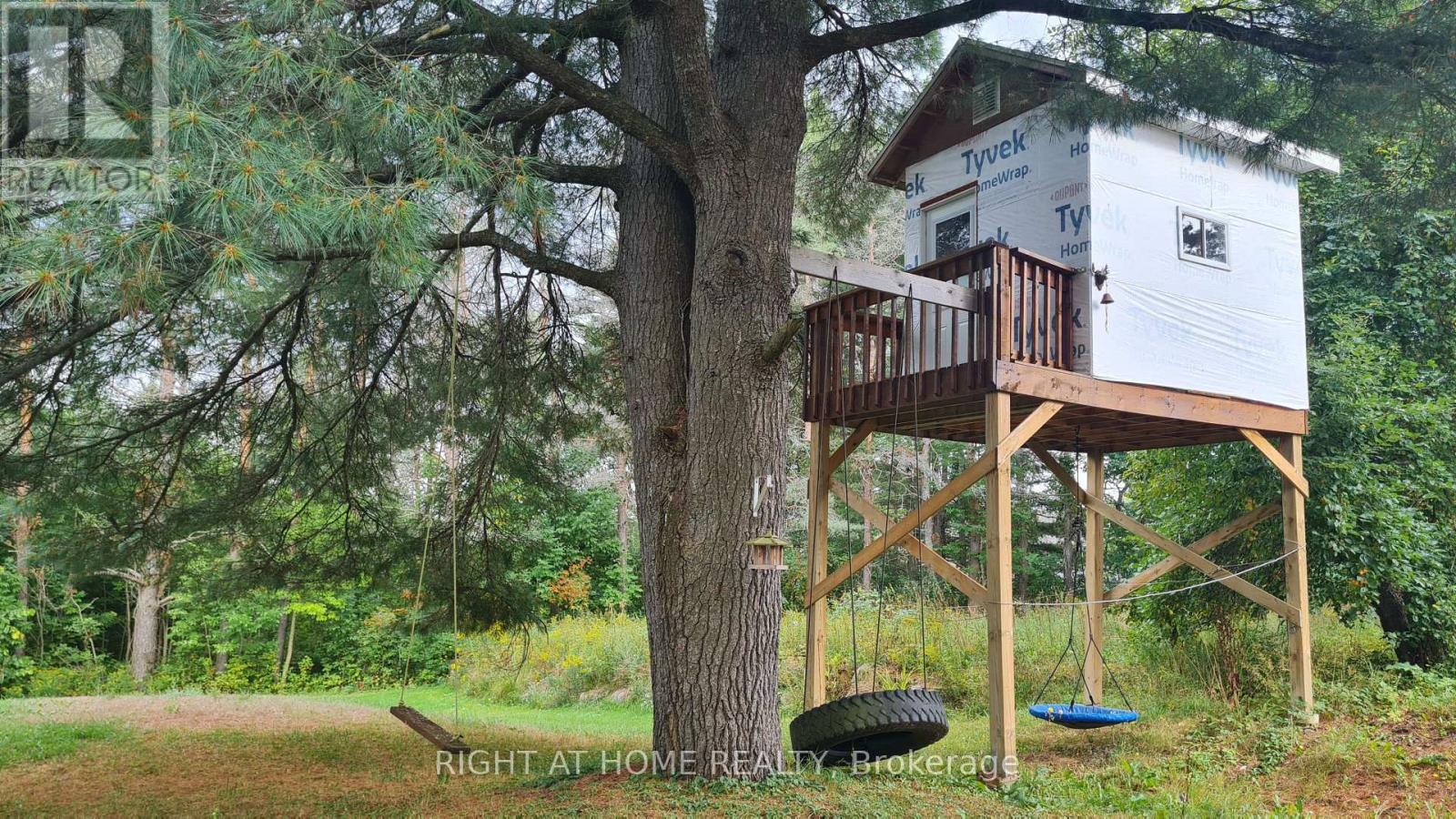 Welcome to this well-maintained detached 3 Bedroom, 1 Bath Home on HWY 60, Huntsville. Located just 10 minutes from downtown Huntsville, this house offers comfort, privacy, and character. The bright, open-concept living and dining area flows seamlessly into a cheerful kitchen with a walkout to the backyard and an island perfect for family gatherings. A versatile bonus room on the main floor provides the ideal space for a reading nook, playroom, or music room. The main level features hardwood flooring, soaring 10-ft ceilings, and plenty of natural light. Upstairs, you'll find three bedrooms, including a spacious primary suite with double closets and a sitting area, along with a 4-piece bathroom. The property also boasts a 24 x 26 detached double-car garage, a circular driveway with plenty of parking, an 8 x 10 insulated and wired treehouse, a fire pit, and beautifully landscaped gardens. All of this is within walking distance to public access at Peninsula Lake. Close to shops, hospital, school, parks and Echo Valley Nature & Bike trails. (id:56991)