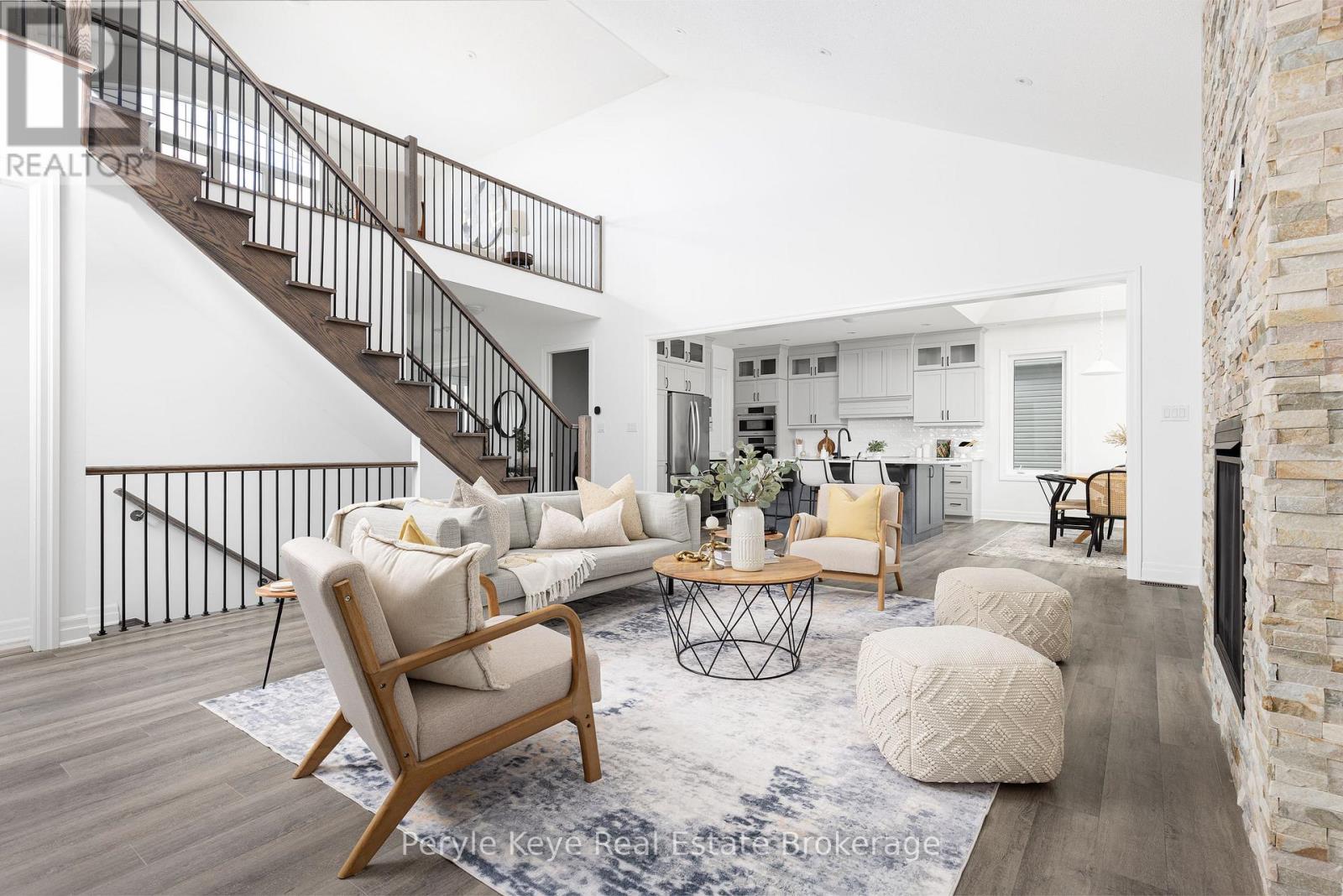 Framed with a forest view, elevated with upgrades, & set on one of White Pines most loved streets this rare walkout Maple Model delivers on every level. With over 2,600 sq ft of finished living space & a bright, unfinished walkout lower level, this 2024 bungaloft offers both immediate comfort & future potential. Enjoy the ease of true one-floor living, with the bonus of a lofted guest suite and a lower level complete with rough-in bath and plenty of room to expand. Inside, more than $100,000 in carefully selected upgrades set this home apart. The top-tier kitchen features full-height cabinetry, interior cabinet lighting, quartz countertops, a spacious walk-in pantry, & an entertainers dream: a statement-making oversized island that anchors the entire space. The open-concept layout flows into the living room, warmed by a striking gas fireplace & connected to a screened-in Muskoka Room w/ dual walkouts where forest views become part of everyday life. The perfect place to enjoy morning coffee or evening sunsets, this space extends both your seasons & your square footage. The main floor offers a generous primary suite w/ walk-in closet and ensuite, a second bedroom, a stylish 3PC bath, front office, main floor laundry, & upgraded interior doors throughout all designed for seamless, comfortable living. Upstairs, the loft features a bright second living area, a full bath, & a third bedroom ideal for guests, game nights & movies! With a covered front porch, forested backdrop, & thoughtfully upgraded finishes throughout, this is a home that was made to live beautifully. Because its not just about finding the right floor plan its the calm forest views, the comfort of over $100K in thoughtful upgrades, the convenience of community, and the quiet confidence that this home supports the way you want to live. The right home doesn't ask you to settle. It meets your lifestyle where its going. (id:56991)