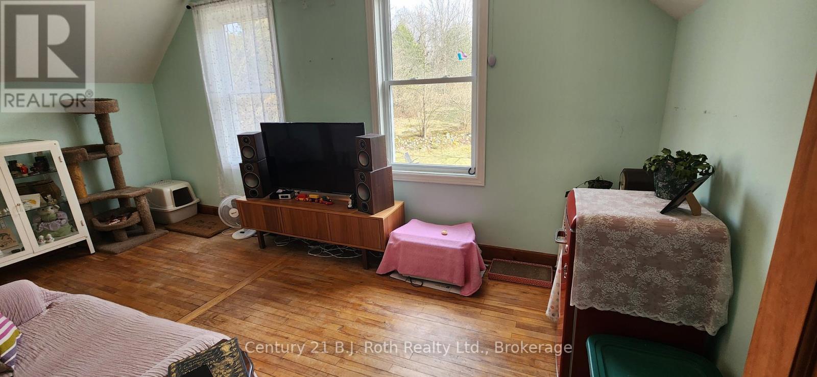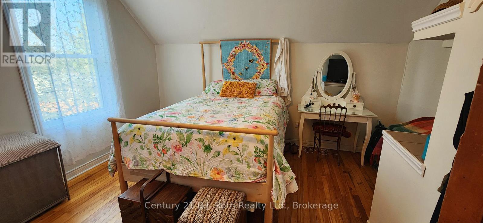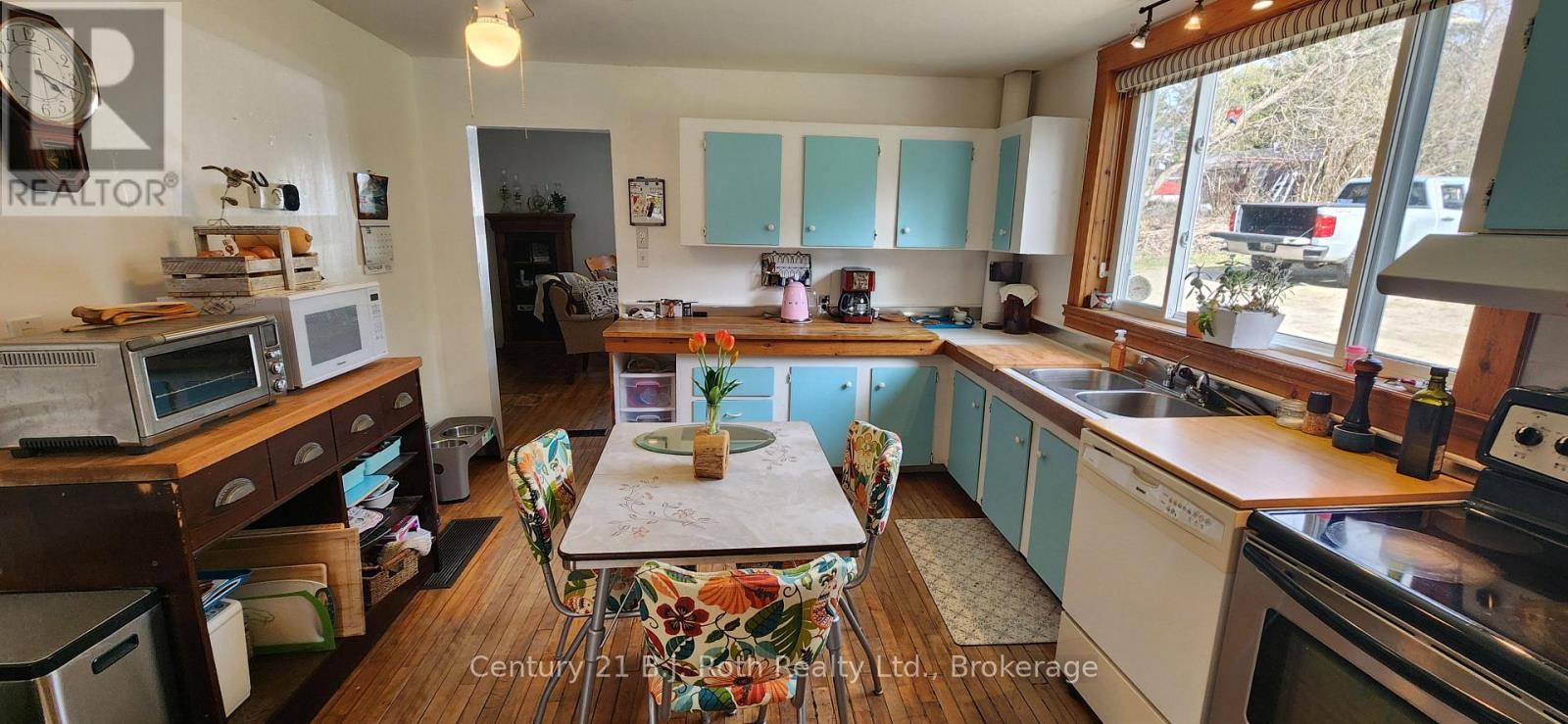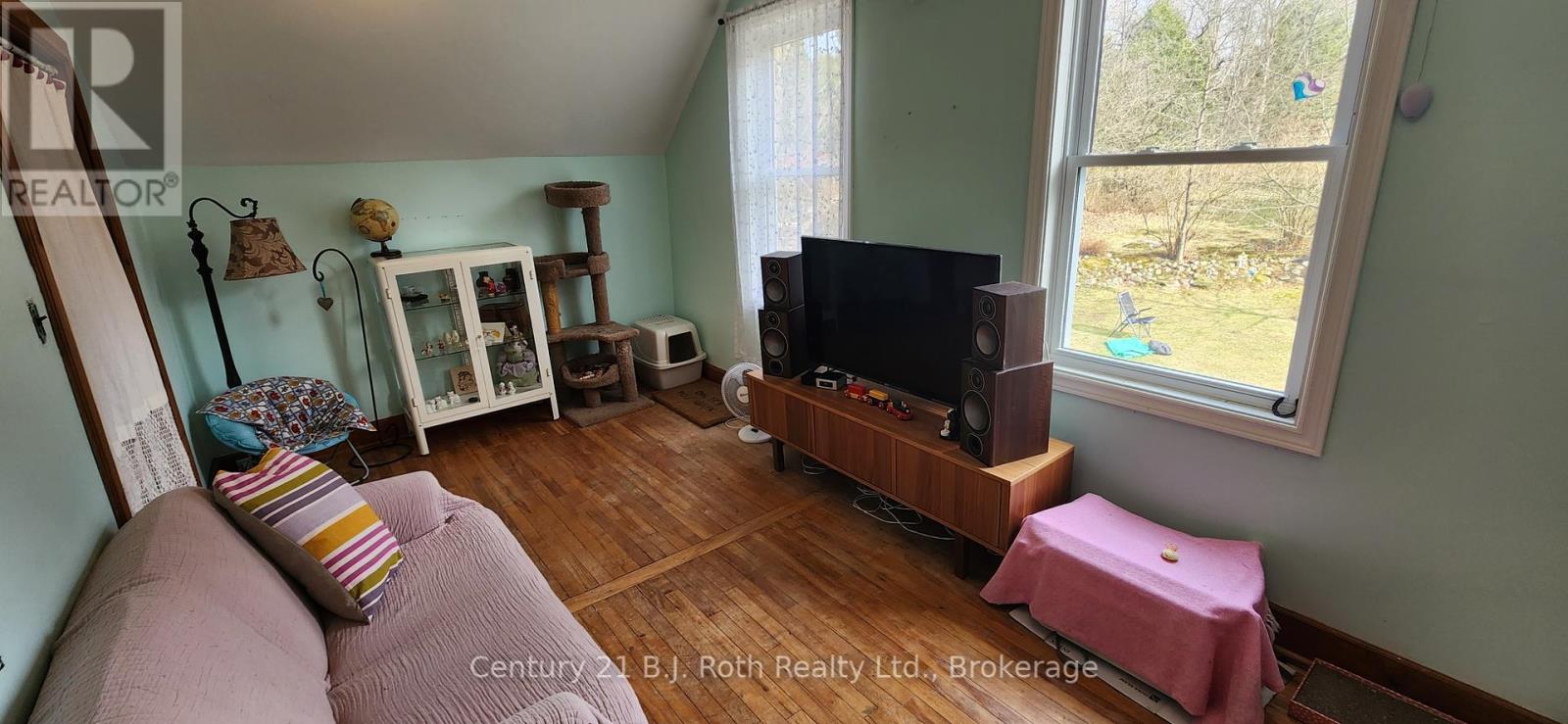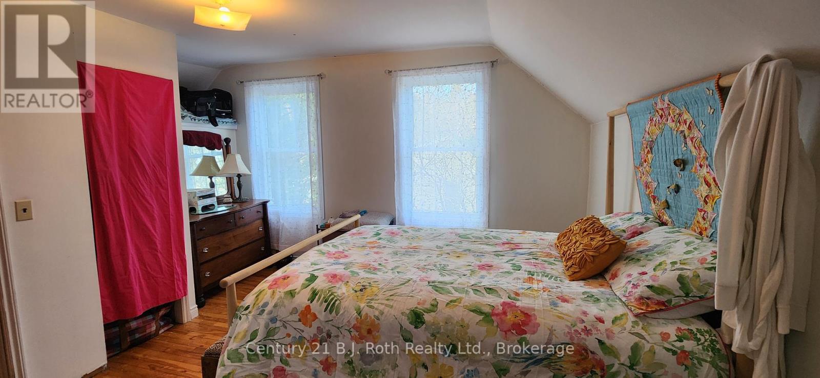 Beautiful country lot with a charming farm house right in town with municipal services. 3 spacious bedrooms (one on the main floor), 1.5 baths all tucked perfectly at the end of Stocking Lane. While it feels as though you are in the country, in less than 15 minutes you can walk to the historical downtown Huntsville for shopping and dining or head over to The Summit Centre and enjoy all of the amenities there. This home was built in the early 1900's but has updated windows, new shingles in 2018, and a natural gas furnace which is approx. 1 year old (under a transferable lease to own contract along with the hot water tank). You will love this peaceful and safe backyard where there is plenty of room for the dog and kids to roam! The two storage structures will be handy for your fire wood and lawn furniture. Come and check out this country charmer this private setting today and plan your garden for the summer! (id:56991)