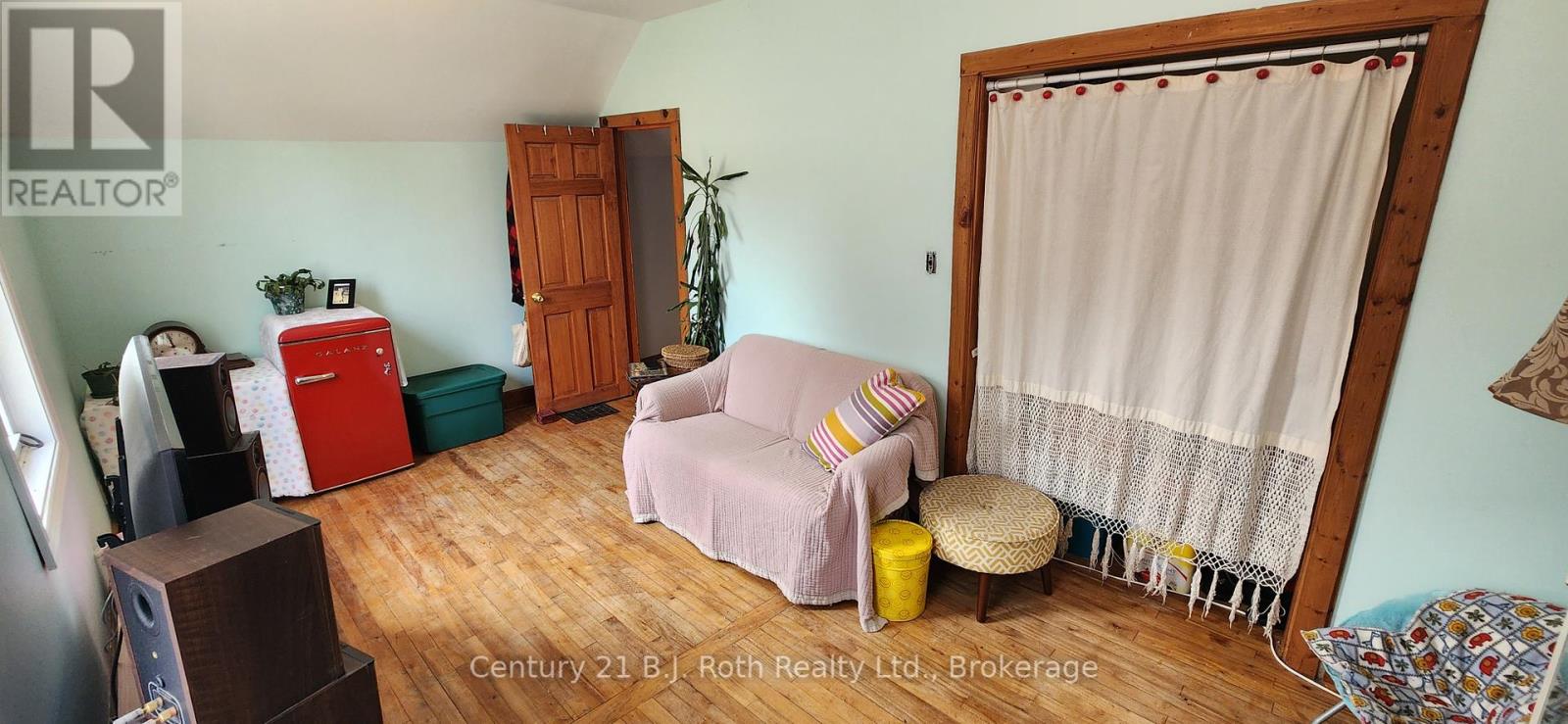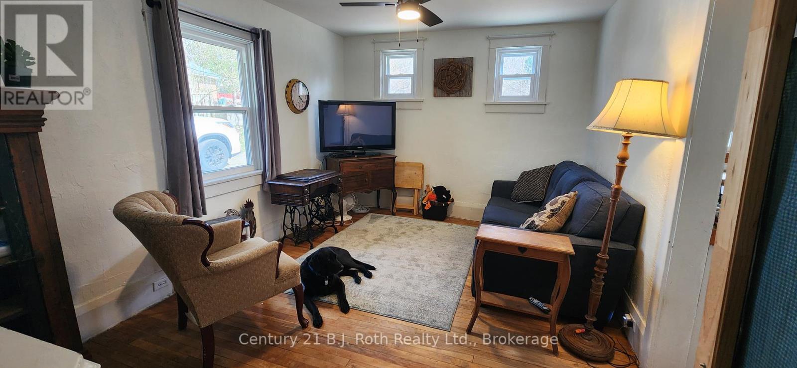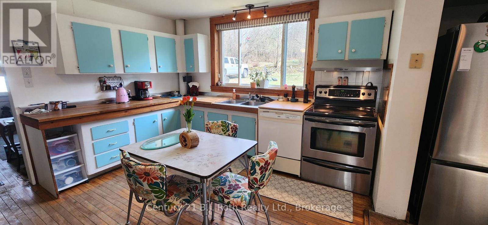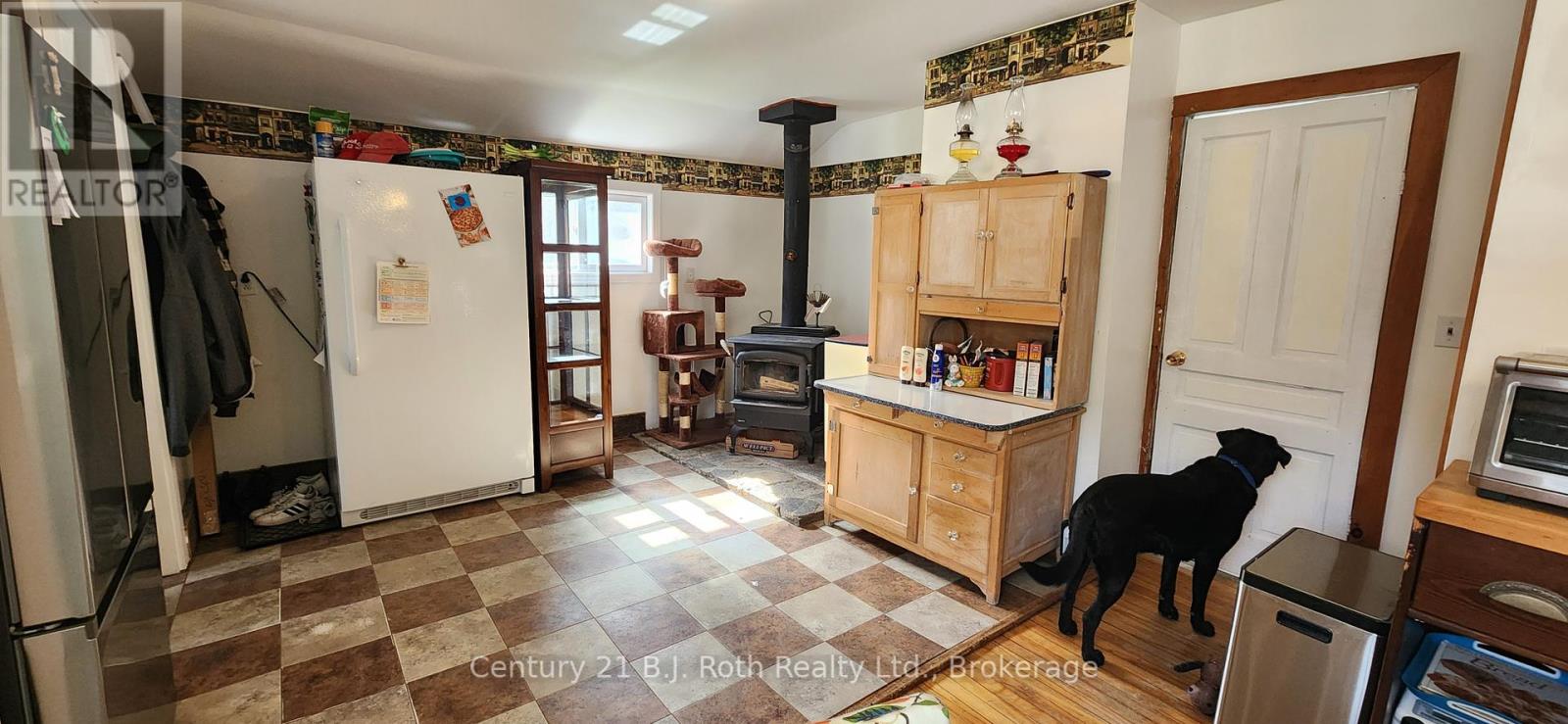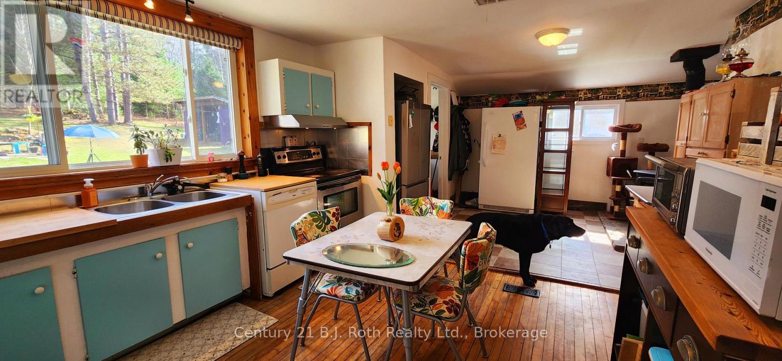 Beautiful country lot with a charming farm house right in town with municipal services. 3 spacious bedrooms (one on the main floor), 1.5 baths all tucked perfectly at the end of Stocking Lane. While it feels as though you are in the country, in less than 15 minutes you can walk to the historical downtown Huntsville for shopping and dining or head over to The Summit Centre and enjoy all of the amenities there. This home was built in the early 1900's but has updated windows, new shingles in 2018, and a natural gas furnace which is approx. 1 year old (under a transferable lease to own contract along with the hot water tank). You will love this peaceful and safe backyard where there is plenty of room for the dog and kids to roam! The two storage structures will be handy for your fire wood and lawn furniture. Come and check out this country charmer this private setting today and plan your garden for the summer! (id:56991)