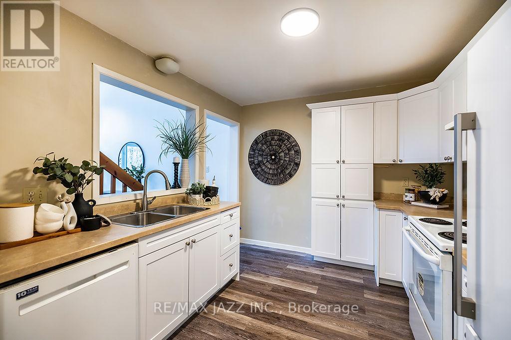 Tucked along a quiet dead-end street, this large 2,400 square foot, semi-detached home comprises a 3-bedroom main residence and a separate 1-bedroom granny suite, perfect for multi-family living situations. Natural light filters through expansive windows, illuminating the open-concept design, looking out to a rear forested ravine. Extensive upgrades include a newly paved driveway (2024), new windows (2022), a new kitchen in the main residence (2025), central air (2022), a new forced air gas furnace (2019), and updated lighting throughout (2025). Additionally, flooring updates have been made, with carpeting on the main floor being replaced in December 2025 (pre-sale). The main floor features a primary bedroom, laundry area, and a two-piece bath combo. Upstairs, you'll find two additional bedrooms and a four-piece bathroom. Downstairs, a self-contained one-bedroom granny suite offers a good-sized living space with a private entrance, a 3-piece bathroom and laundry space, and a walkout to a private yard. From the decks that overlook the peaceful lot to the leafy backdrop that shifts with the seasons, this is a home that offers it all. Share the space and generate income, create a haven for loved ones, or simply enjoy the flexibility and freedom that comes with a smart, well-designed home. With its solid structure, modern updates, and income potential, this home is ready for its next chapter! (id:56991)
