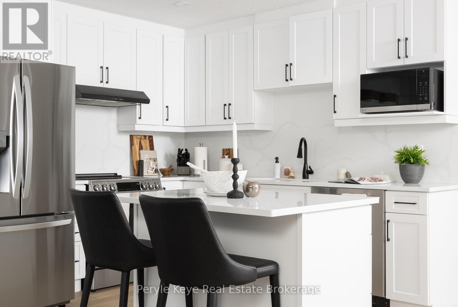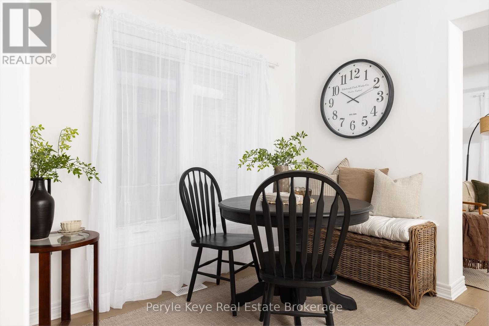 Let's start with the upgrades - they really elevate how this home lives! In the kitchen, quartz countertops extend seamlessly into a full quartz backsplash, a refined finish that sets the tone. A complete appliance package is already in place, including higher-end selections like the induction cooktop. The upgrades carry through the entire home, including hardwood all across the main floor, a finished lower level w/ a bathroom, & a fenced backyard. As an end unit, additional windows & west-facing living spaces keep the home bright well into the evening. The layout feels intuitive & comfortable. The island offers casual breakfast bar seating & banquette-style dining area feels easy and inviting. In the living room, the fireplace adds warmth & a subtle layer of ambiance without overwhelming the space. Upstairs, three bedrooms offer flexibility for family, guests, or work-from-home life. The primary features double-door entry & a beautifully upgraded ensuite. The lower level was recently finished and features a second fireplace along w/ a bathroom. It's a well-appointed space that can evolve over time. Outside, there is a natural gas BBQ hook-up. The fully fenced backyard offers everyday peace of mind for young kids & pets. Plus, pickleball courts & a playground are just around the corner. Built in 2024, the home offers full Tarion coverage. There is the convenience of an attached garage. From the street, everything presents beautifully - polished, welcoming, & a home to be proud of. This neighbourhood is one people chose intentionally. Different stages of life coexist comfortably. Young families, established households, & retirees. You're close to healthcare, close to downtown, & surrounded by amenities that make day-to-day life feel straightforward & easy. Starting from a builder base, recreating this home - w/ its upgrades and finishes - would cost more & take longer today. There's a thoughtfulness you can feel the moment you arrive. It feels like a place you stay. (id:56991)