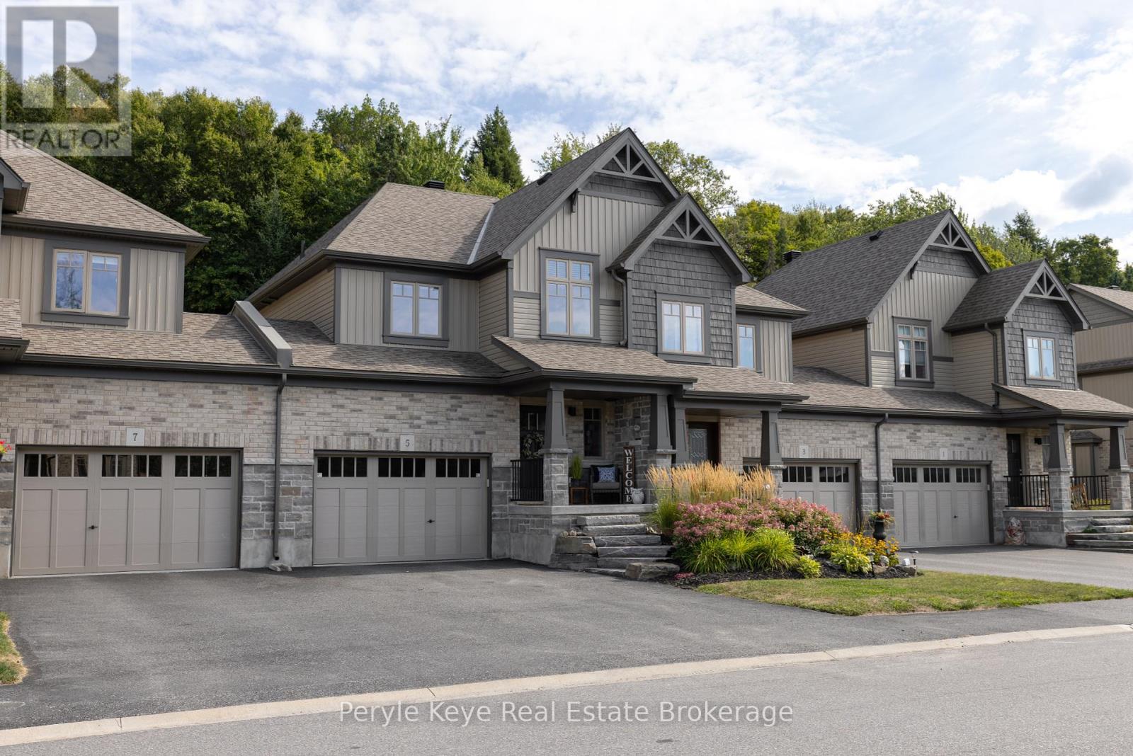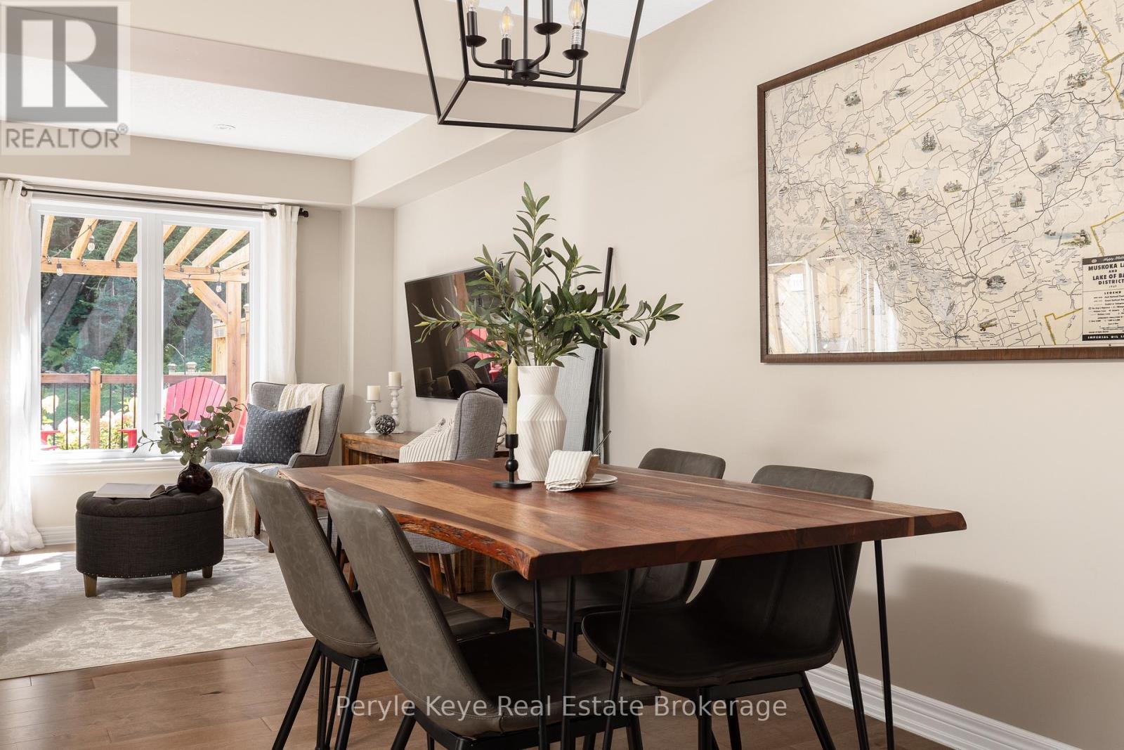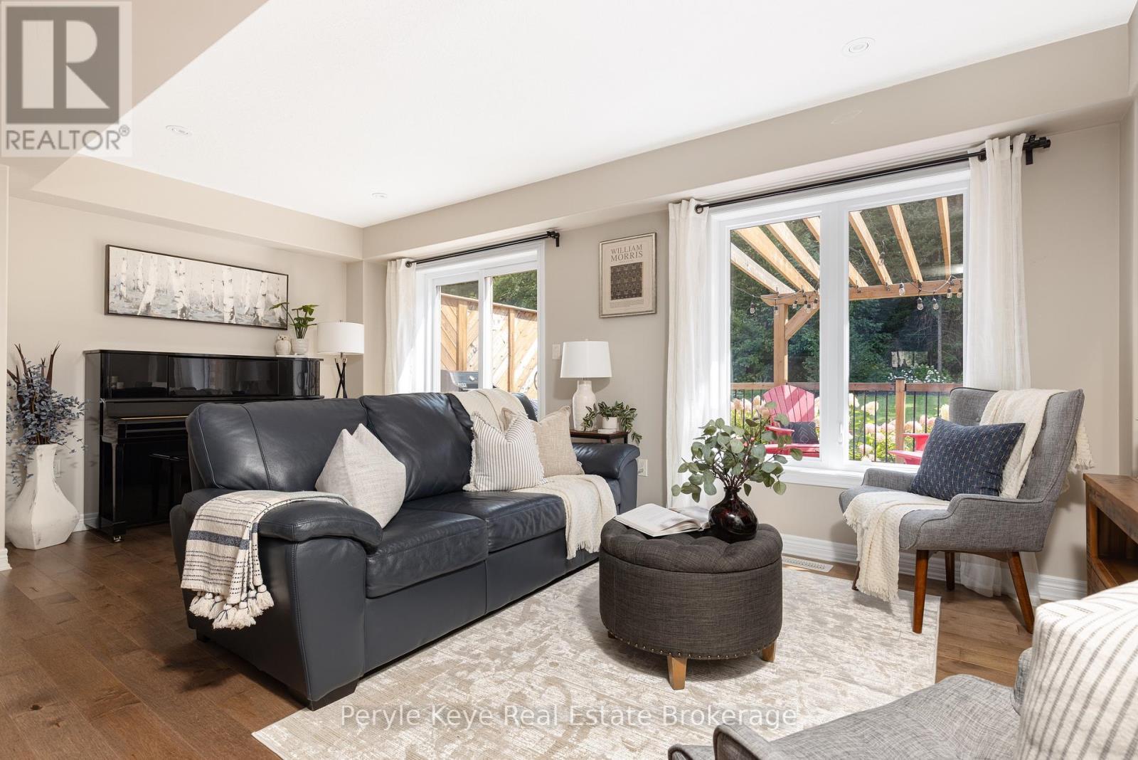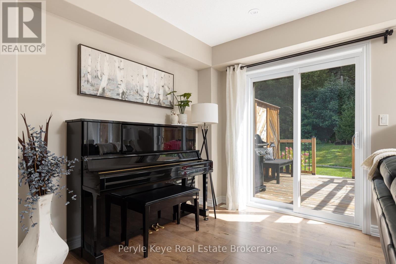 Nestled in the desirable Brookside Crossing community, this beautifully appointed 3-bedroom, 2.5-bath freehold townhome gives you full municipal services and low-maintenance living, all while backing onto a wooded ridge offering privacy and calm. It's the kind of place where you can exhale, knowing you've found the right balance between convenience and nature. Step inside and feel the difference. Hardwood floors carry through the main spaces and upgraded lighting that sets just the right mood. The kitchen will surprise you with extended cabinetry, crown molding, stylish backsplash and an island with bar seating. Just steps away, the interior access from the garage makes coming home easy, rain or shine. Upstairs, the primary suite offers a private retreat with forested views and its own 3-piece ensuite and walk-in closet. Two additional guest bedrooms give you flexibility, whether it's space for kids, guests, or a cozy home office. Thoughtfully designed, a 4pc bath and space for laundry complete this second level. The full, unfinished basement, complete with a rough-in bath and large window, gives you room to grow and the opportunity to design a space that suits your lifestyle. And then there's the backyard - the heart of where memories are made. Imagine summer evenings on your 20' x 12' deck, fireflies flickering while you stargaze under the Muskoka sky. Privacy fencing gives you a quiet spot to relax, while the tree-covered ridge behind your yard provides a natural backdrop that feels miles away from town. There's room for a fire pit, lawn games or raised garden beds. All of this is just minutes to schools, shopping, trails and parks! It's close enough for convenience but far enough to feel tucked away. Serviced with natural gas, municipal water and sewer, and high speed internet, you're always connected. Pride of ownership is evident throughout. Don't miss this amazing opportunity to make this townhome the backdrop of your next chapter. (id:56991)
