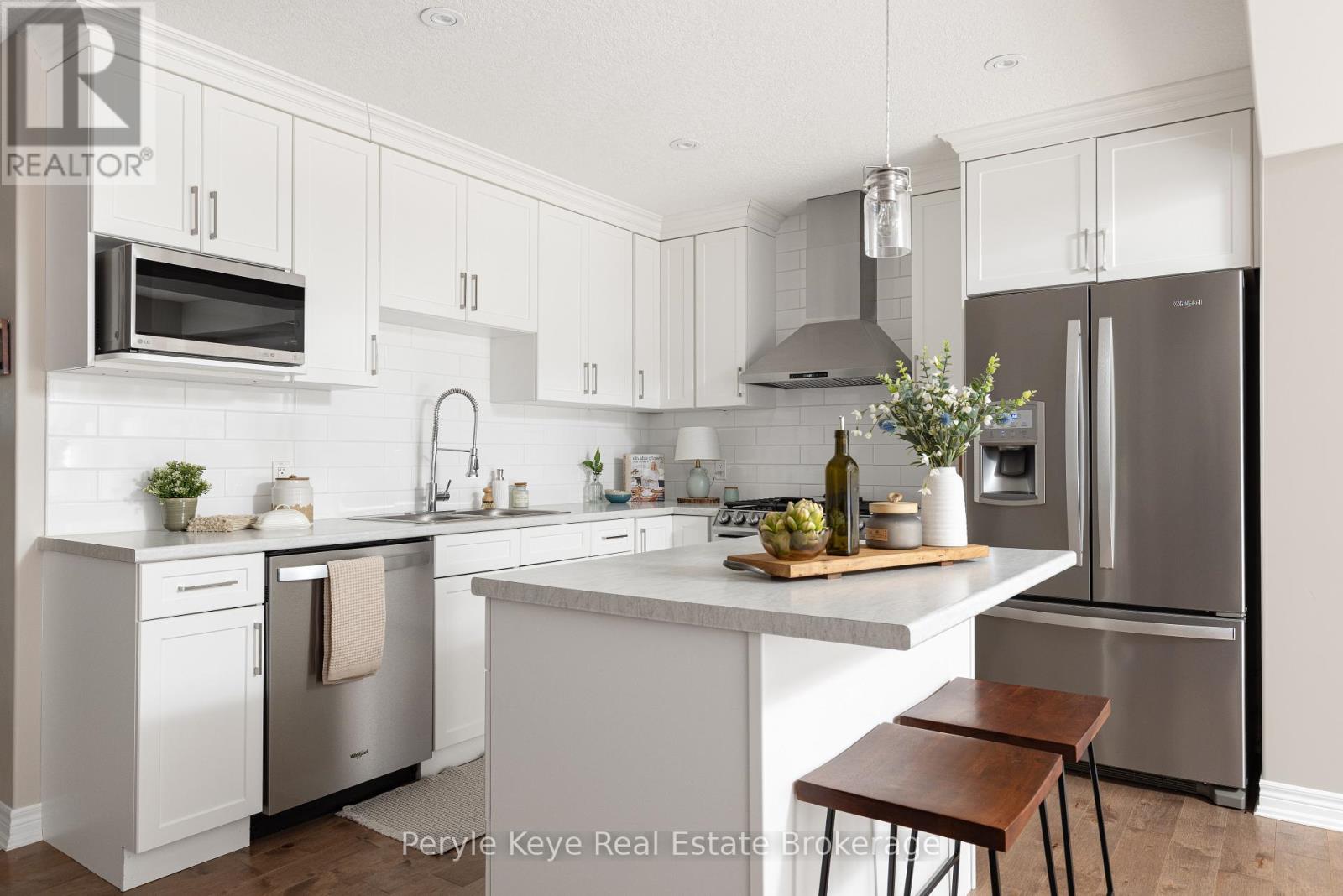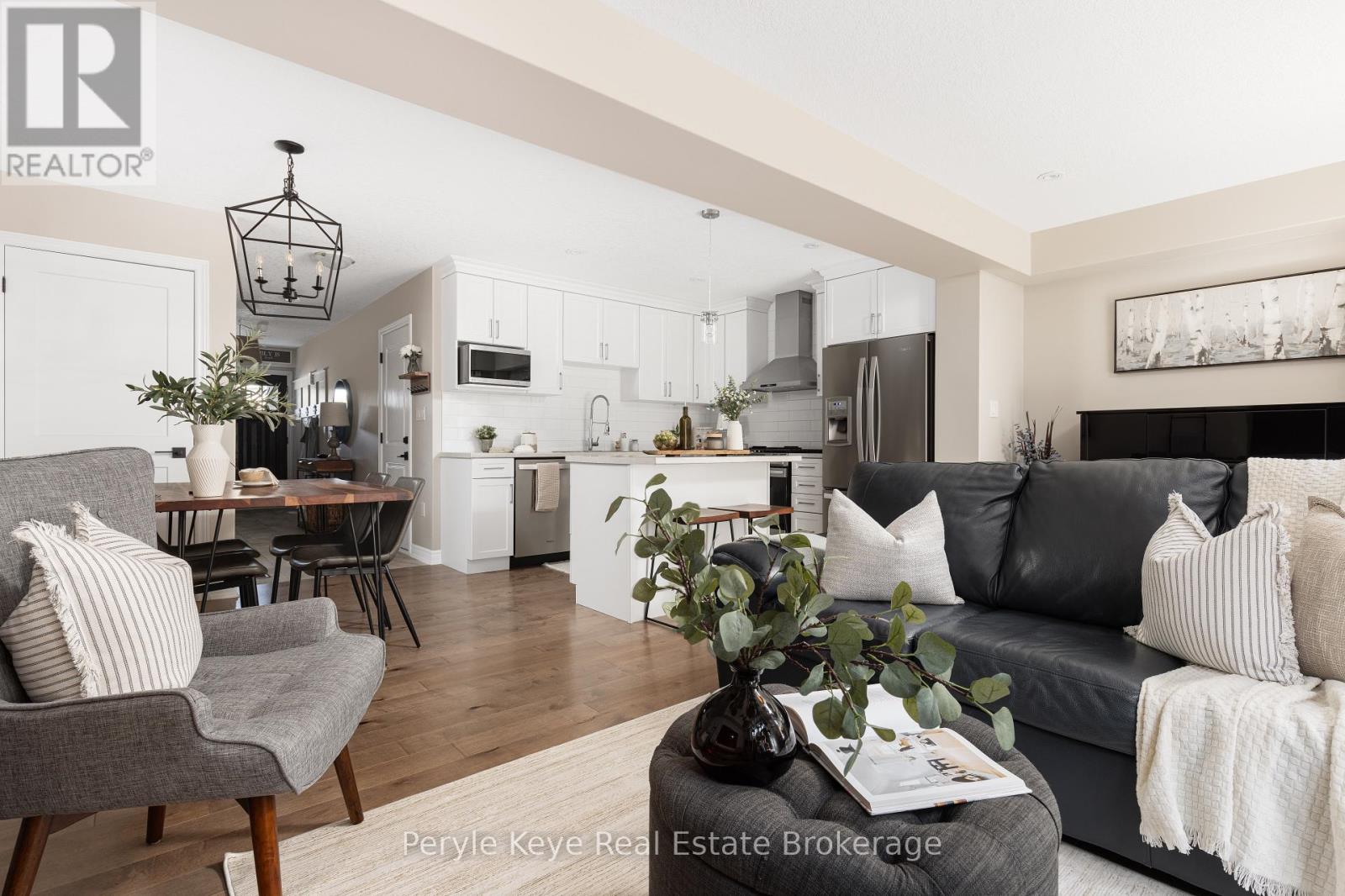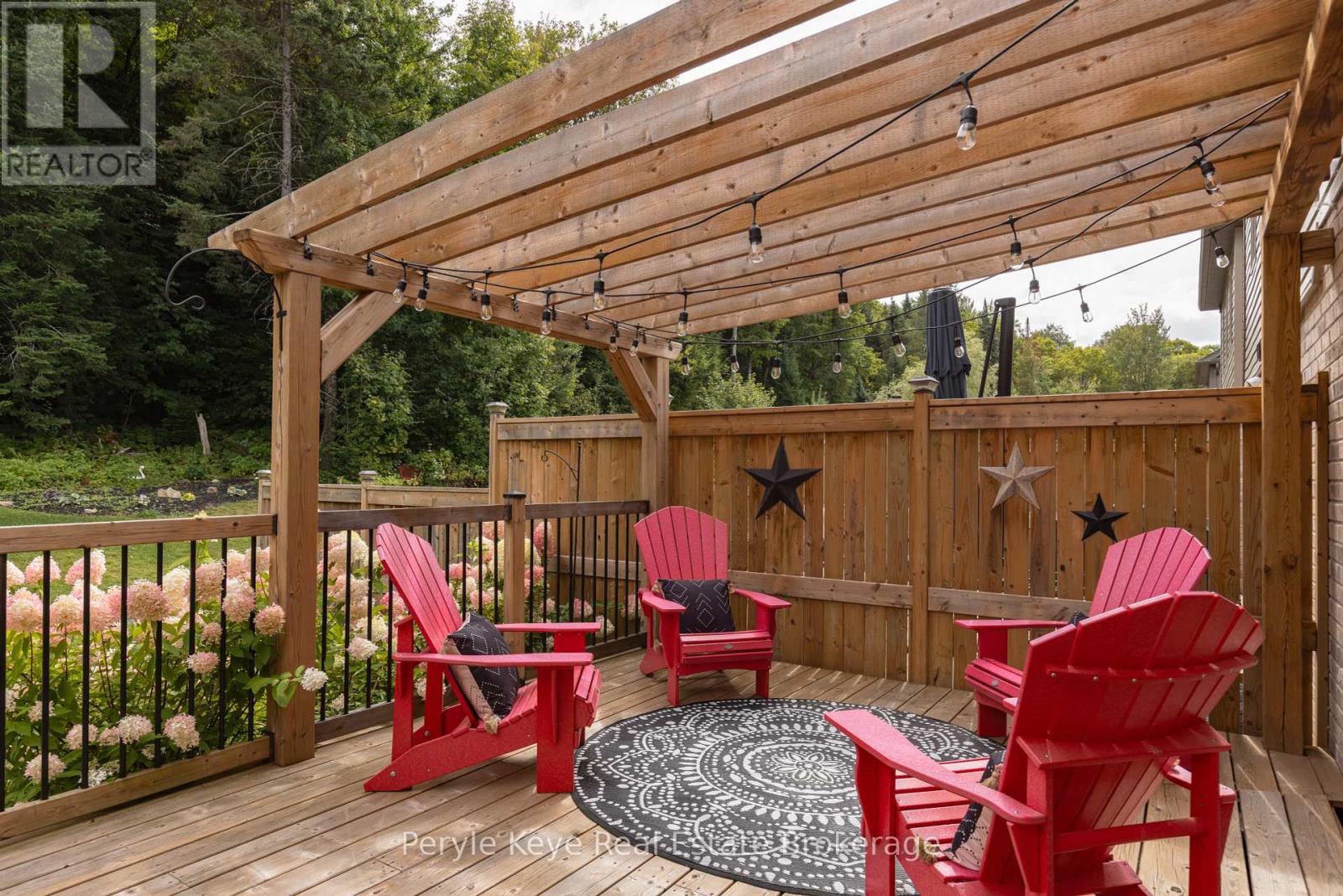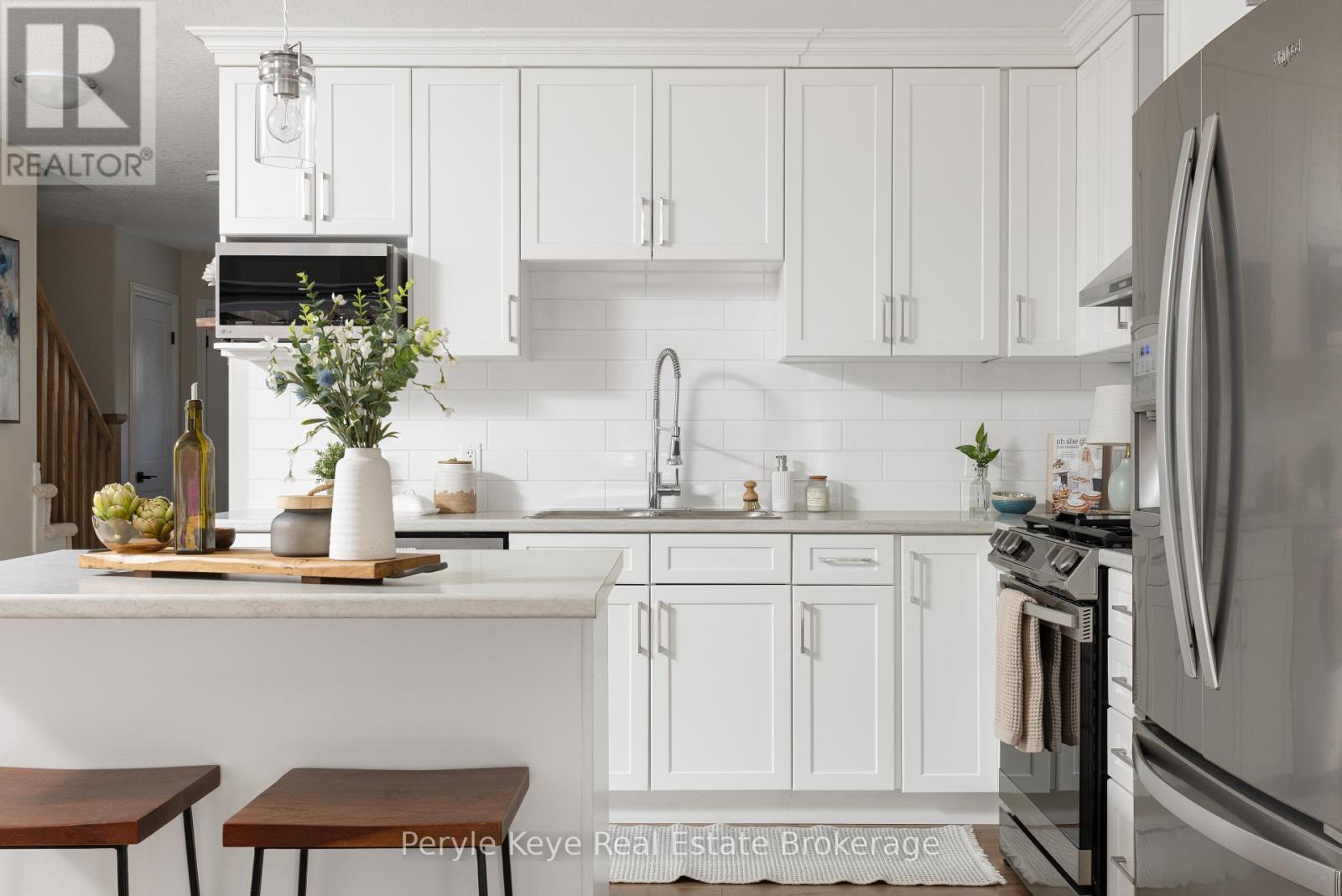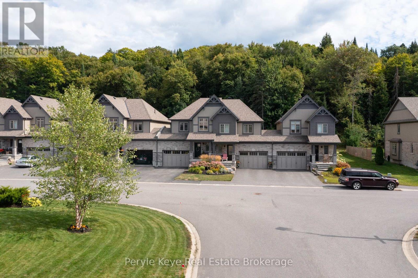 Nestled in the desirable Brookside Crossing community, this beautifully appointed 3-bedroom, 2.5-bath freehold townhome gives you full municipal services and low-maintenance living, all while backing onto a wooded ridge offering privacy and calm. It's the kind of place where you can exhale, knowing you've found the right balance between convenience and nature. Step inside and feel the difference. Hardwood floors carry through the main spaces and upgraded lighting that sets just the right mood. The kitchen will surprise you with extended cabinetry, crown molding, stylish backsplash and an island with bar seating. Just steps away, the interior access from the garage makes coming home easy, rain or shine. Upstairs, the primary suite offers a private retreat with forested views and its own 3-piece ensuite and walk-in closet. Two additional guest bedrooms give you flexibility, whether it's space for kids, guests, or a cozy home office. Thoughtfully designed, a 4pc bath and space for laundry complete this second level. The full, unfinished basement, complete with a rough-in bath and large window, gives you room to grow and the opportunity to design a space that suits your lifestyle. And then there's the backyard - the heart of where memories are made. Imagine summer evenings on your 20' x 12' deck, fireflies flickering while you stargaze under the Muskoka sky. Privacy fencing gives you a quiet spot to relax, while the tree-covered ridge behind your yard provides a natural backdrop that feels miles away from town. There's room for a fire pit, lawn games or raised garden beds. All of this is just minutes to schools, shopping, trails and parks! It's close enough for convenience but far enough to feel tucked away. Serviced with natural gas, municipal water and sewer, and high speed internet, you're always connected. Pride of ownership is evident throughout. Don't miss this amazing opportunity to make this townhome the backdrop of your next chapter. (id:56991)