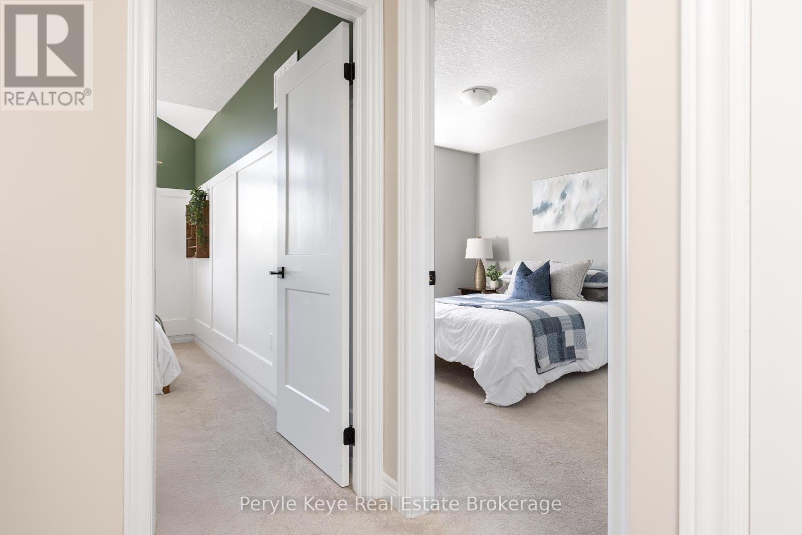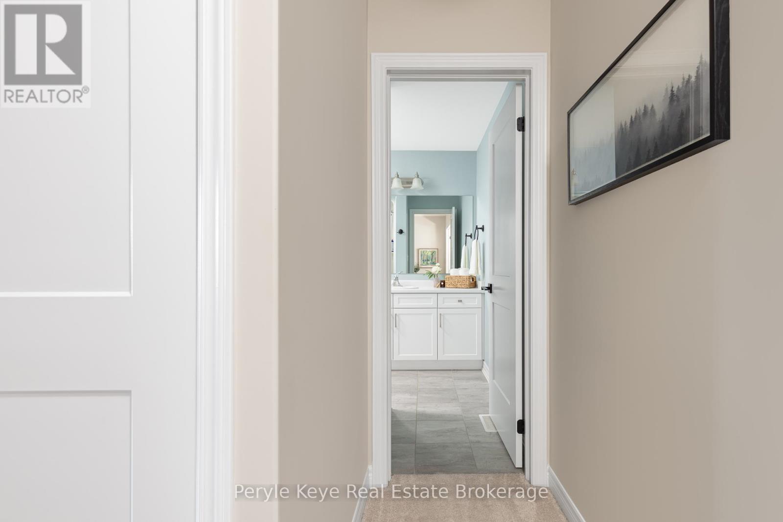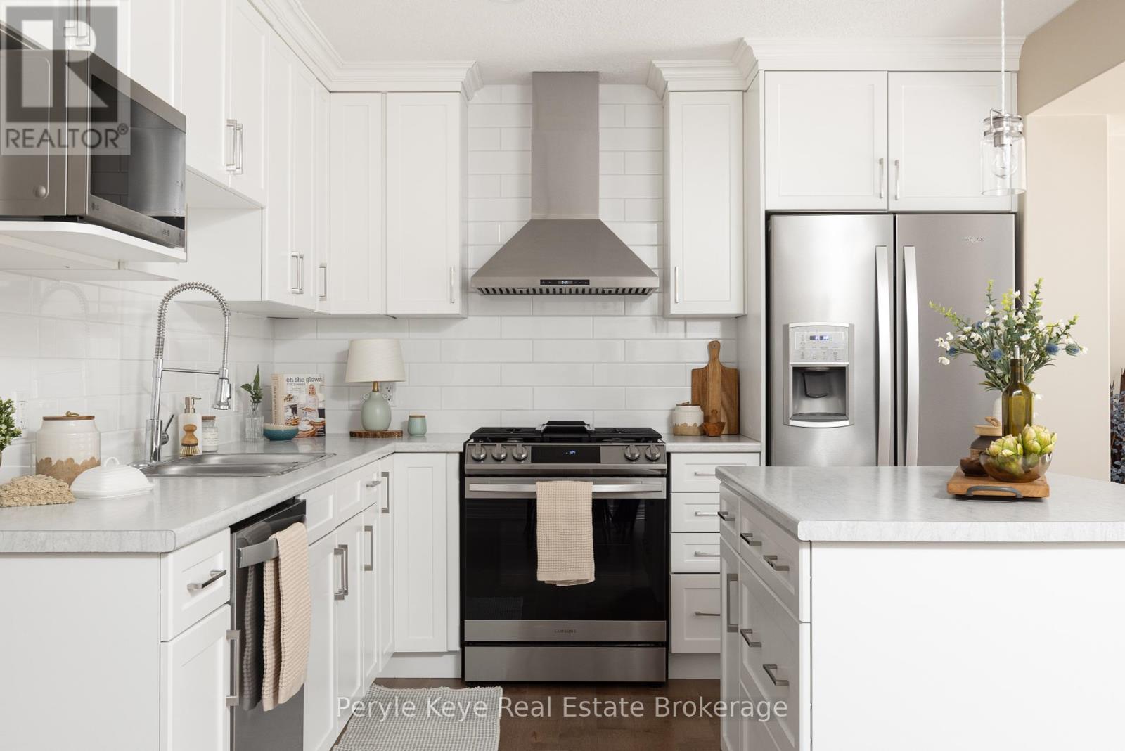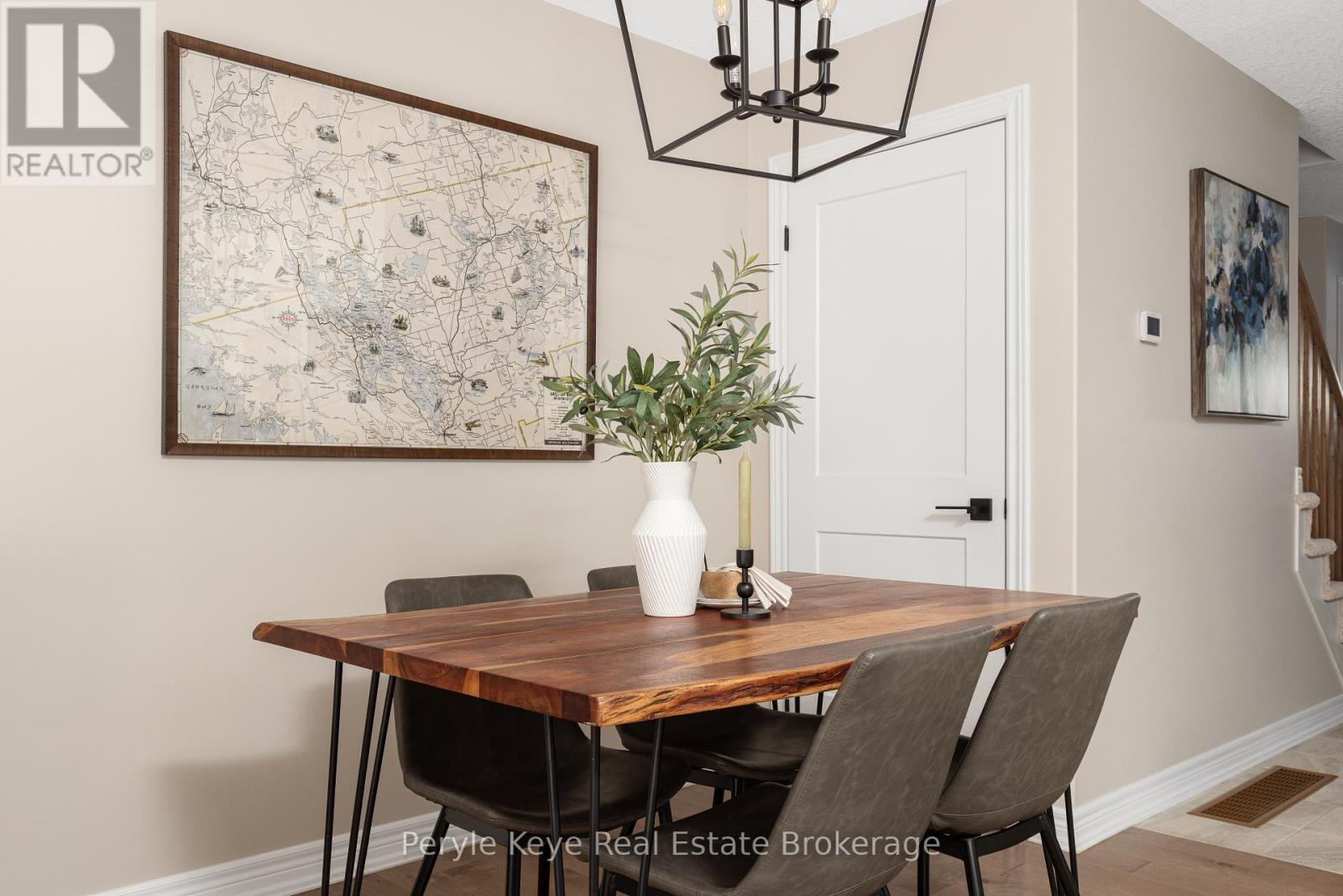 Nestled in the desirable Brookside Crossing community, this beautifully appointed 3-bedroom, 2.5-bath freehold townhome gives you full municipal services and low-maintenance living, all while backing onto a wooded ridge offering privacy and calm. It's the kind of place where you can exhale, knowing you've found the right balance between convenience and nature. Step inside and feel the difference. Hardwood floors carry through the main spaces and upgraded lighting that sets just the right mood. The kitchen will surprise you with extended cabinetry, crown molding, stylish backsplash and an island with bar seating. Just steps away, the interior access from the garage makes coming home easy, rain or shine. Upstairs, the primary suite offers a private retreat with forested views and its own 3-piece ensuite and walk-in closet. Two additional guest bedrooms give you flexibility, whether it's space for kids, guests, or a cozy home office. Thoughtfully designed, a 4pc bath and space for laundry complete this second level. The full, unfinished basement, complete with a rough-in bath and large window, gives you room to grow and the opportunity to design a space that suits your lifestyle. And then there's the backyard - the heart of where memories are made. Imagine summer evenings on your 20' x 12' deck, fireflies flickering while you stargaze under the Muskoka sky. Privacy fencing gives you a quiet spot to relax, while the tree-covered ridge behind your yard provides a natural backdrop that feels miles away from town. There's room for a fire pit, lawn games or raised garden beds. All of this is just minutes to schools, shopping, trails and parks! It's close enough for convenience but far enough to feel tucked away. Serviced with natural gas, municipal water and sewer, and high speed internet, you're always connected. Pride of ownership is evident throughout. Don't miss this amazing opportunity to make this townhome the backdrop of your next chapter. (id:56991)