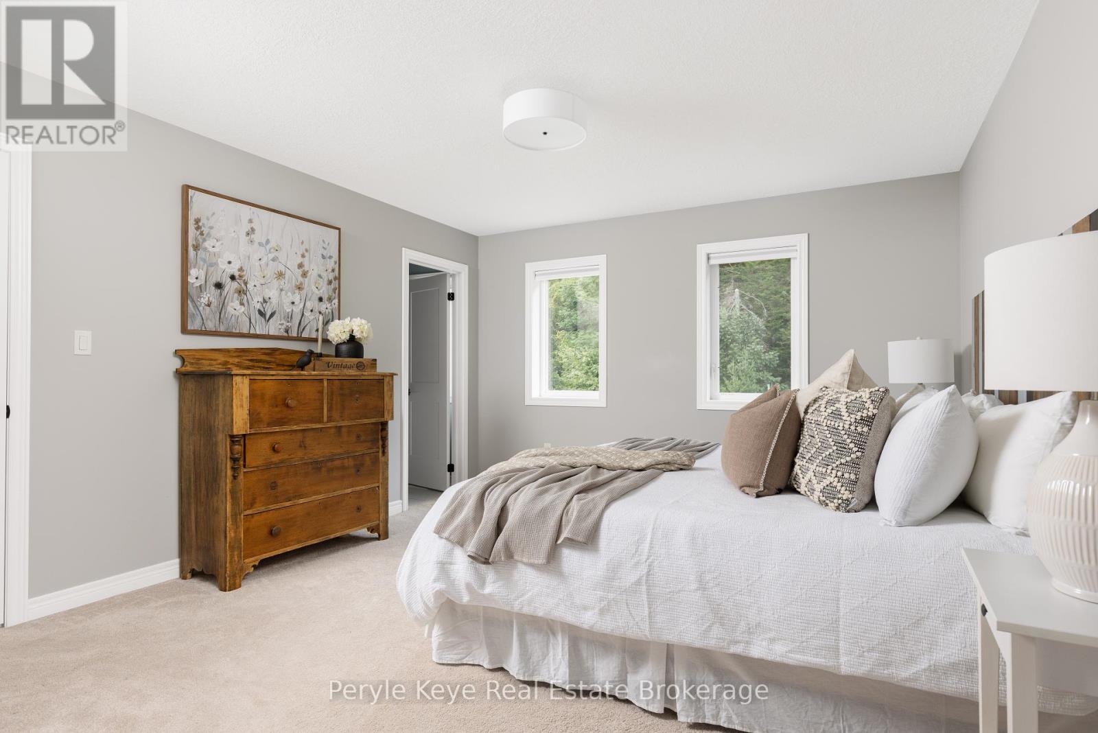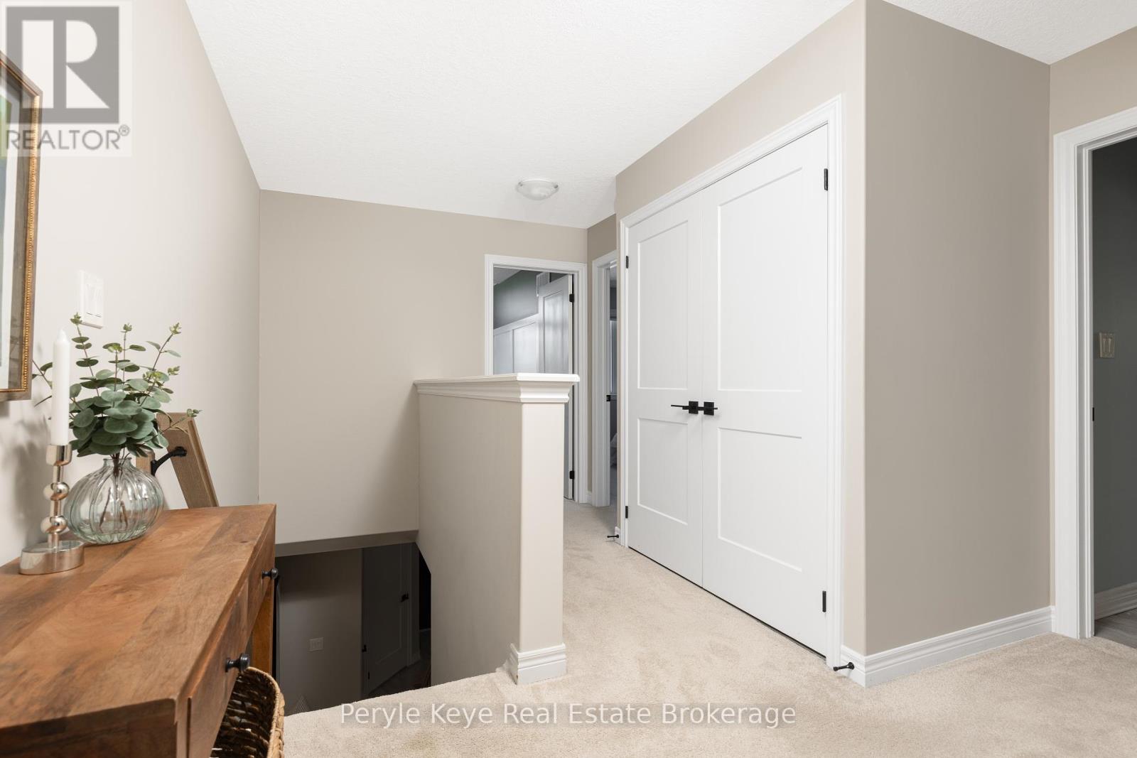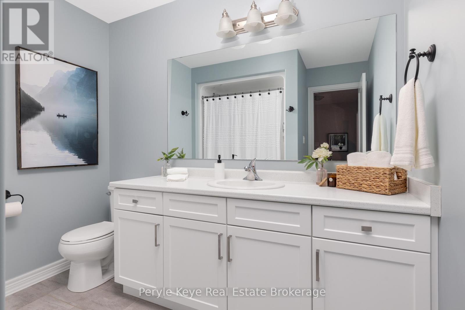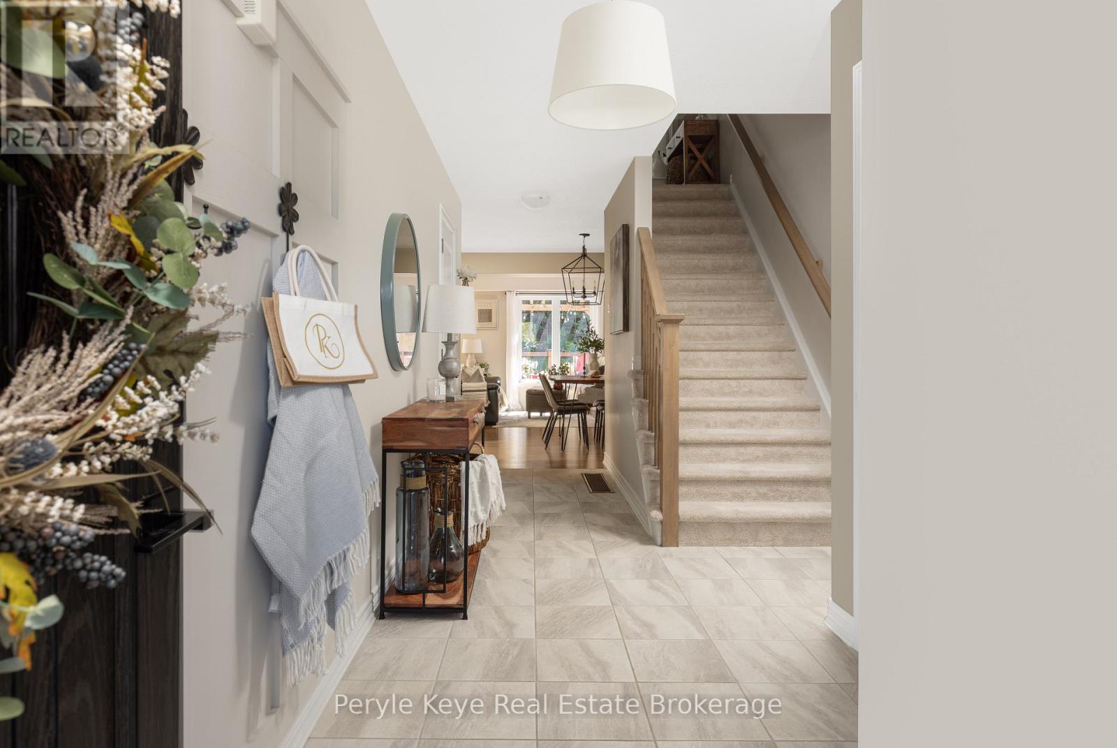 Nestled in the desirable Brookside Crossing community, this beautifully appointed 3-bedroom, 2.5-bath freehold townhome gives you full municipal services and low-maintenance living, all while backing onto a wooded ridge offering privacy and calm. It's the kind of place where you can exhale, knowing you've found the right balance between convenience and nature. Step inside and feel the difference. Hardwood floors carry through the main spaces and upgraded lighting that sets just the right mood. The kitchen will surprise you with extended cabinetry, crown molding, stylish backsplash and an island with bar seating. Just steps away, the interior access from the garage makes coming home easy, rain or shine. Upstairs, the primary suite offers a private retreat with forested views and its own 3-piece ensuite and walk-in closet. Two additional guest bedrooms give you flexibility, whether it's space for kids, guests, or a cozy home office. Thoughtfully designed, a 4pc bath and space for laundry complete this second level. The full, unfinished basement, complete with a rough-in bath and large window, gives you room to grow and the opportunity to design a space that suits your lifestyle. And then there's the backyard - the heart of where memories are made. Imagine summer evenings on your 20' x 12' deck, fireflies flickering while you stargaze under the Muskoka sky. Privacy fencing gives you a quiet spot to relax, while the tree-covered ridge behind your yard provides a natural backdrop that feels miles away from town. There's room for a fire pit, lawn games or raised garden beds. All of this is just minutes to schools, shopping, trails and parks! It's close enough for convenience but far enough to feel tucked away. Serviced with natural gas, municipal water and sewer, and high speed internet, you're always connected. Pride of ownership is evident throughout. Don't miss this amazing opportunity to make this townhome the backdrop of your next chapter. (id:56991)