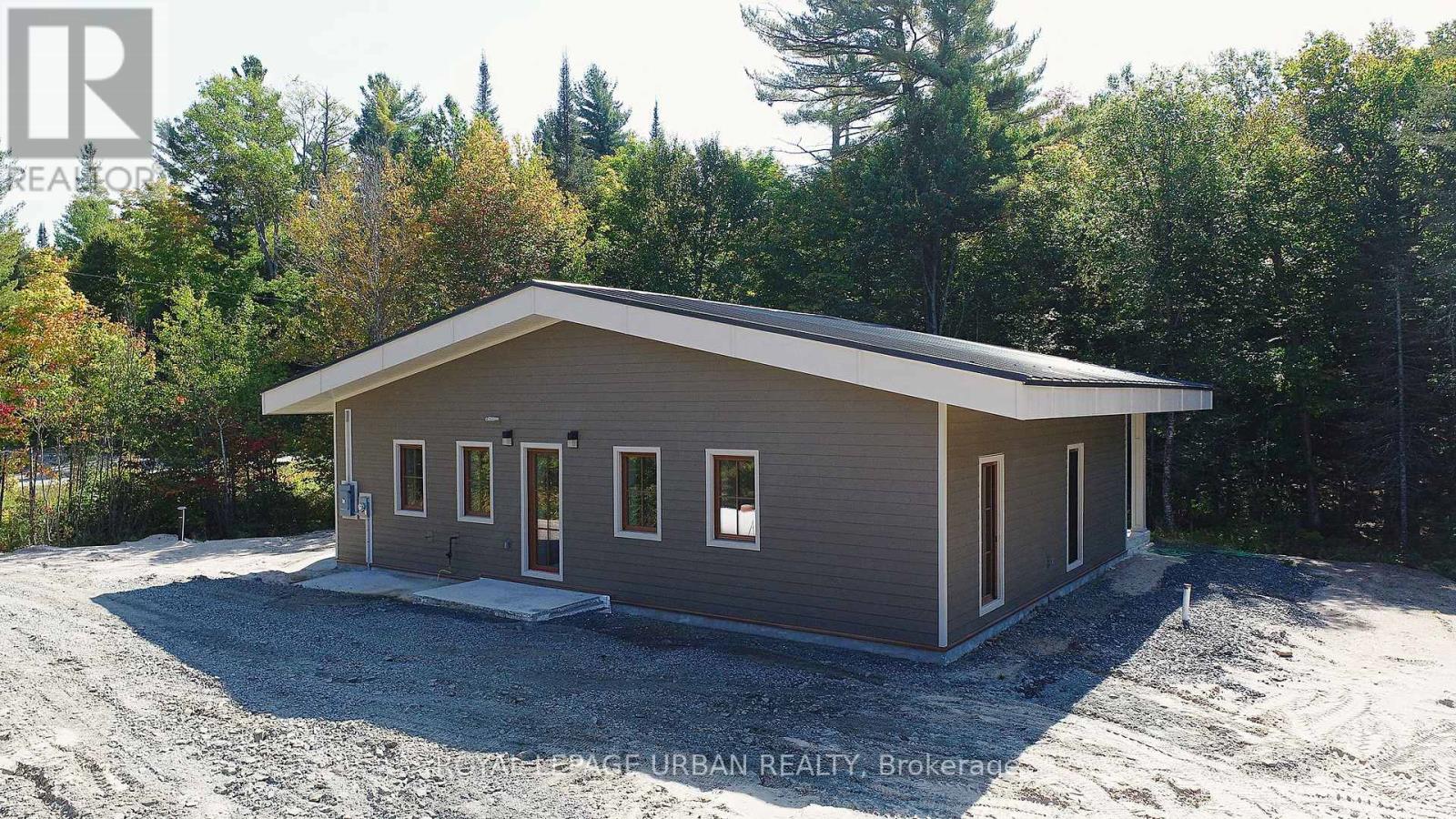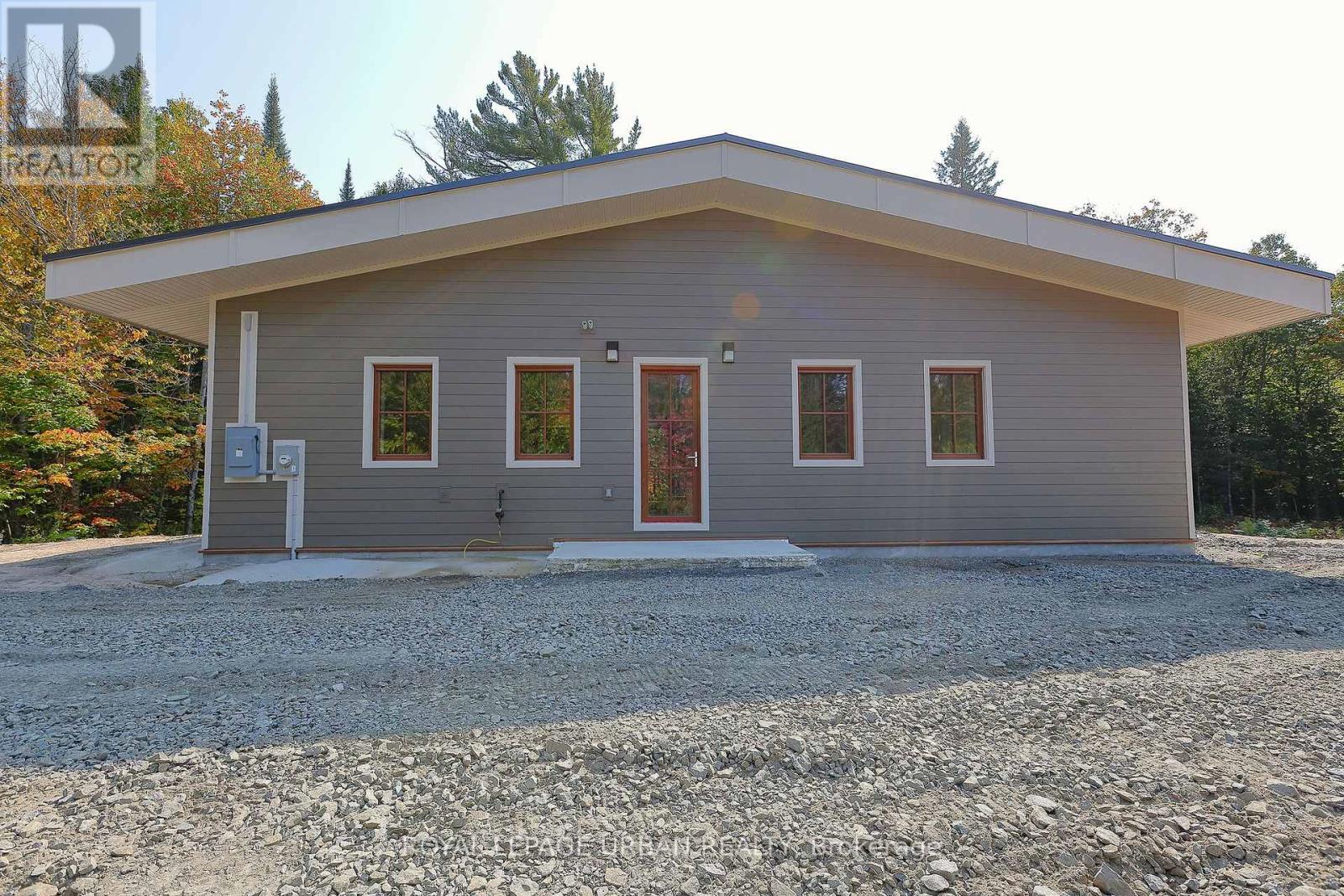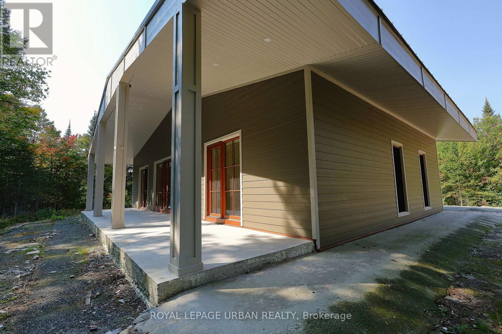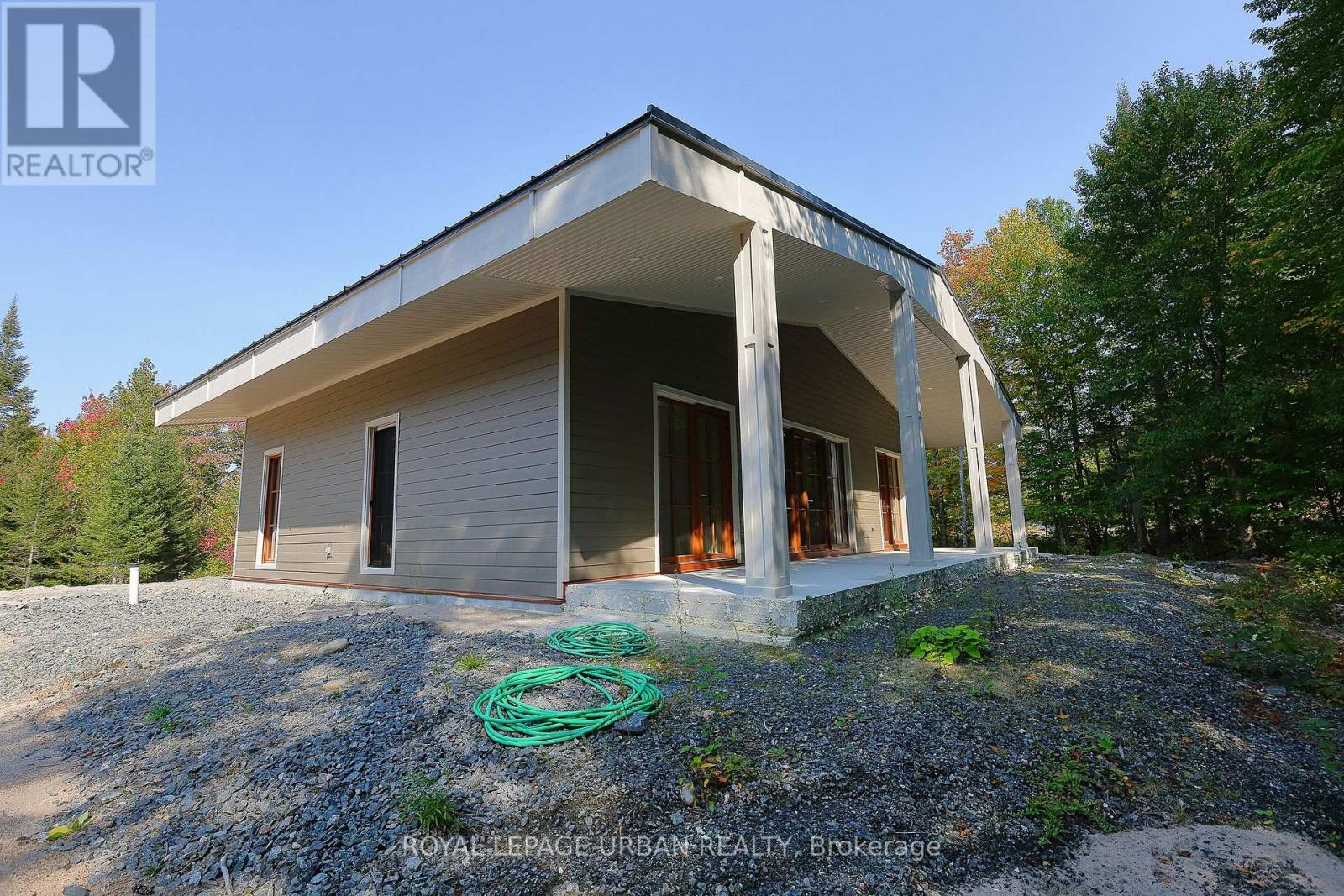 A low-cost, stress-free lifestyle is possible in this newly built eco home in the unorganized township of Lount. Set on 2.5+ level acres with trail access and year-round road maintenance, this full net-zero home was built to Passive House standards for long-term comfort and efficiency. The four-bedroom, two-bathroom layout is open and functional, with 10-foot ceilings and large windows that bring in plenty of natural light. Quartz counters, wide oak floors, and marble-accented bathrooms keep the interior clean and modern, while practical choices like in-floor radiant heating, a tankless water heater, and a large storage/laundry room make everyday life easier. Built with the EcoCocon straw wall system (R56) and triple-pane European windows, the home is quiet, insulated, and efficient. Zero-maintenance lifetime siding, a covered patio, and a heated slab foundation mean less work and more time to enjoy your property. Located in an unorganized township with no zoning bylaws or municipal taxes, it's an ideal setup for anyone looking to simplify. Whether full-time or recreational use, the property offers peace and flexibility, plus direct access to thousands of acres of ATV and snowmobile trails. A practical, energy-efficient option in a quiet rural setting. (id:56991)