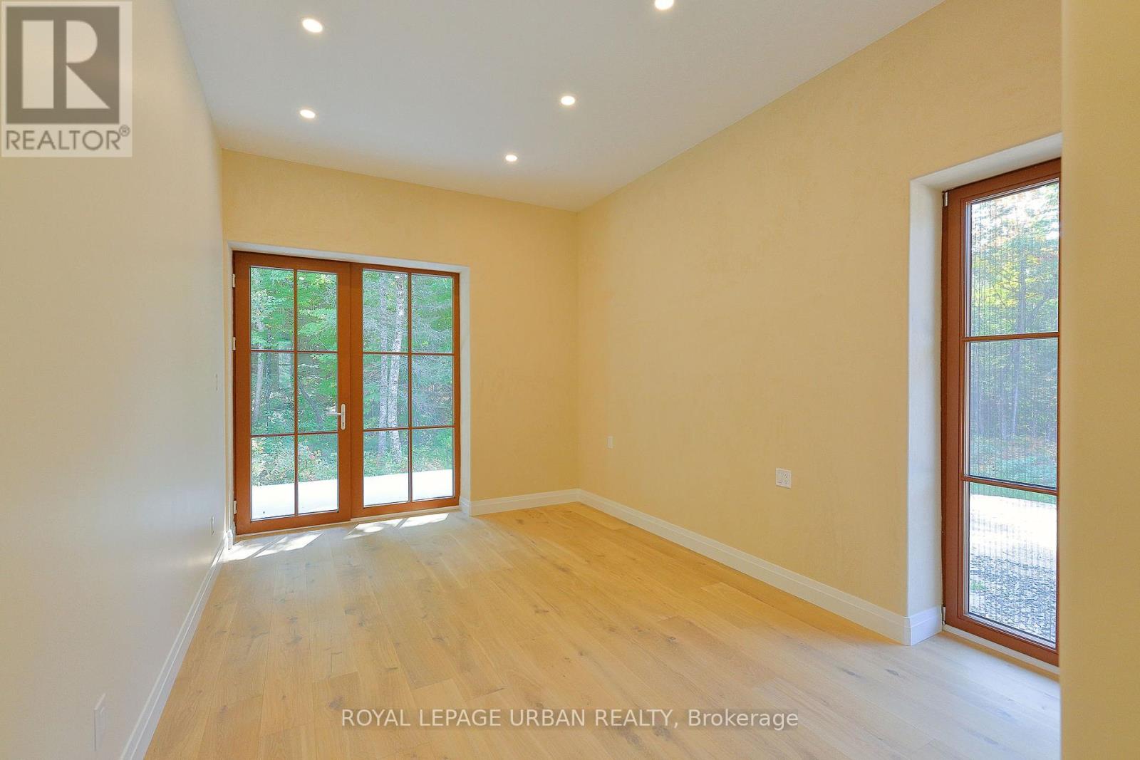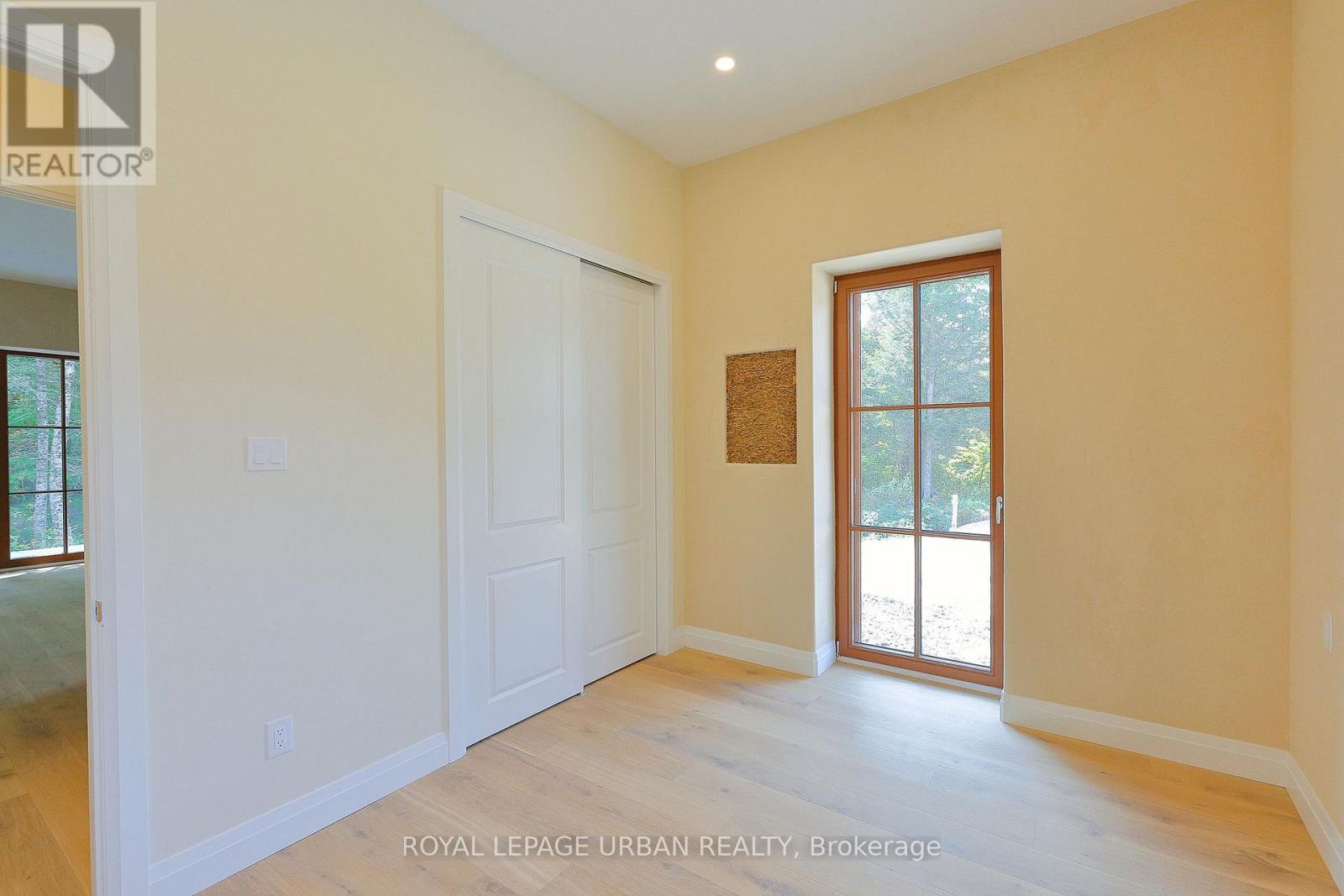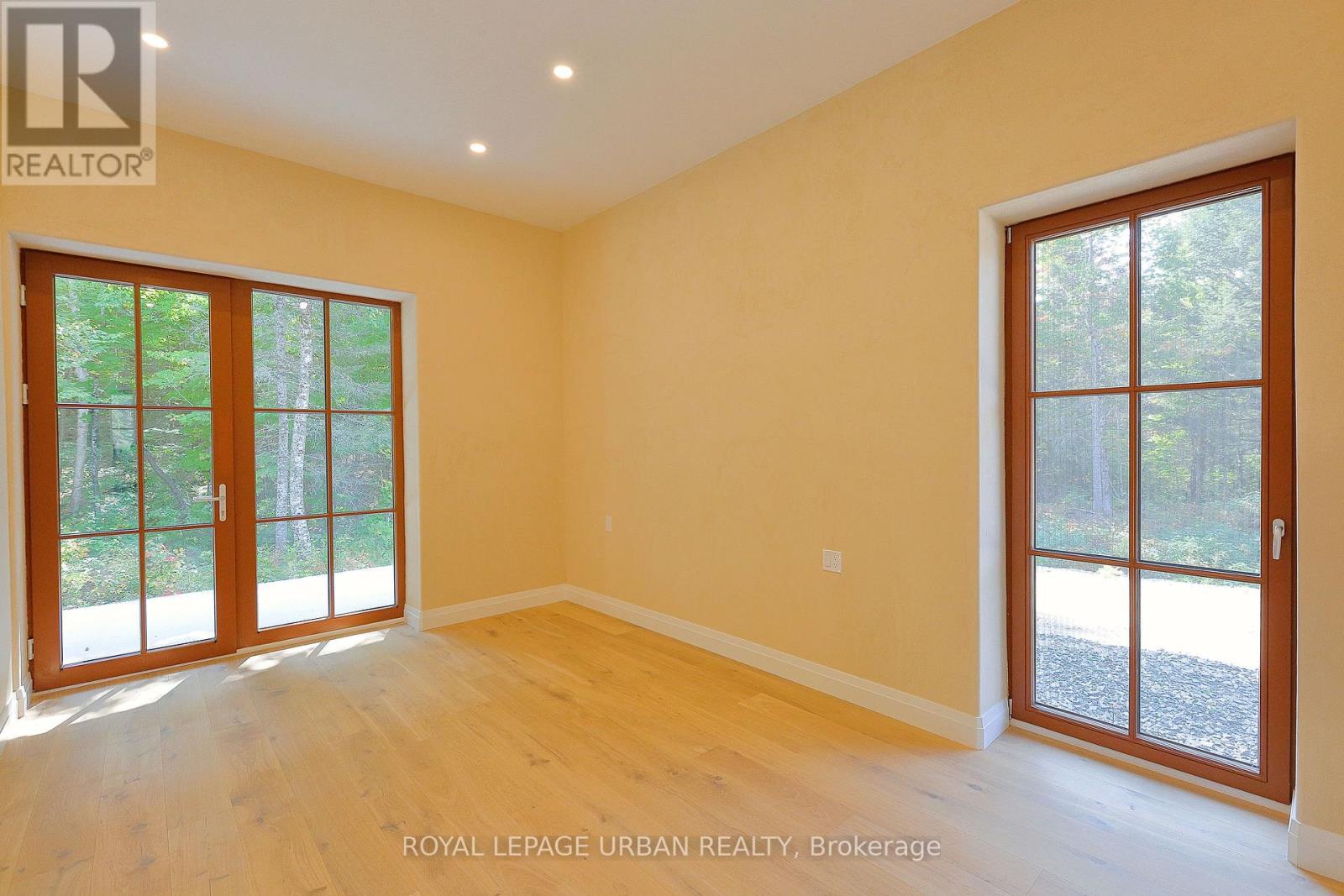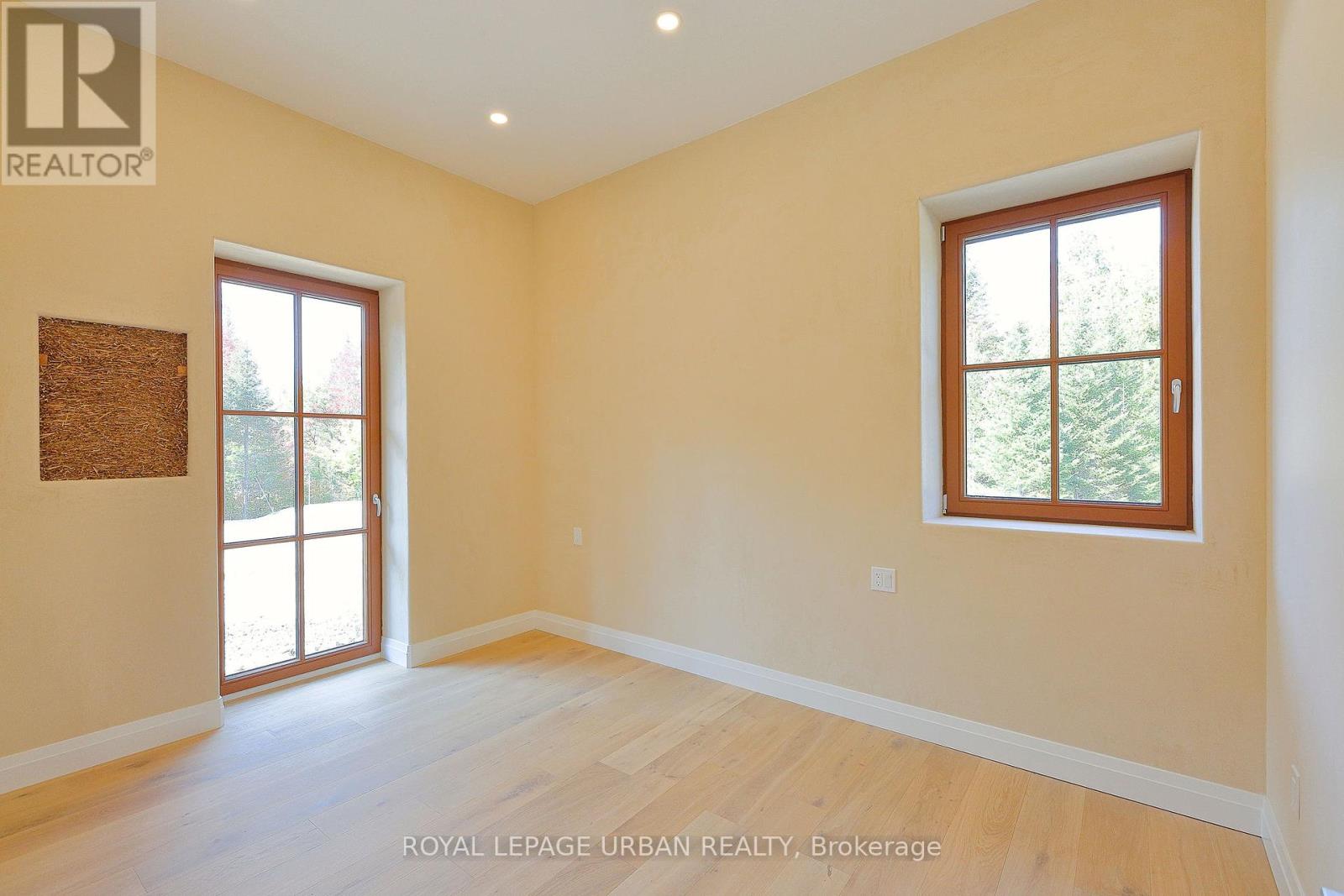 A low-cost, stress-free lifestyle is possible in this newly built eco home in the unorganized township of Lount. Set on 2.5+ level acres with trail access and year-round road maintenance, this full net-zero home was built to Passive House standards for long-term comfort and efficiency. The four-bedroom, two-bathroom layout is open and functional, with 10-foot ceilings and large windows that bring in plenty of natural light. Quartz counters, wide oak floors, and marble-accented bathrooms keep the interior clean and modern, while practical choices like in-floor radiant heating, a tankless water heater, and a large storage/laundry room make everyday life easier. Built with the EcoCocon straw wall system (R56) and triple-pane European windows, the home is quiet, insulated, and efficient. Zero-maintenance lifetime siding, a covered patio, and a heated slab foundation mean less work and more time to enjoy your property. Located in an unorganized township with no zoning bylaws or municipal taxes, it's an ideal setup for anyone looking to simplify. Whether full-time or recreational use, the property offers peace and flexibility, plus direct access to thousands of acres of ATV and snowmobile trails. A practical, energy-efficient option in a quiet rural setting. (id:56991)