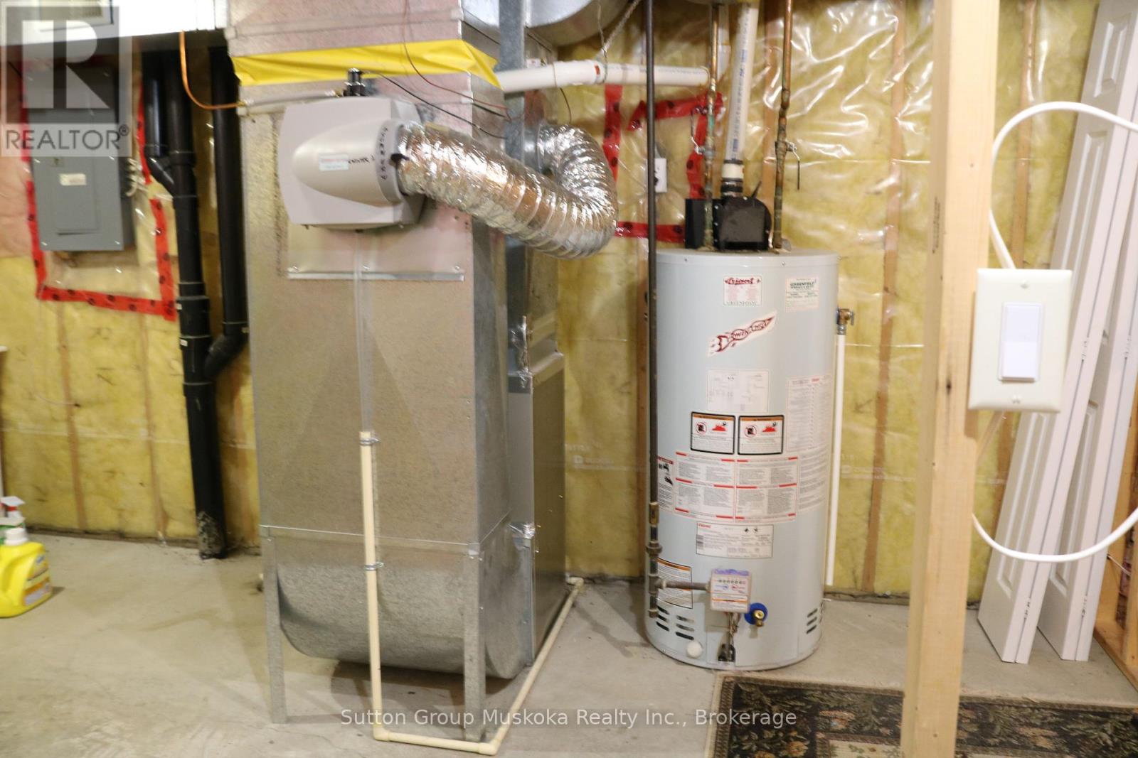 This is your opportunity to purchase a condominium townhome within walking distance of downtown Huntsville. This premium end unit is nestled in a 12-unit complex (3 buildings of 4 units each) this cul-de-sac is tucked off Dairy Lane. This home features 3 generous bedrooms, ensuite for the primary bedroom with a walk-in closet, another 4-piece bathroom plus a 2-piece powder room on the main level. The main floor features hardwood flooring in the open concept living/dining room, oak kitchen cabinets with pass-through, a natural gas fireplace for added ambiance, carpet staircases, and a glass sliding door to a spacious private deck. A large front foyer, welcomes guests, or provides convenient direct access to the garage. The lower level is unfinished with a laundry utility area and a large storage room and a workroom. This lovely unit is air-conditioned, landscaped and offers a carefree & maintenance-free lifestyle. The grass is cut for you and no snow to shovel! Perfect for retirement living or those with a busy lifestyle. (id:56991)